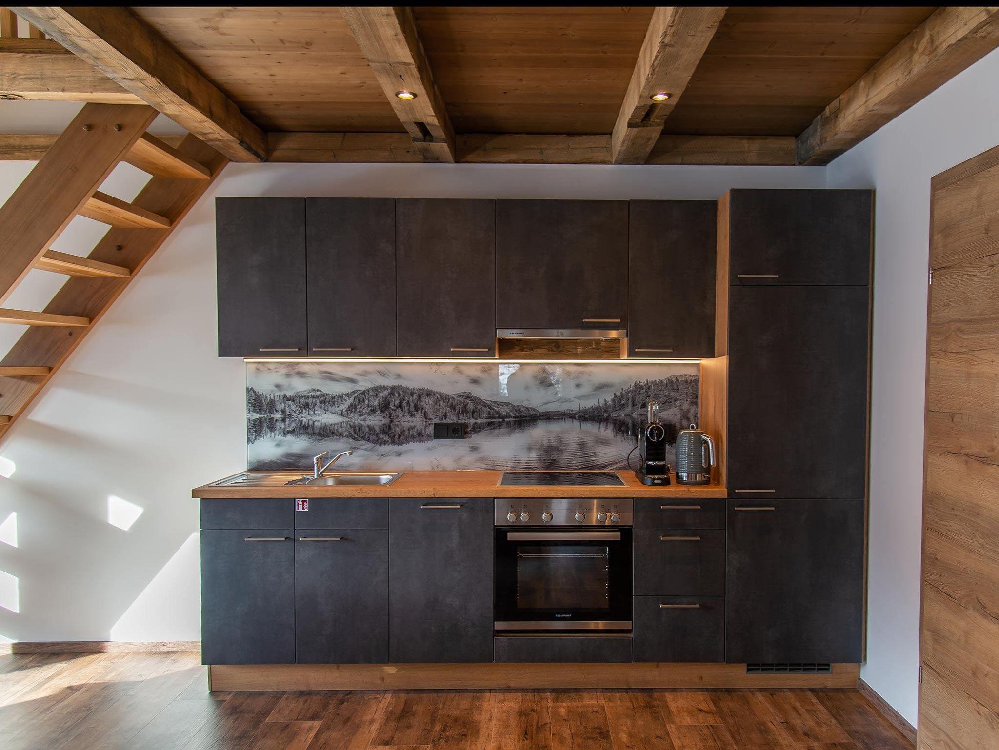 • großer heller Wohnraum mit voll ausgestatteter Küche und Essbereich