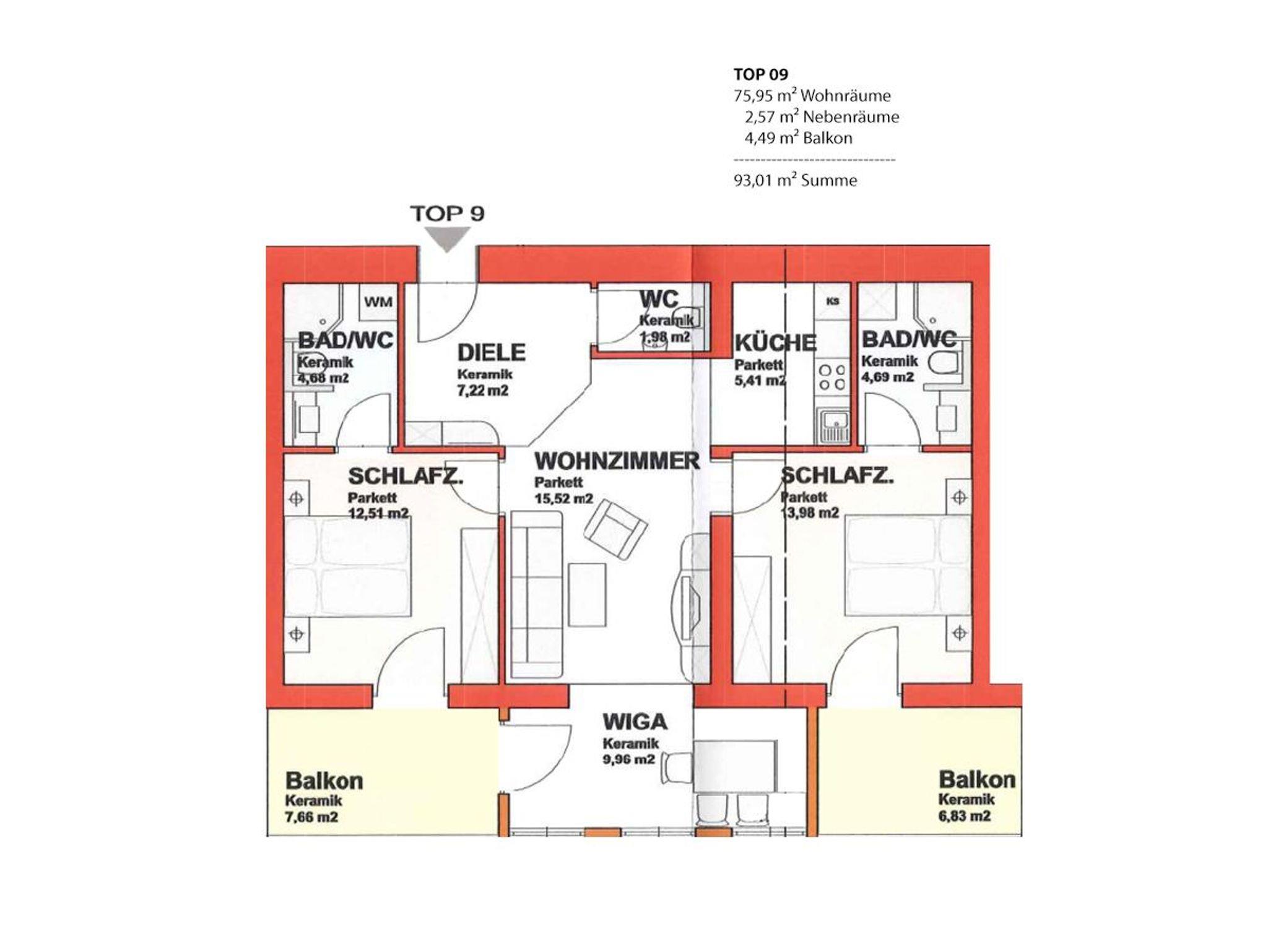 • 2 Badezimmer mit je Dusche/WC, zusätzlich ein extra WC, Waschmaschine