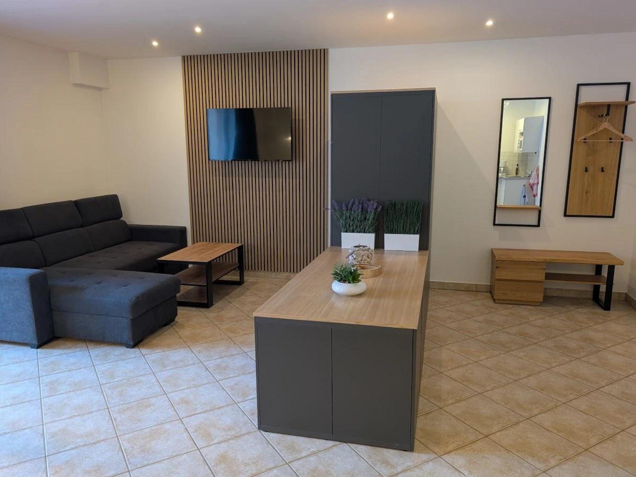 • geräumiges Wohnzimmer mit Sofa, Flat-TV, Radio, Schreibtisch, Wlan, Safe