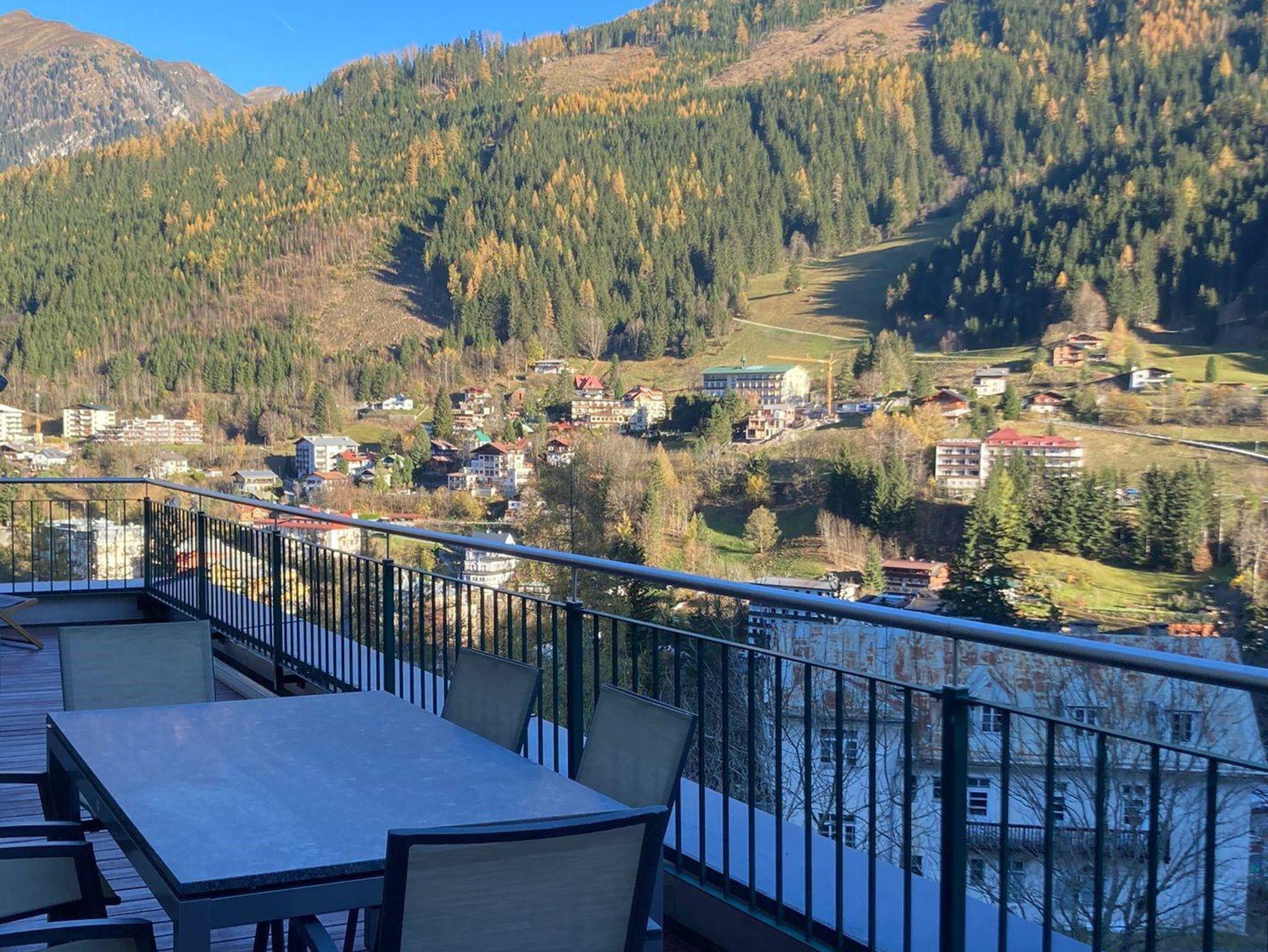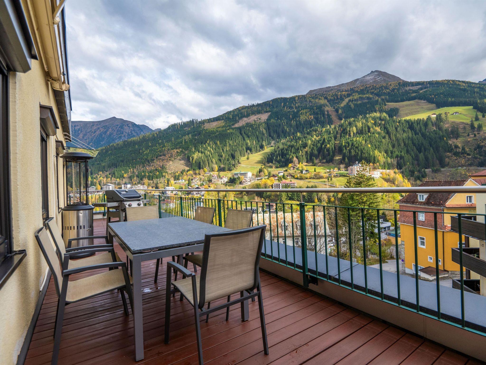 Weiters hat das Apartment eine große Dachterrasse mit Terrassenmöbel und Grill mit einem unvergleichlichen Blick über die Bergwelt Graukogel und Bad Gastein.
