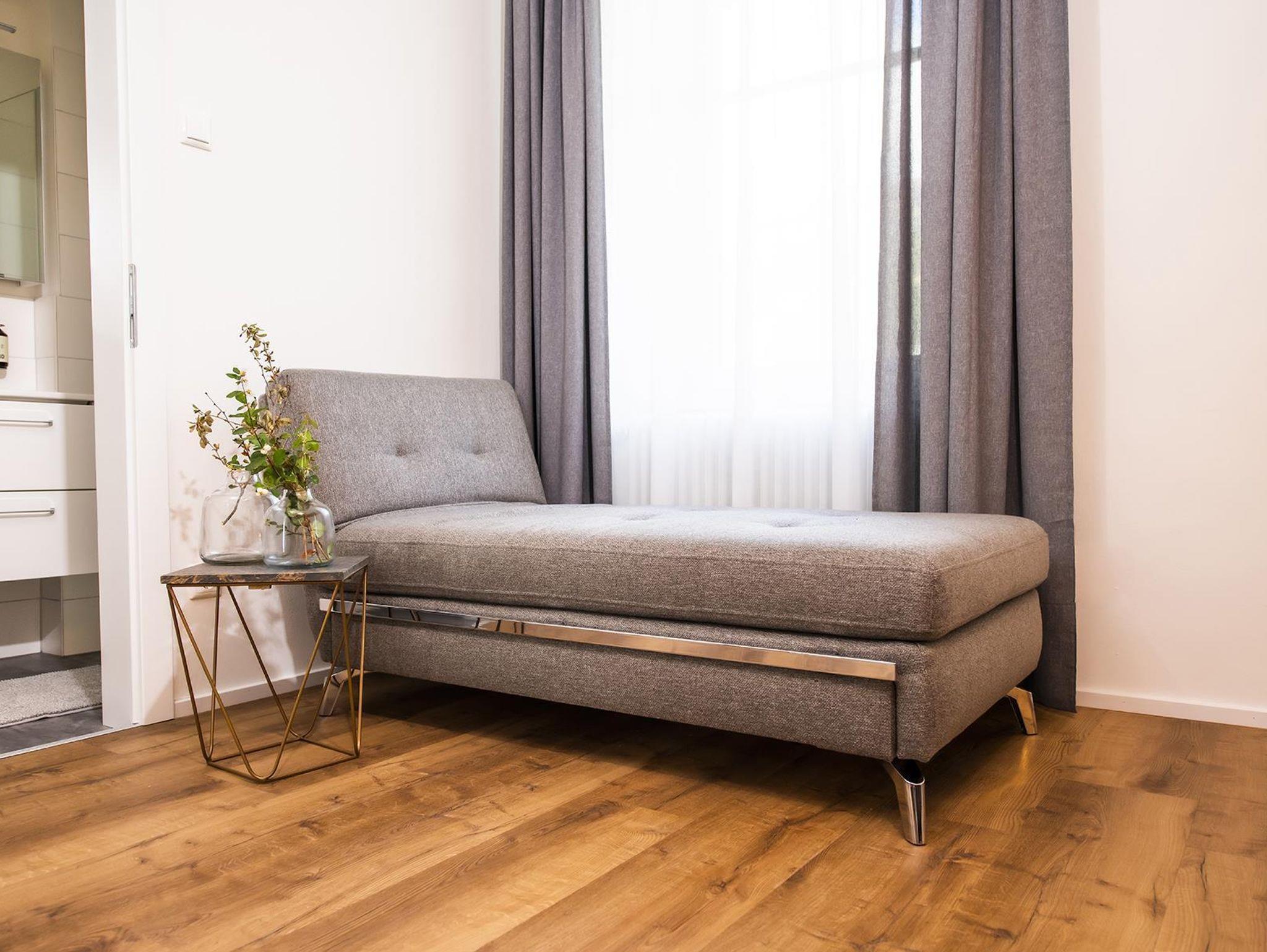 • Sehr großer Wohn-/Schlafraum mit Doppelbett und Récamiere