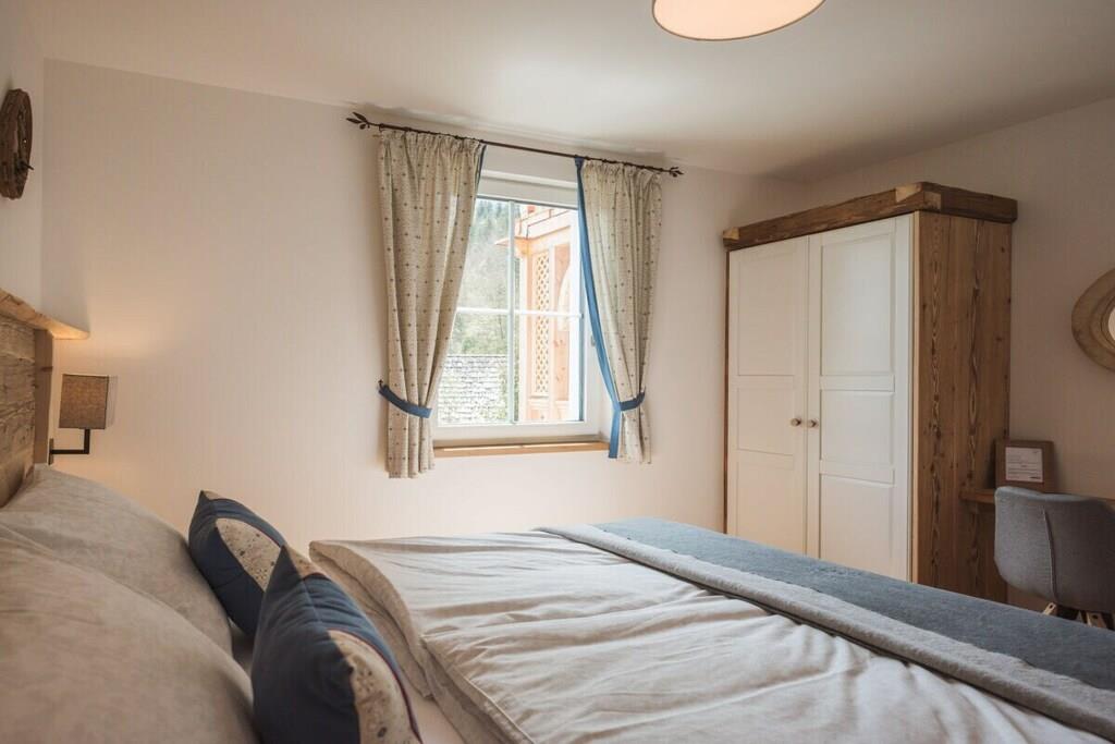 Enjoy your vacation in our Bergfex - Villa Salzweg holiday apartment, which has been completely refurbished with great attention to detail. With its high-quality furnishings and its own large balcony, Villa Salzweg is the ideal starting point for a relaxing vacation in the inner Salzkammergut. The spacious, light-flooded living/dining area with a comfortable seating area with sofa bed and wing chair, as well as modern entertainment equipment (55" Smart TV, Bluetooth music system) invites you to linger. In the fully equipped kitchen you will find everything you need for your stay. The dining area offers plenty of space for up to 6 people. The 2 bedrooms are each equipped with a large double bed, the best bed linen, dressing table and wardrobe, leaving nothing to be desired. In addition to the usual amenities, the modern daylight bathroom has a walk-in shower at ground level with a rain shower head. The washing machine is also located here. You can also enjoy the fantastic mountain view from your own spacious balcony (south-east). Here you can eat outside, as well as chilled furniture and an electric grill. For your perfect holiday in the Salzkammergut with family, friends or even larger groups, everything your heart desires is available in the various themed apartments of Villa Salzweg. So you can go on a relaxed journey of discovery in the Salzkammergut and really enjoy your holiday.