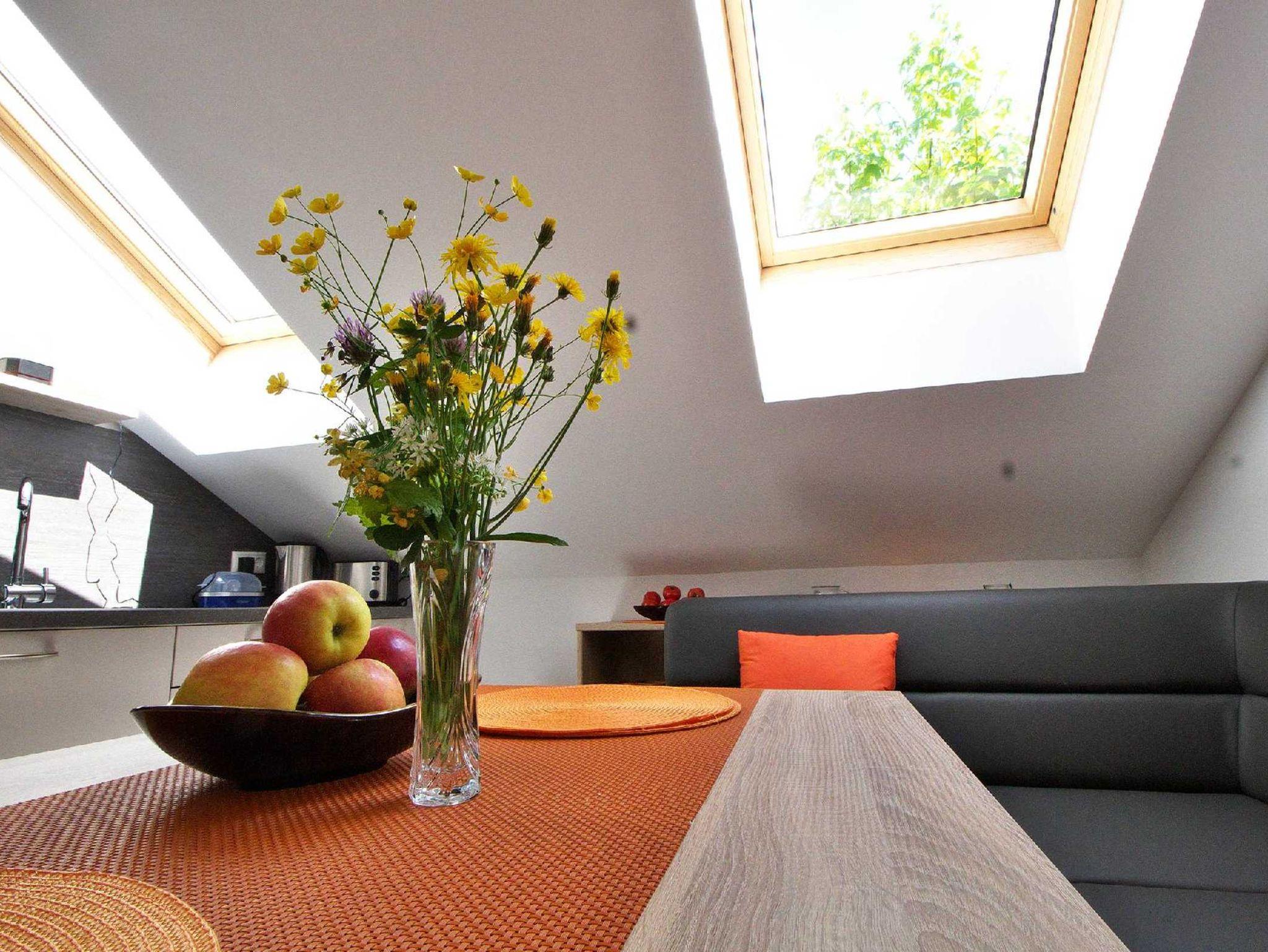 Das Apartment ist 63m² groß und befindet sich im 1. Stock über dem Haupthaus und bietet Platz für 1-4 Personen. und ist mit einer Außenstiege durch einen eigenen Eingang zu erreichen. Die Wohnküche ist komplett eingerichtet und mit einem Ceranofen, Kühlschrank und Gefrierfach ausgestattet. Eine gemütliche Sitzecke und ein Fernseher laden zum Wohlfühlen und entspannen ein. Alle Zimmer und Nebenräume sind mit einer Fußbodenheizung ausgestattet. Bettwäsche, Bade- , Hand- und Geschirrtücher sind im Preis inkludiert.