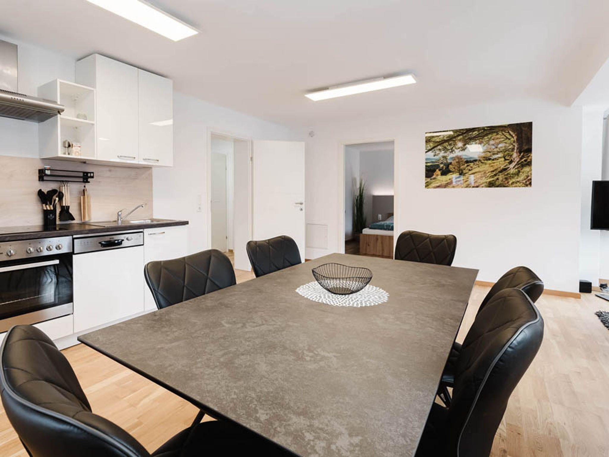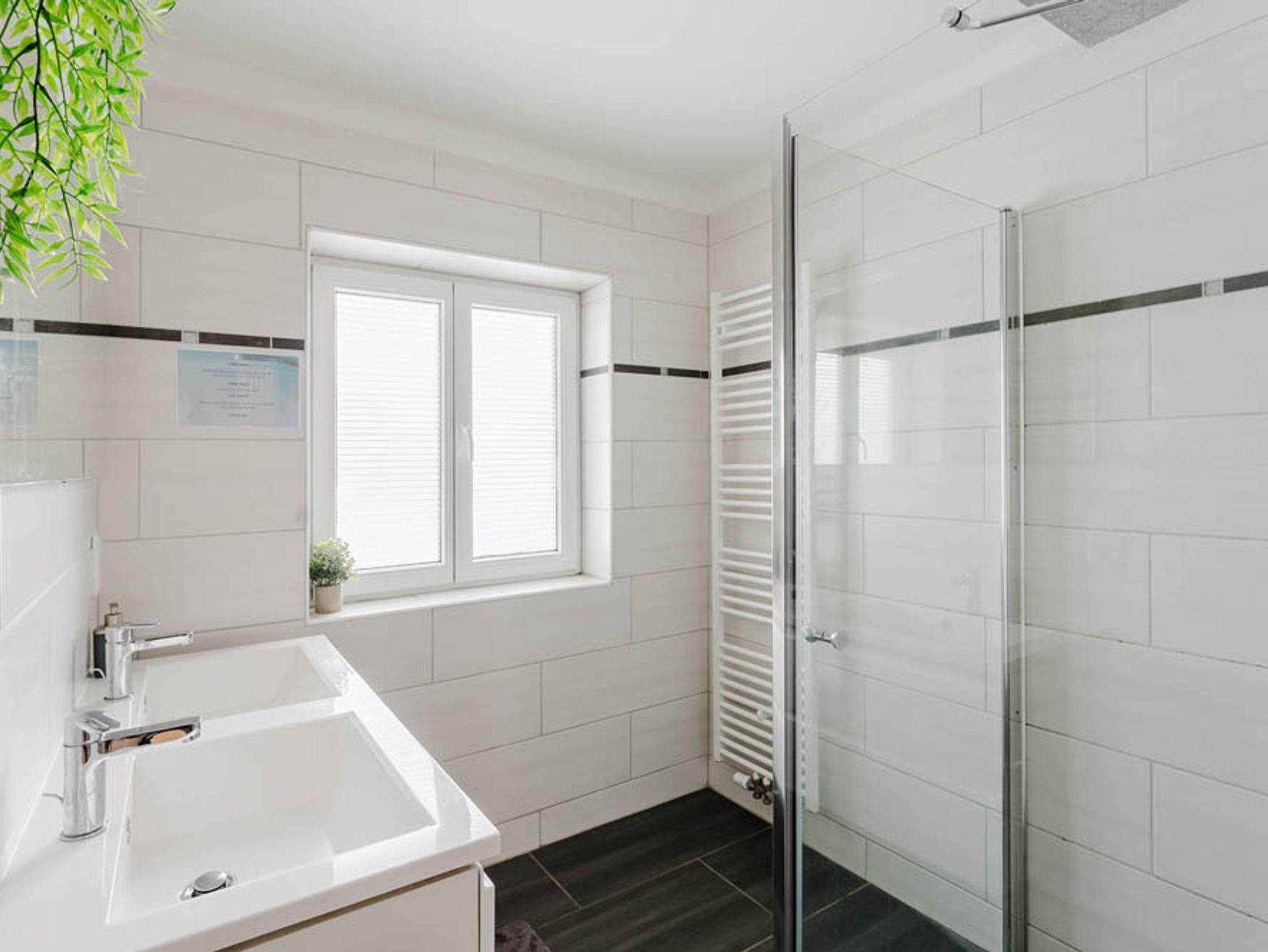 Das Apartment im Obergeschoss verfu¨gt u¨ber ein gemu¨tliches Wohnzimmer mit vollausgestatteter, moderner Einbauku¨che und großzu¨giger Essgruppe, ein gefa¨lliges Badezimmer mit Walk-In Dusche und Doppelwaschbecken, extra WC und 2 gera¨umige Schlafzimmer. Die Bettenverteilung in den Schlafra¨umen ist individuell gestaltbar und wird fu¨r Ihre Bedu¨rfnisse hergerichtet. Somit steht einem erholsamen Familienurlaub mit Kindern oder Freunden nichts mehr im Wege!