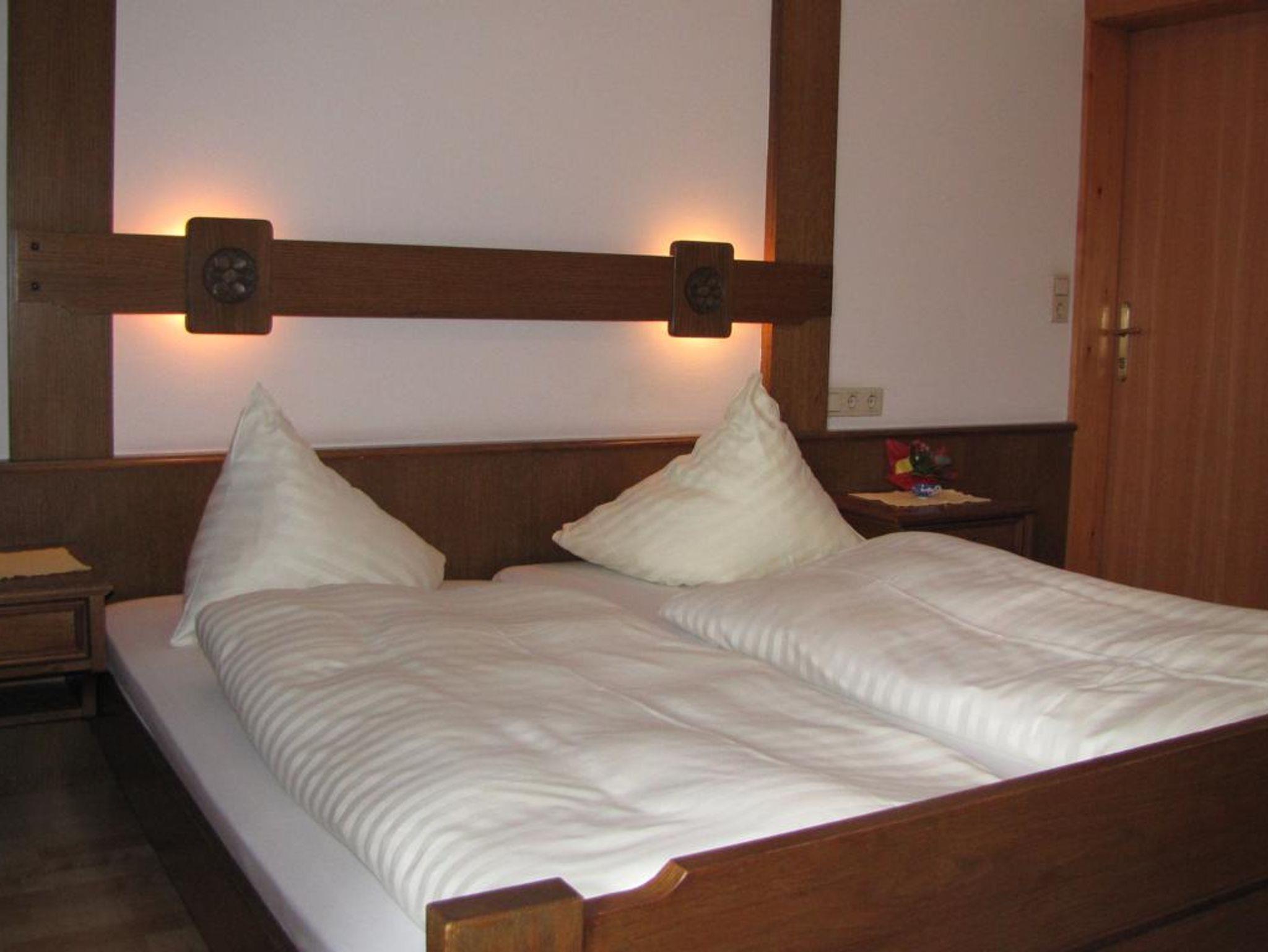Die Zweibettzimmer haben möblierten Balkon oder Terrasse, von hier haben Sie überall Aussicht auf unseren Garten und die umliegende Bergwelt. Die Badezimmer sind mit Dusche/Waschtisch und WC ausgestattet. Teilweise ist das WC räumlich vom Bad getrennt untergebracht. SAT-TV und WLAN ist ebenfalls überall vorhanden.