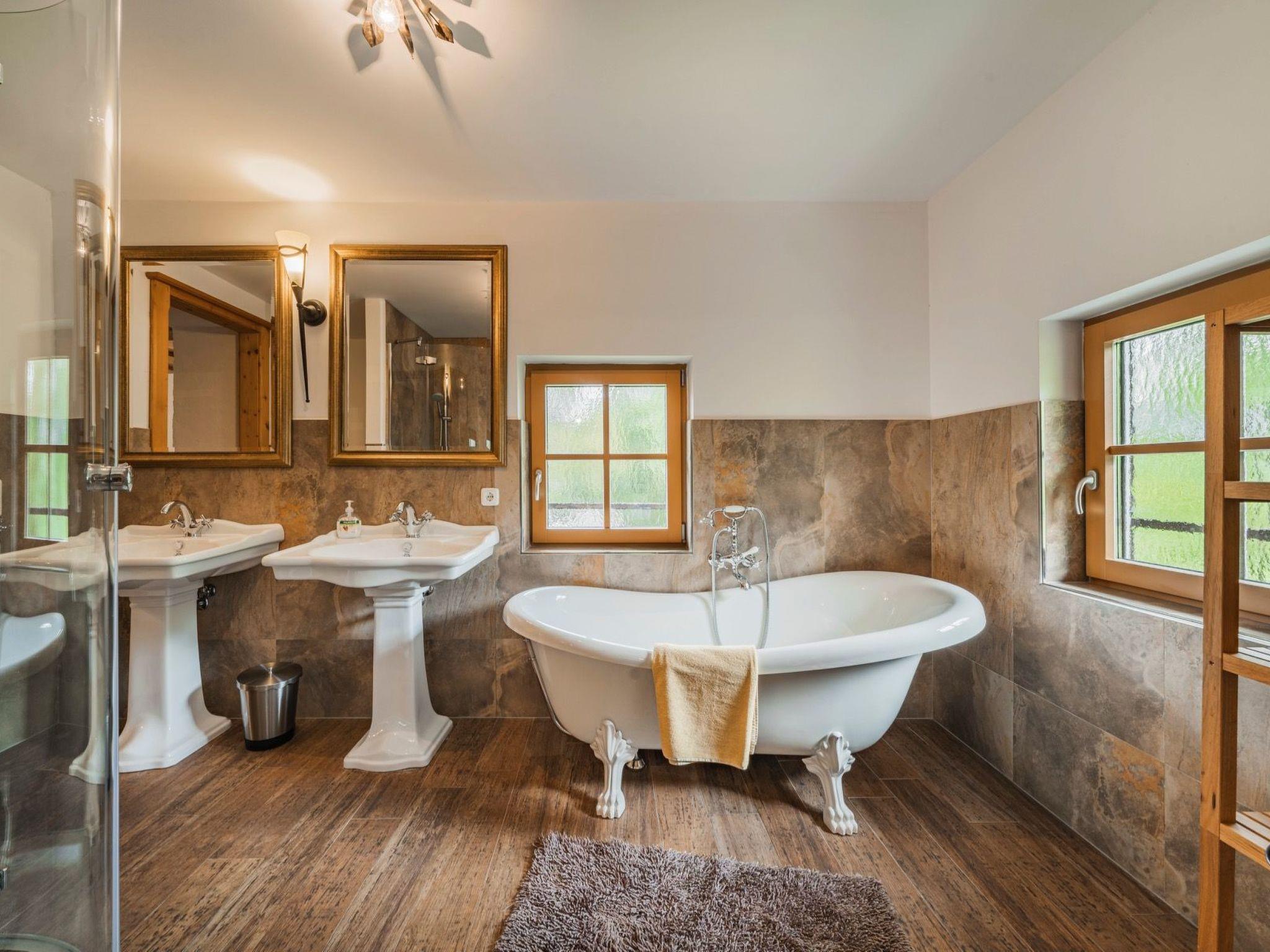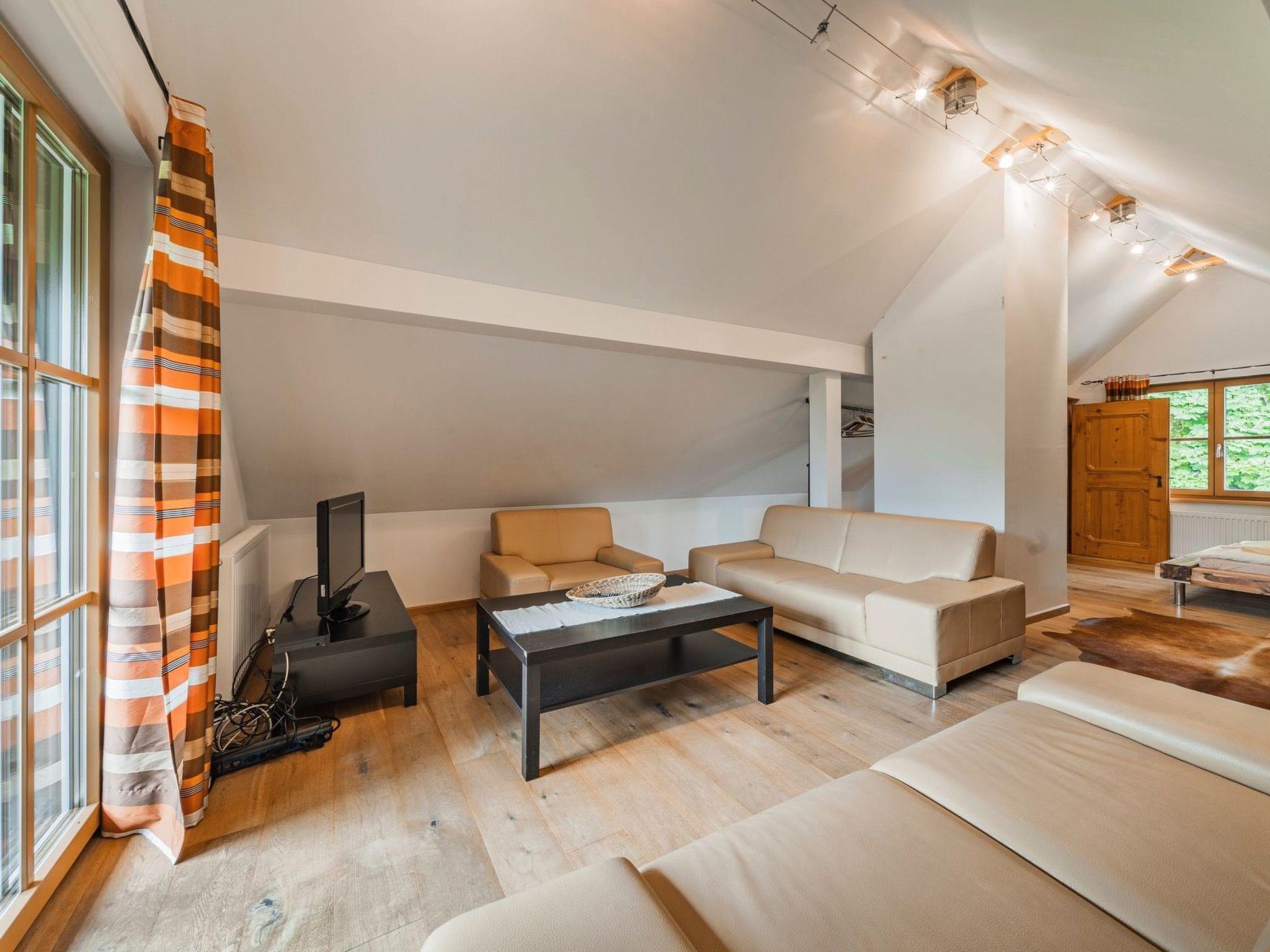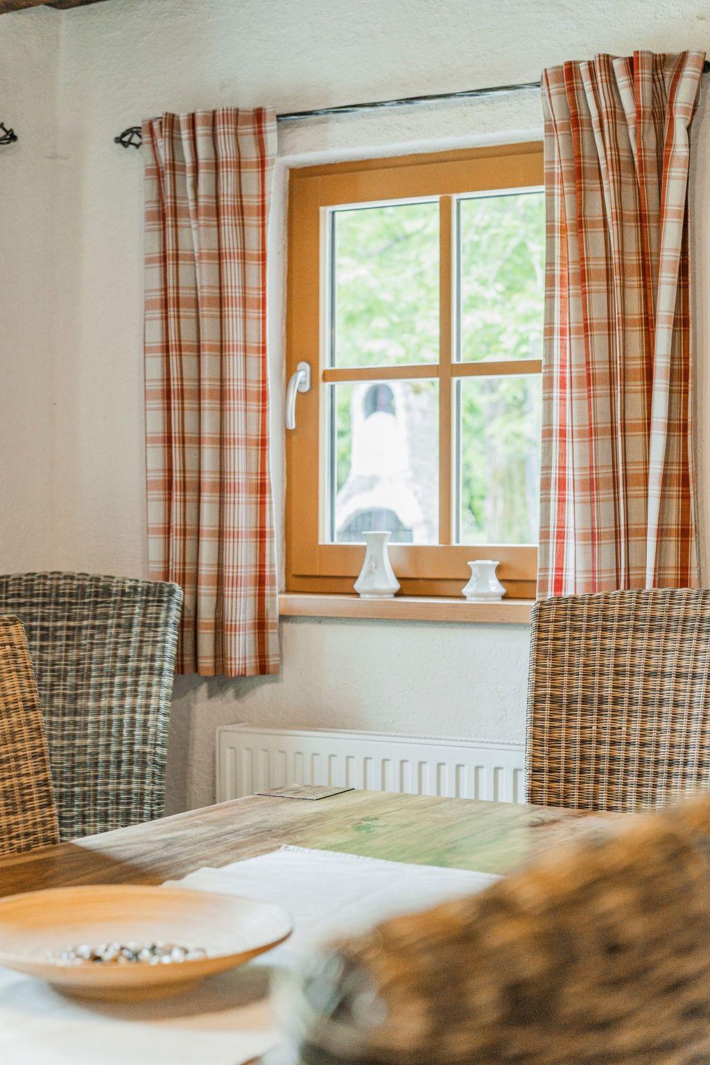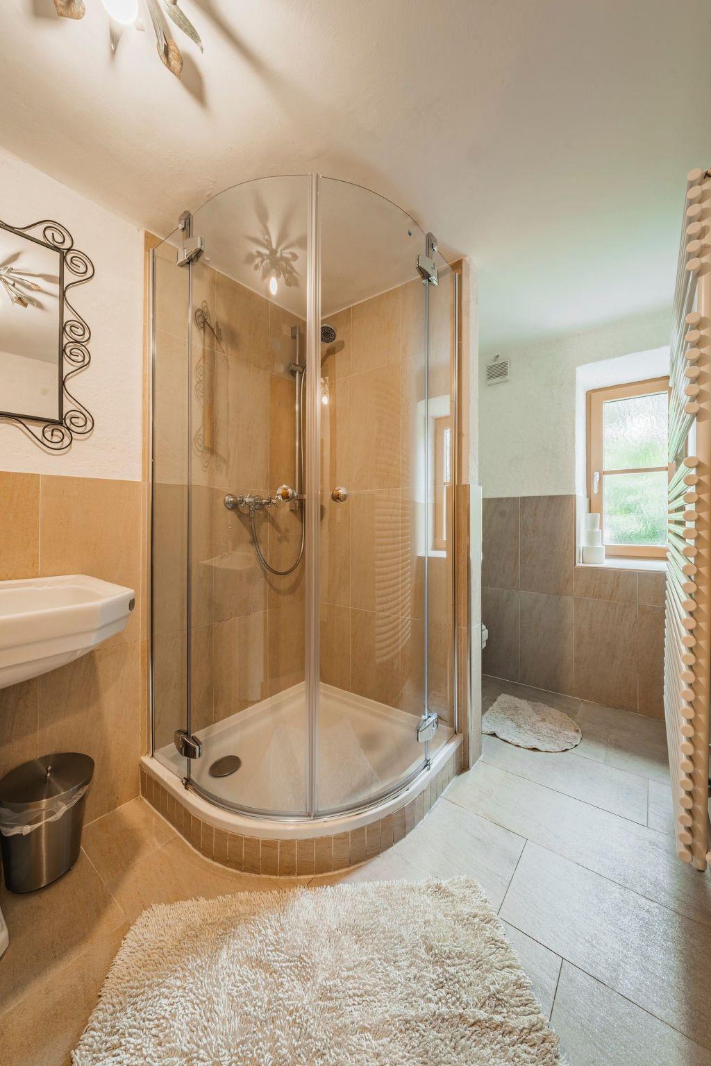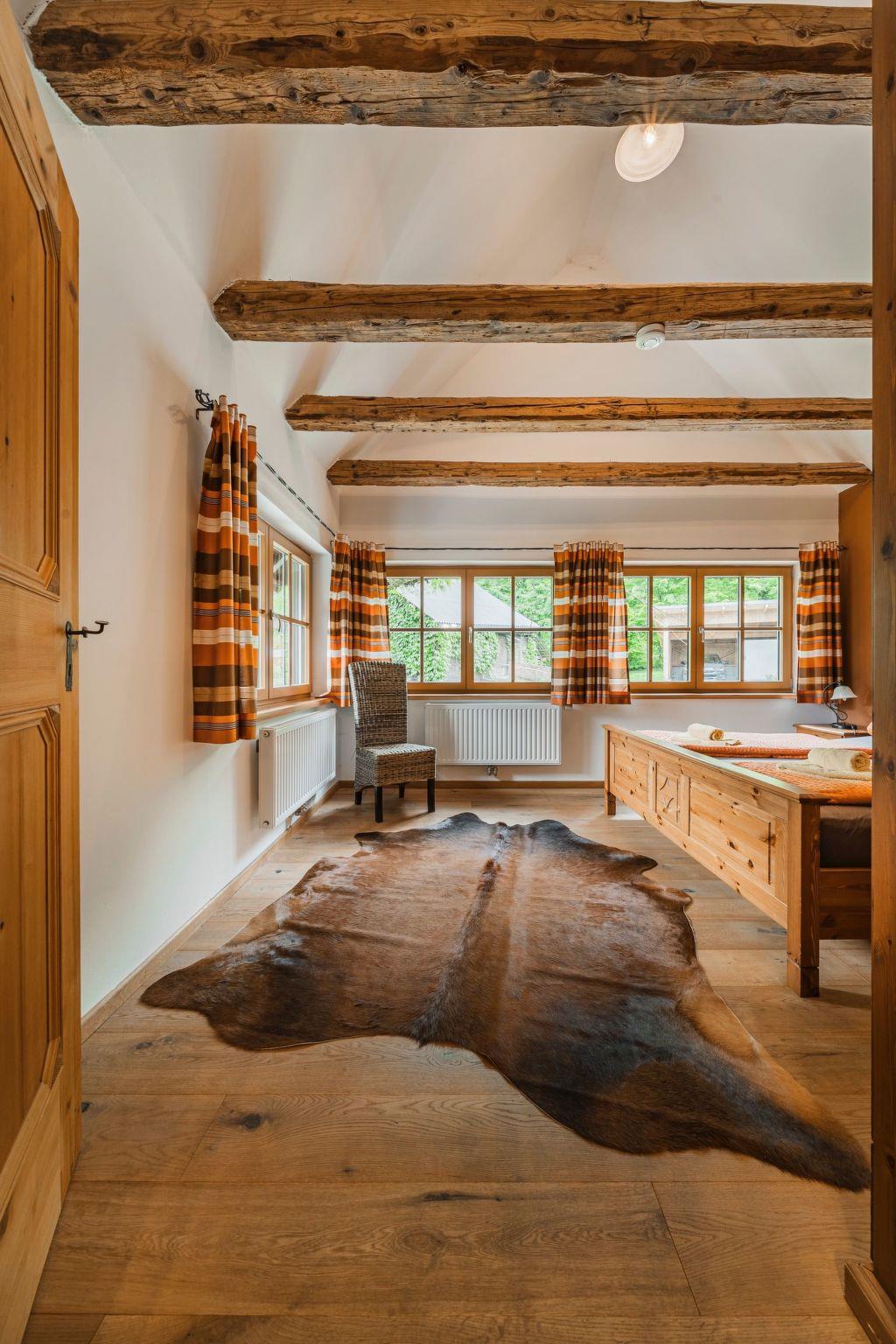 Our holiday home "Gut Eisenlehen" is a property steeped in history, the first documented mention of which dates back to 1551. Our newly and stylishly renovated holiday home has a kitchen with adjoining dining room, a sauna room and a bathroom with WC as well as a cloakroom and hallway on the ground floor. Upstairs there are three spacious bedrooms, two of which have access to the bathroom and WC. A large studio with sleeping and living area has been created on the top floor. This means that our Eisenlehen estate can comfortably accommodate eight people. The garden belonging to the property is around 3500 m2 in size. It is enclosed all round by a fence. This garden has mature trees, a biotope, ponds and several flower beds. It gives the property an extremely spacious ambience and you simply feel at home here. The large, fully fenced garden also makes our house ideal for dog owners who want to take their faithful companion with them on holiday.
