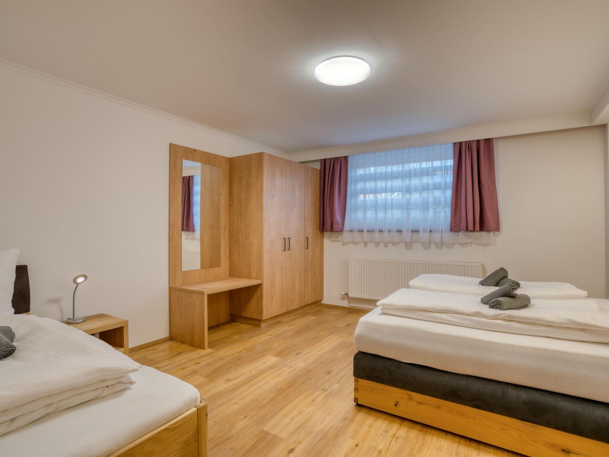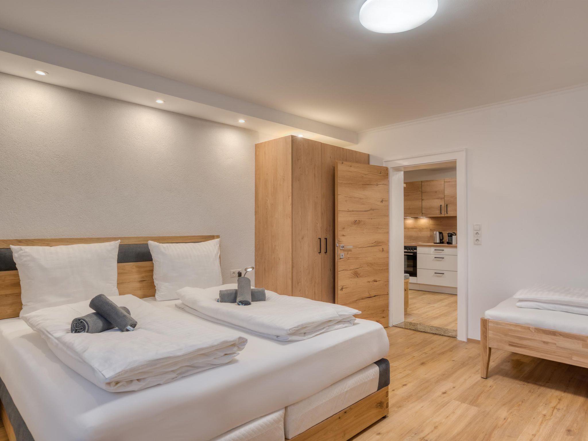 Unser Apartment 6 ist Dein zu Hause auf Zeit im malerischen Bad Häring. Durch eine Souterrain Lage befindet sich das Apartment etwa 0,5m unter Bodenniveau. Trotzdem bietet die Wohnung genügend Tageslicht. Auf 40 Quadratmetern erwarten dich 2 Schlafzimmer (jeweils Doppelbett+1x Einzelbett). Somit ist dieses Apartment für bis zu 5 Personen geeignet. Im großzügigen Wohn- und Essbereich findet sich genügend Platz für gesellige Abende mit der Familie oder mit Freunden.