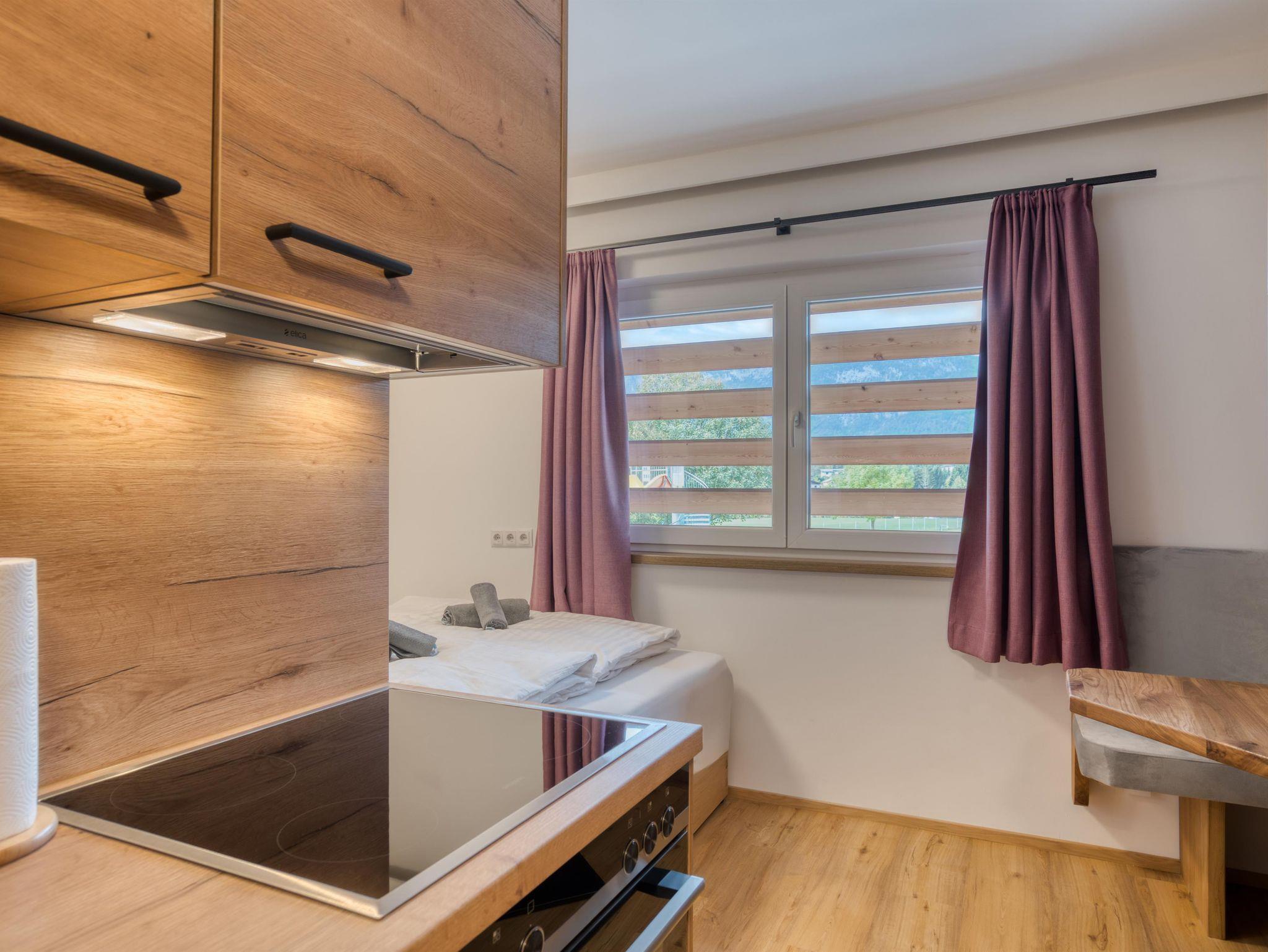 Unser Mini-Apartment 9 ist Dein zu Hause auf Zeit im malerischen Bad Häring. Durch eine Souterrain Lage befindet sich das Apartment etwa 0,5m unter Bodenniveau. Trotzdem bietet die Wohnung genügend Tageslicht. Auf 20 Quadratmetern erwartet dich ein Schlafzimmer (Doppelbett). An der Küchzeile lassen sich wohlschmeckende Mahlzeiten zubereiten.