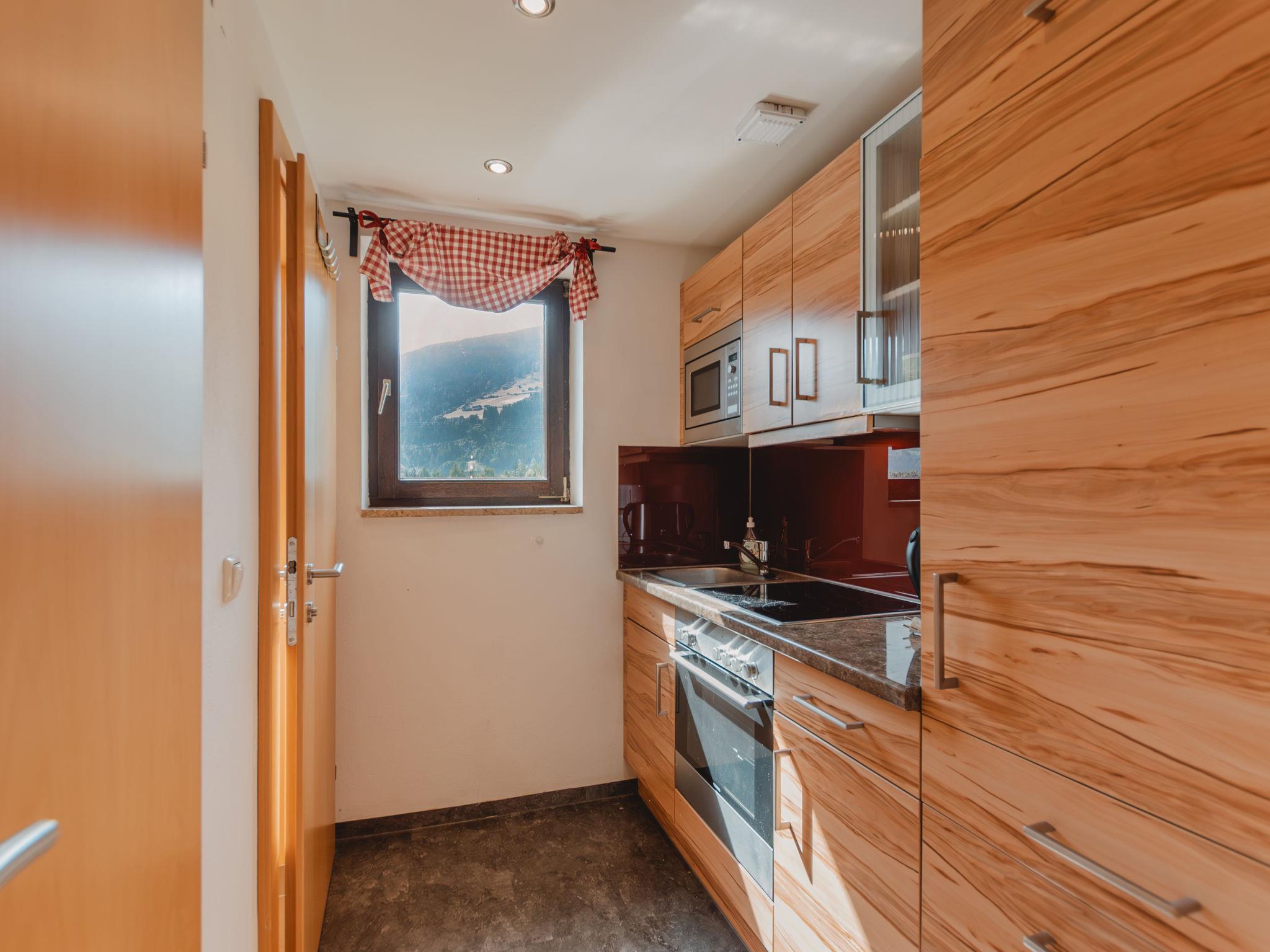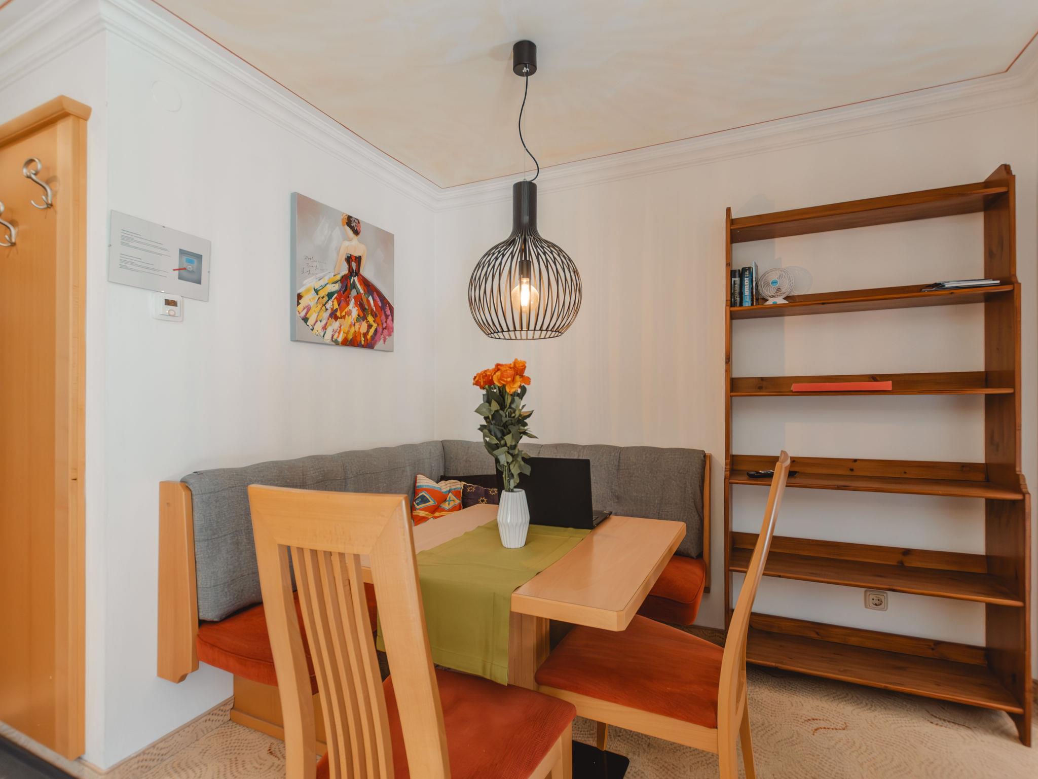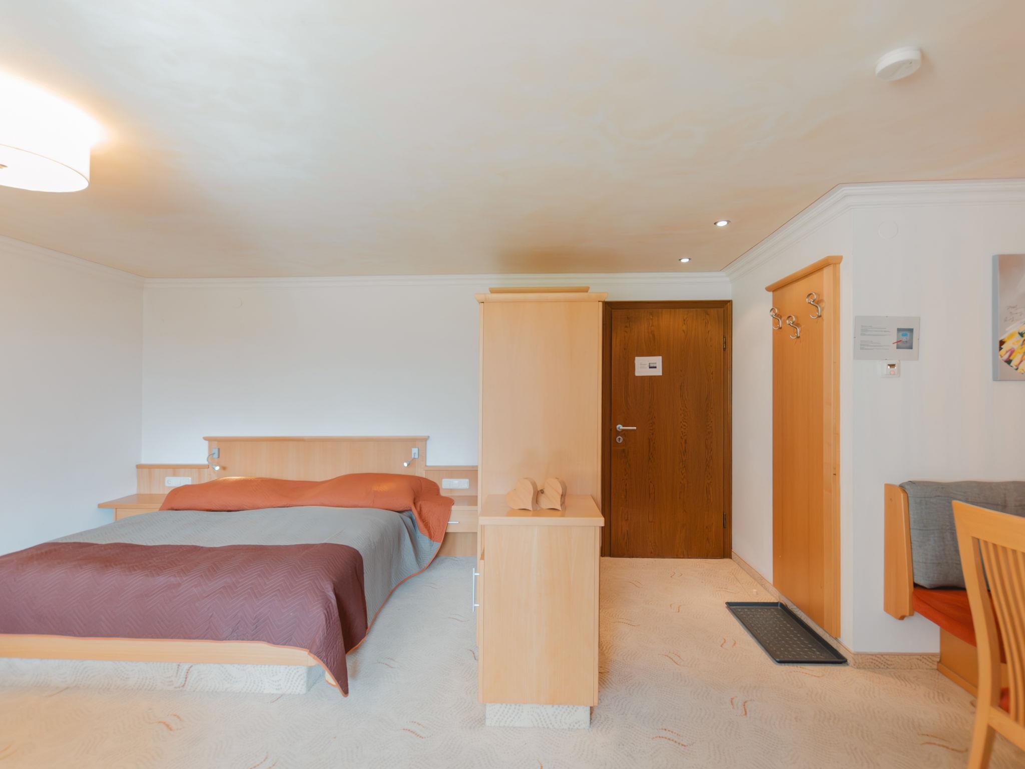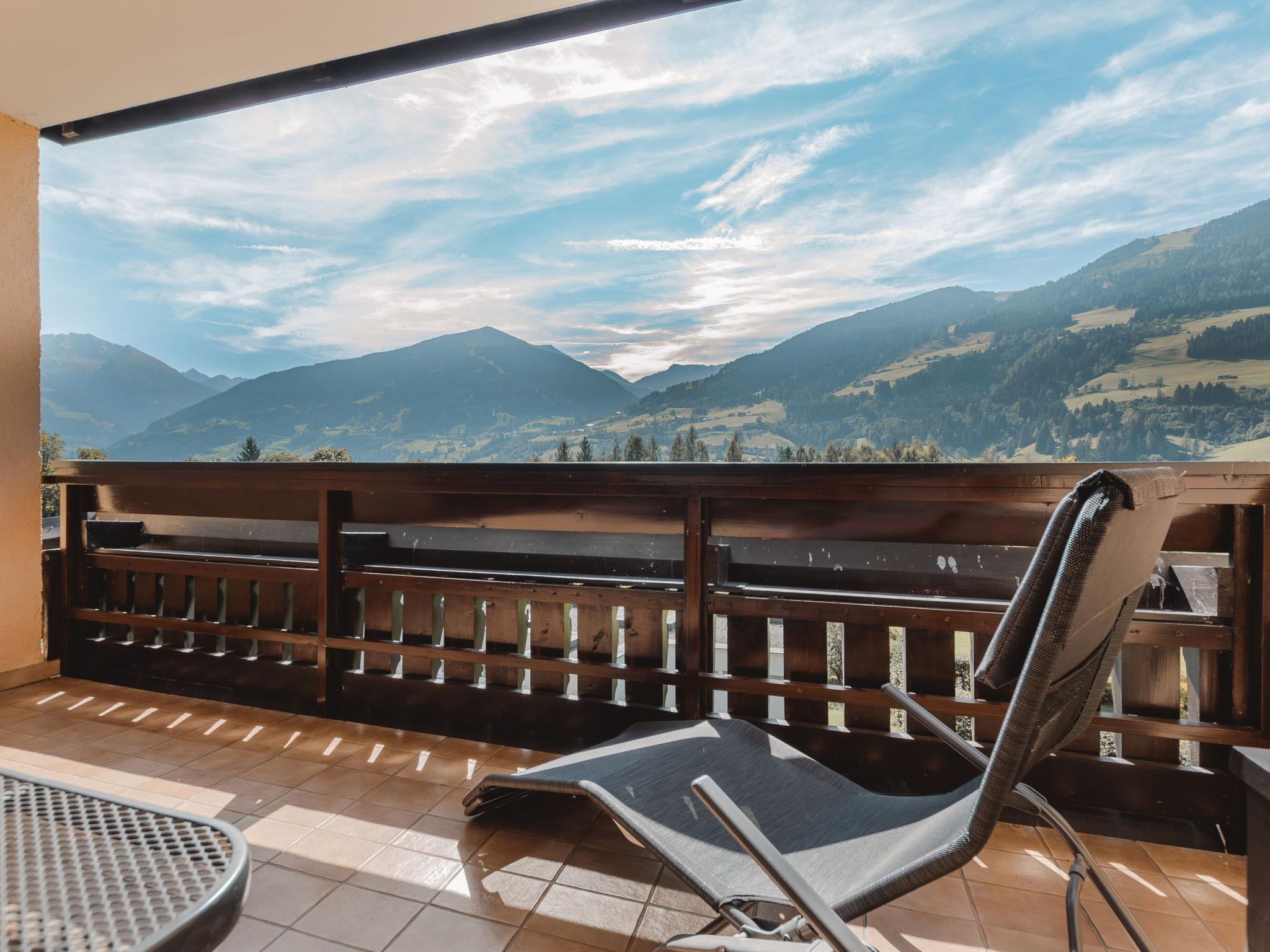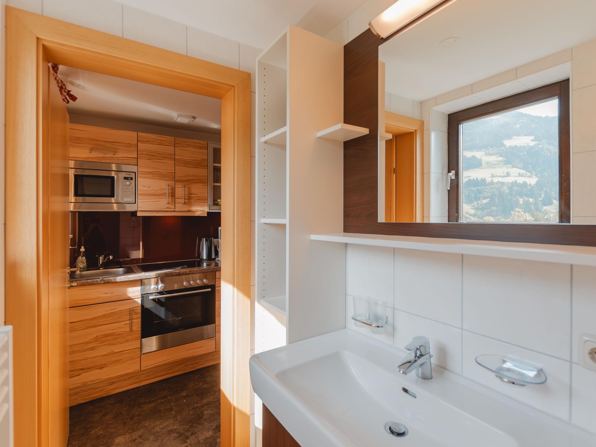 "Rose", 1-room apartment 35 m2 on 3rd floor. Bright, very comfortable and modern furnishings: living/sleeping room with 1 sofabed, 1 double bed, dining nook and cable TV (flat screen). Exit to the balcony. Open kitchen (oven, 4 ceramic glass hob hotplates, toaster, kettle, microwave, electric coffee machine, Capsules for coffee machine (Tschibo)). Shower, sep. WC. Electric heating. Carpet. Balcony 11 m2. Balcony furniture, deck chairs (2). Marvellous panoramic view of the mountains and the garden. Facilities: hair dryer. Internet (WiFi, free). Garage space n 300. Please note: suitable for families. Non-smokers only. Smoke alarm, fire extinguisher. 2 children up to 15 years possible on request. 50402-000675-2020