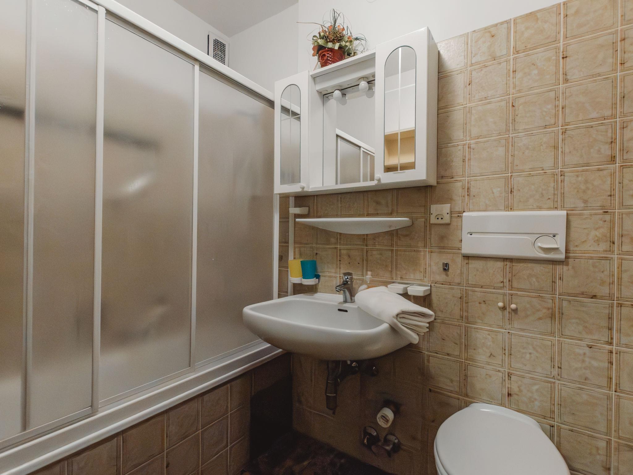 "Sun & Mountain View", 2-room apartment 75 m2, on the upper ground floor. Cosy furnishings: entrance hall. Living/sleeping room with 3 sofabeds (80 cm, length 200 cm), dining nook, digital TV and hi-fi system. Exit to the terrace. 1 double bedroom with digital TV. Exit to the terrace. Kitchen (4 hot plates, oven, toaster, kettle, microwave, electric coffee machine). Bath/WC. Terrace 12 m2. Terrace furniture, deck chairs (2), box-room. View of the mountains. Facilities: iron, hair dryer. Parking space n TOP A 11 at the house. Please note: non-smokers only. Smoke alarm. No pets allowed! 50402-000679-2020