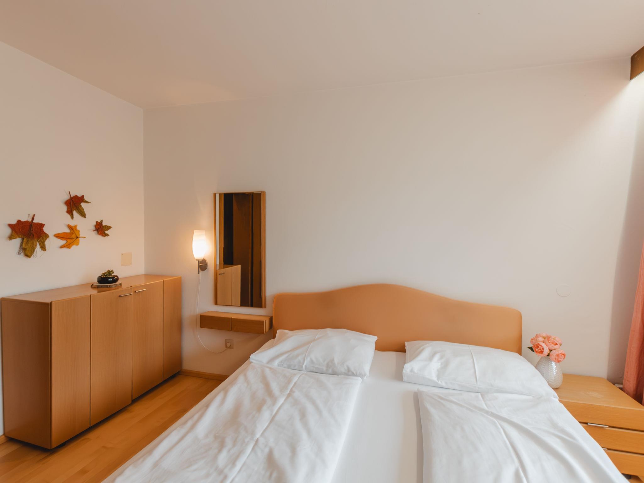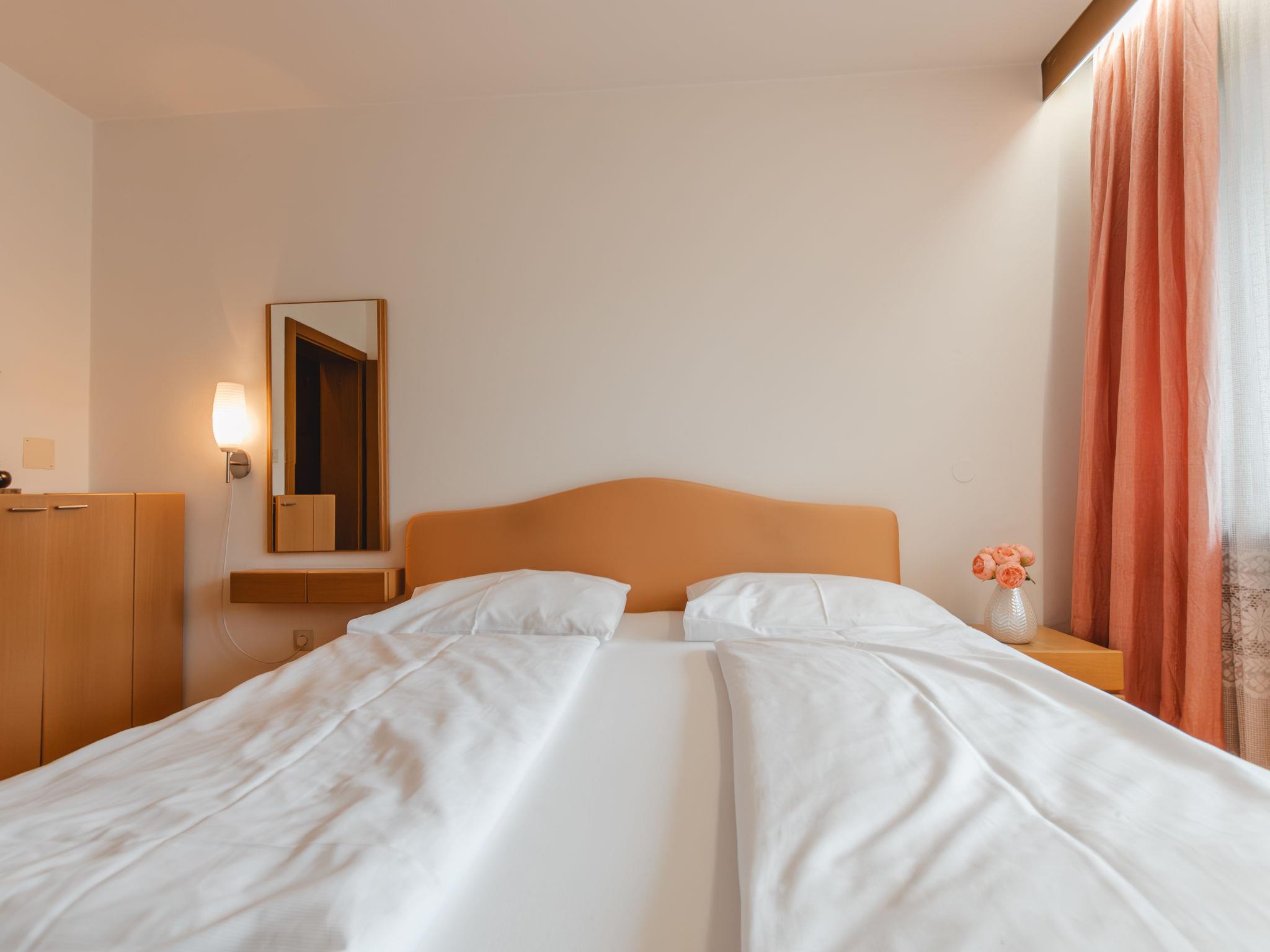 "Bella Vista", 2-room apartment 50 m2 on 2nd floor, south facing position. Partly renovated in 2019, simple and cosy furnishings: 1 double bedroom. Exit to the balcony. Living/sleeping room with 1 double sofabed, dining table and satellite TV. Exit to the balcony. Kitchen in the entrance (4 hot plates, oven, toaster, kettle, freezer, electric coffee machine). Bath/WC. Balcony 9 m2, south facing position. Beautiful view of the mountains and the garden. 1 pet/ dog allowed. 50402-000676-2020