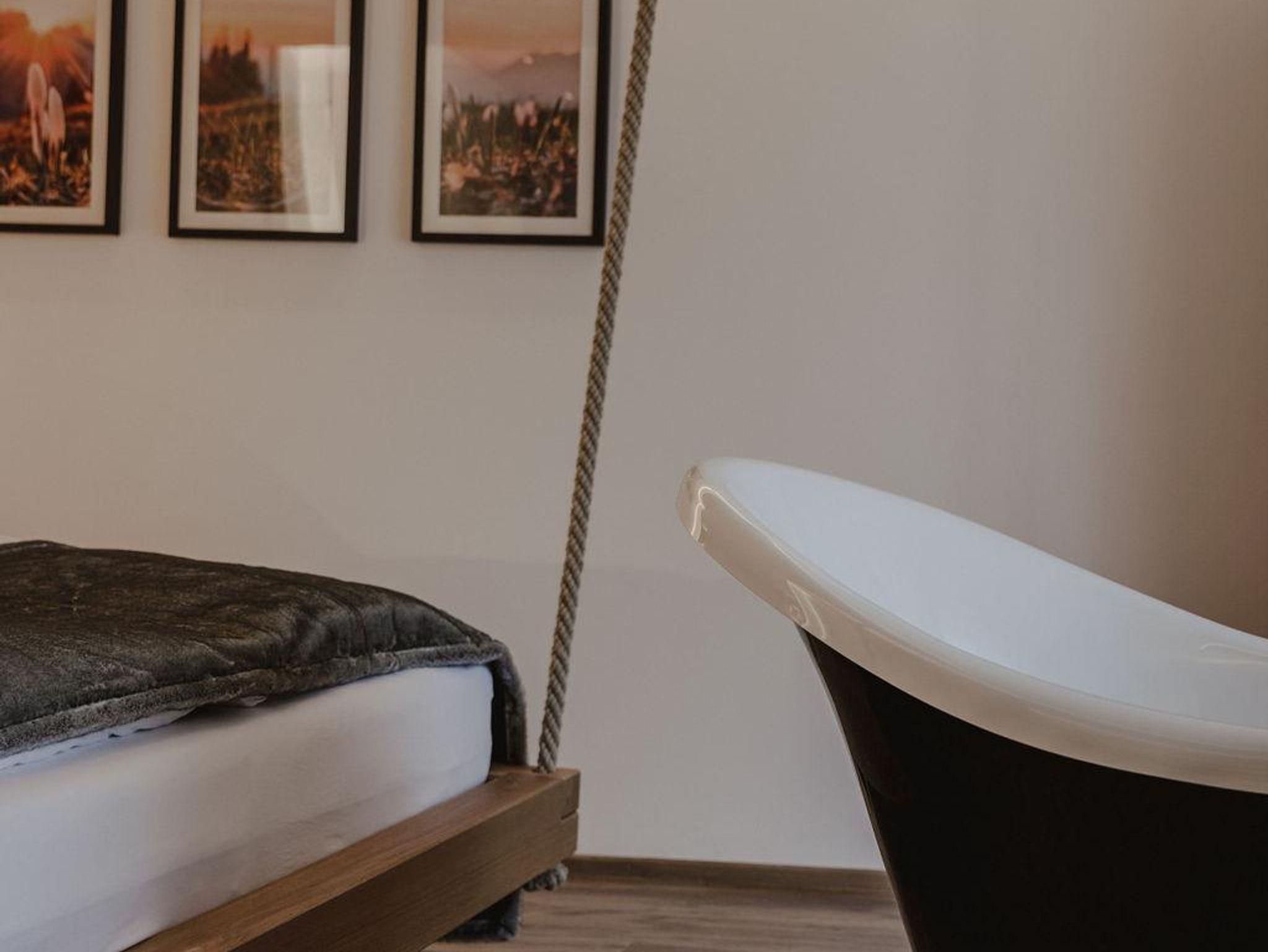 2 – 3 Personen, 55 m² In diesem Apartment spürst du nicht nur die Tradition des alten Bauernhauses, das nun in neuem Glanz erstrahlt. Hier erwartet dich ein unvergesslicher Urlaub mit eigener Sauna und Panoramabadewanne, in denen du neue Erinnerungen schaffen kannst.
