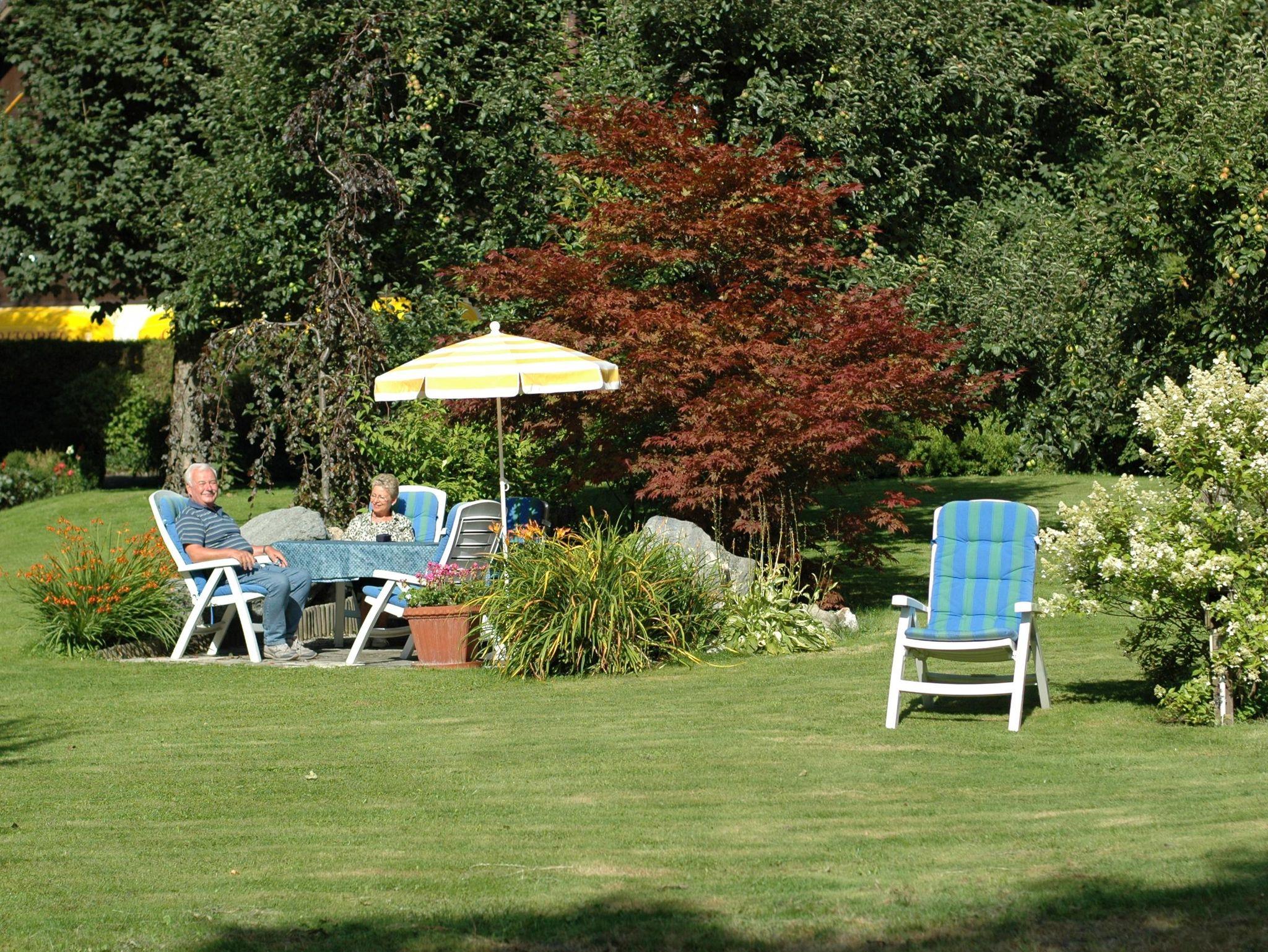 Genießen Sie erholsame Stunden im parkähnlichen Garten oder auf Ihrer sonnigen Terrasse.