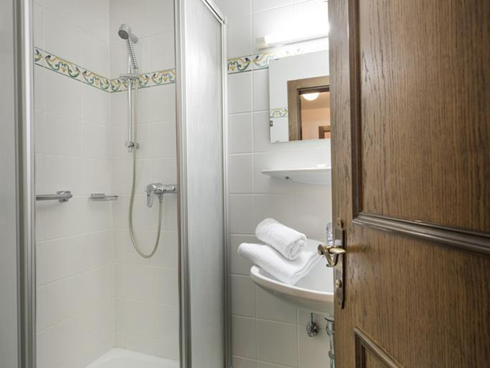 Appartement Typ D - Standard - Belegung 2 Personen - Wohn-Schlafraum mit zwei Einzelbetten (davon ein Schrankbett zum Hochklappen) - OHNE Balkon - Badezimmer mit Dusche und WC - voll ausgestattete Küchennische im Vorraum - Fernseher, Telefon, W-Lan