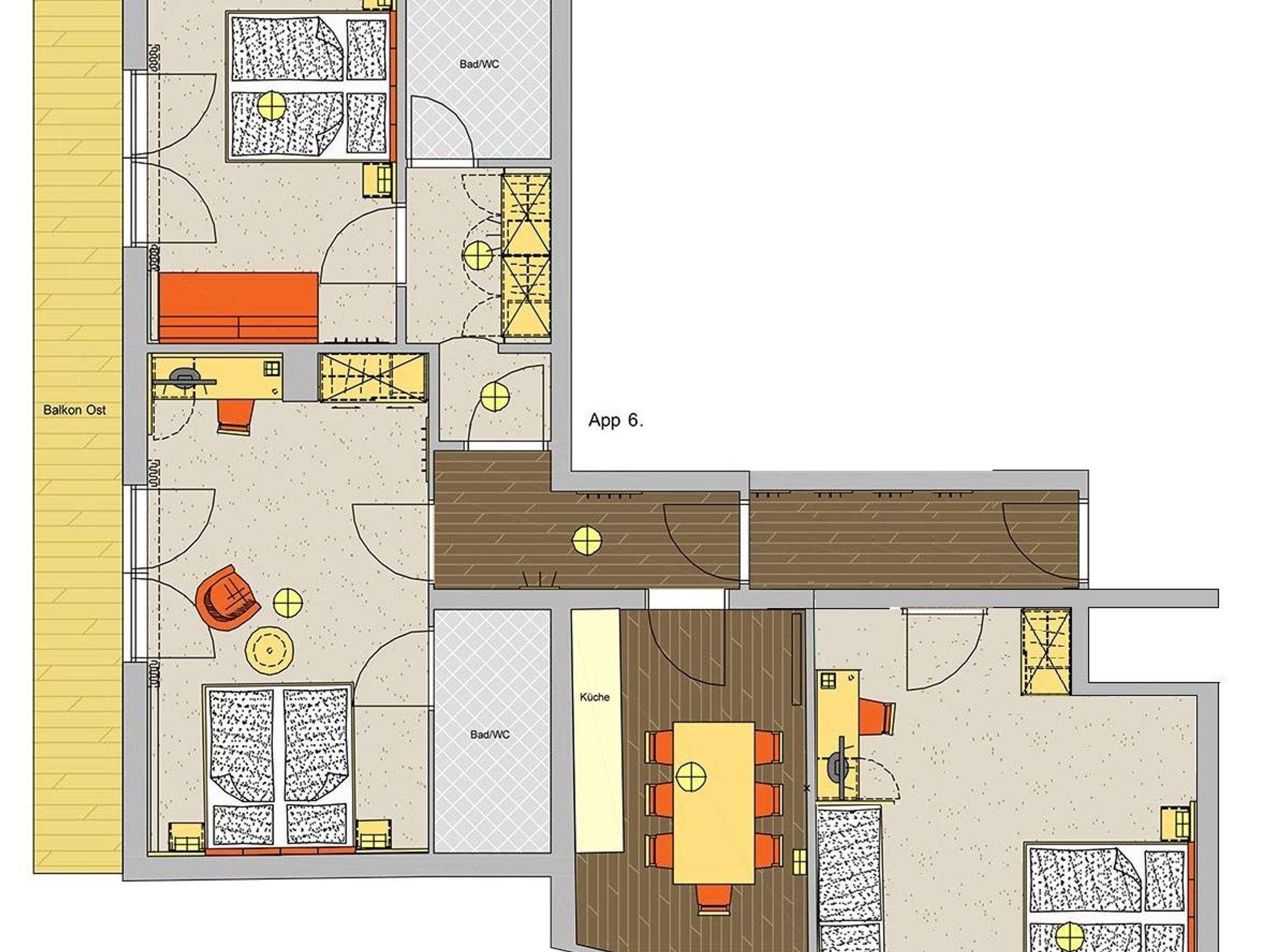 wählen Sie aus insgesamt 9 Appartements, von 50 m2 bis 120 m2, von 1 bis 11 Personen. Badezimmer: 1-MAL(App.1/3/4/8/7+EIN WC) 2-MAL(App.2/6/9) 3-MAL(App.5)
