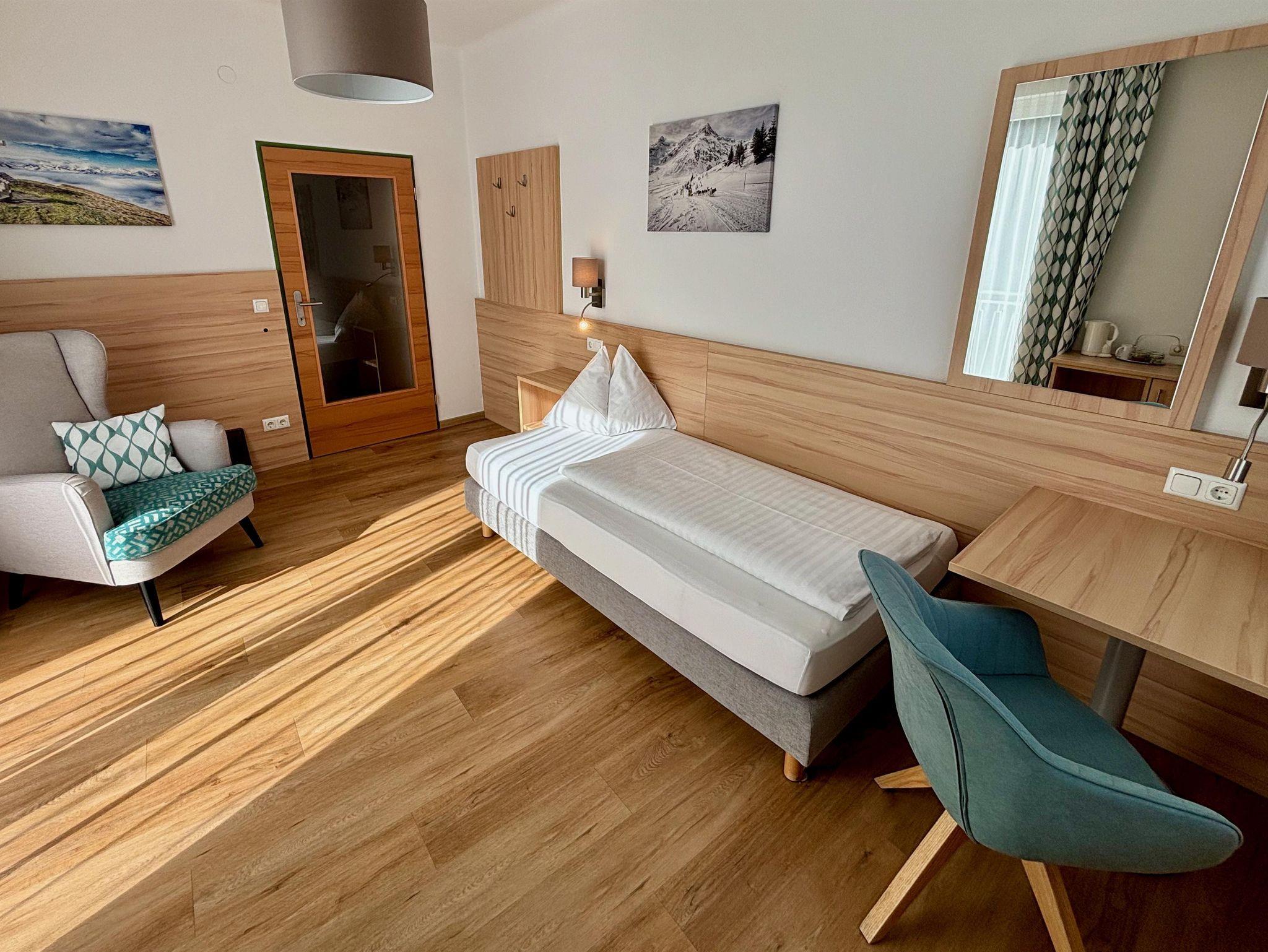 Unser Komfort Einzelzimmer bietet eine perfekte Mischung aus Gemütlichkeit und Funktionalität. Ausgestattet mit einem bequemen Einzelbett, einem eigenen Badezimmer, ist dieses Zimmer ideal für Alleinreisende, die einen entspannten Aufenthalt mit mehr Platz suchen. Genießen Sie die herrliche Aussicht auf die Berge oder nutzen Sie den praktischen Arbeitsbereich, um produktiv zu bleiben. Buchen Sie jetzt Ihr Komfort Einzelzimmer und genießen Sie einen unvergesslichen Aufenthalt in der Friedrichsburg.