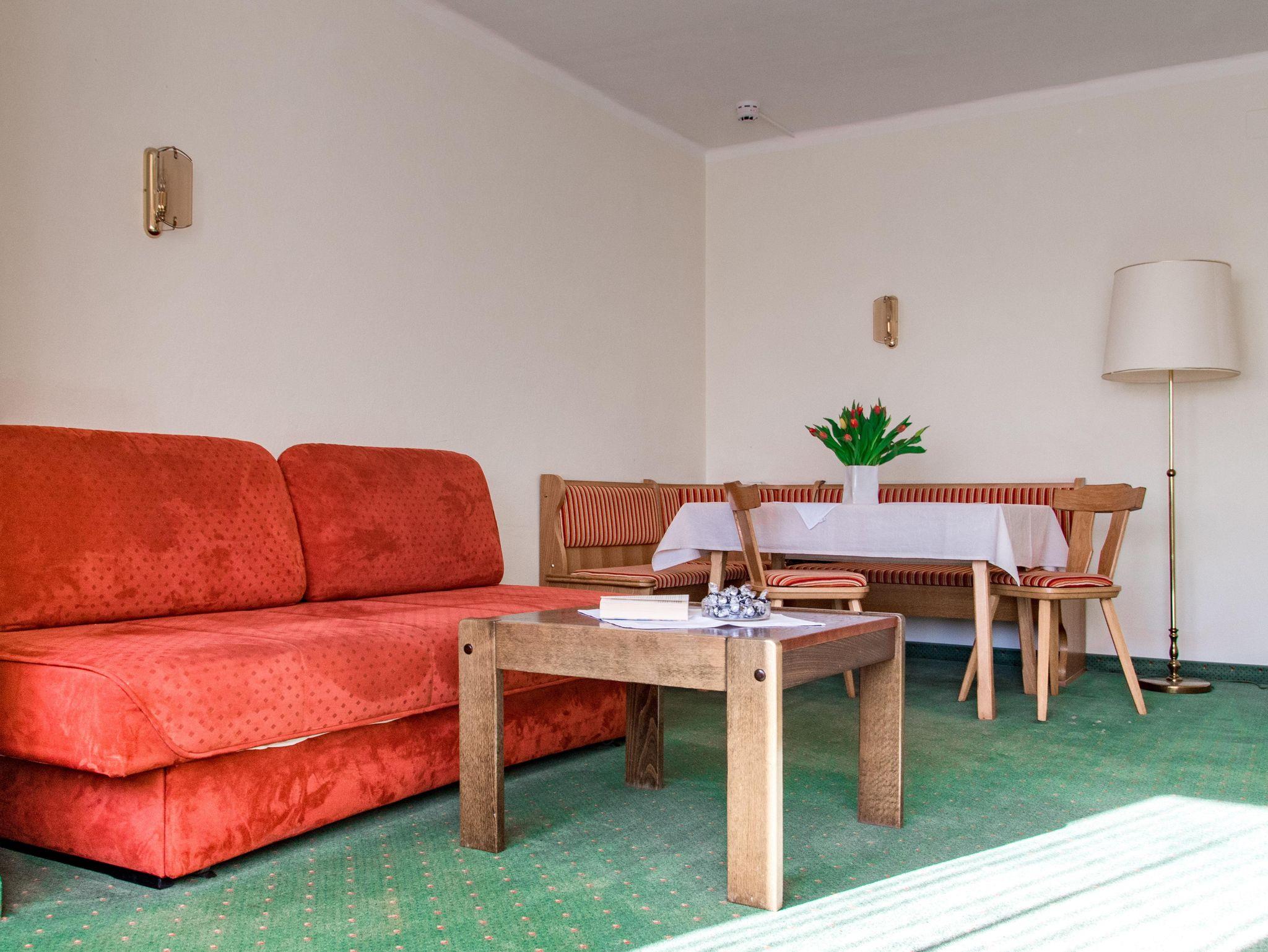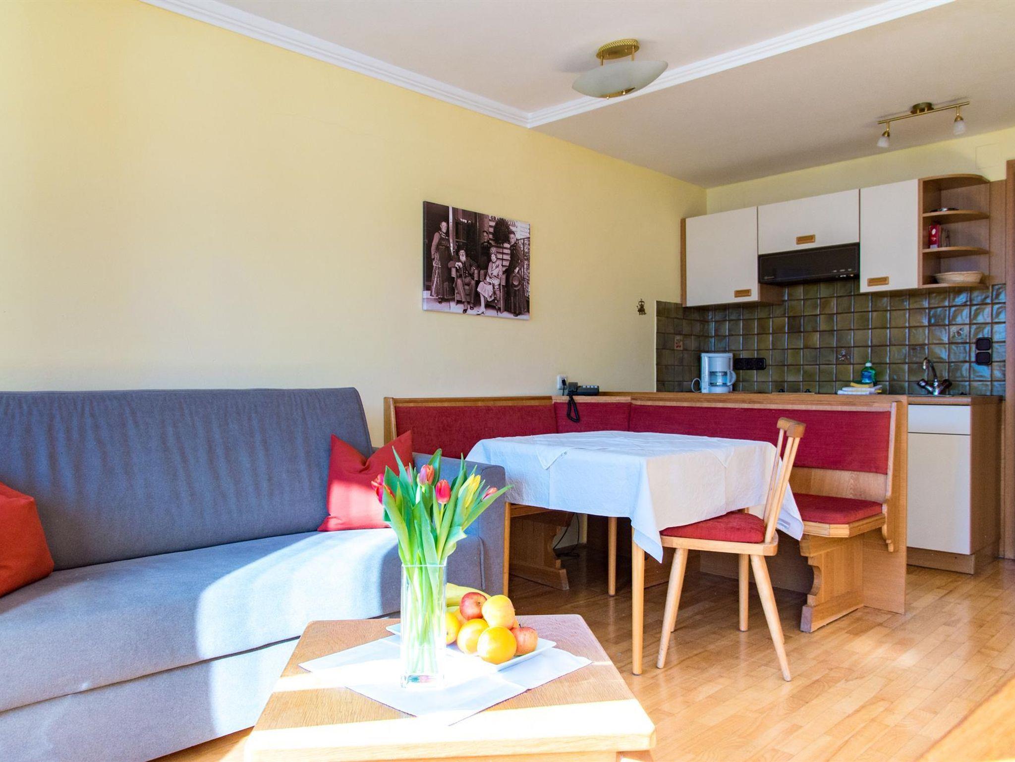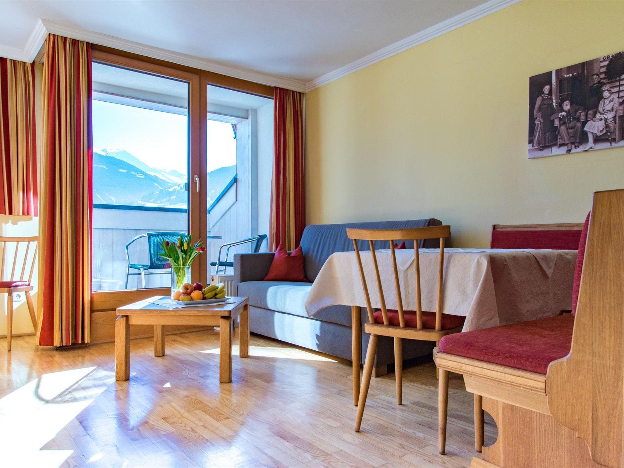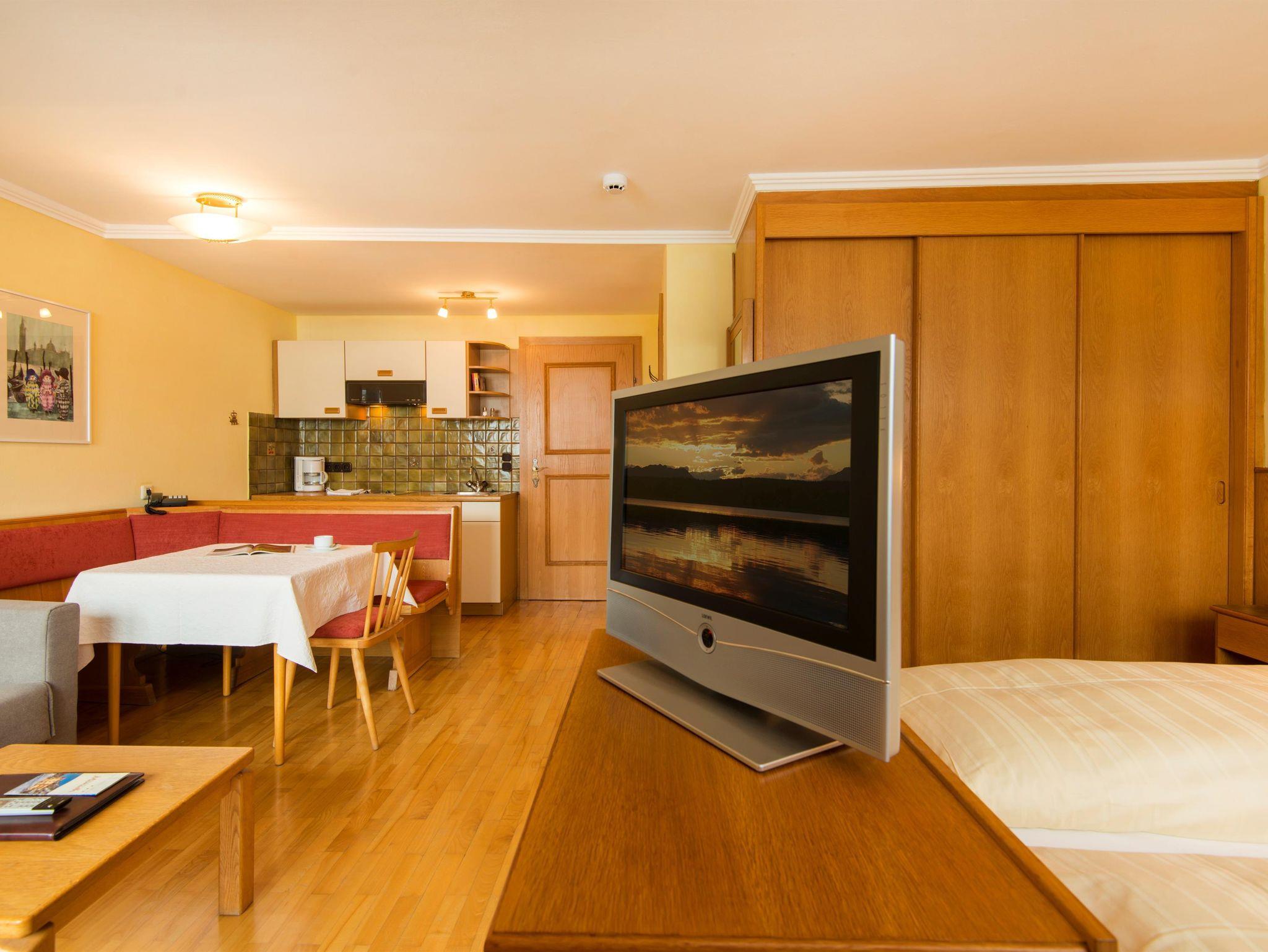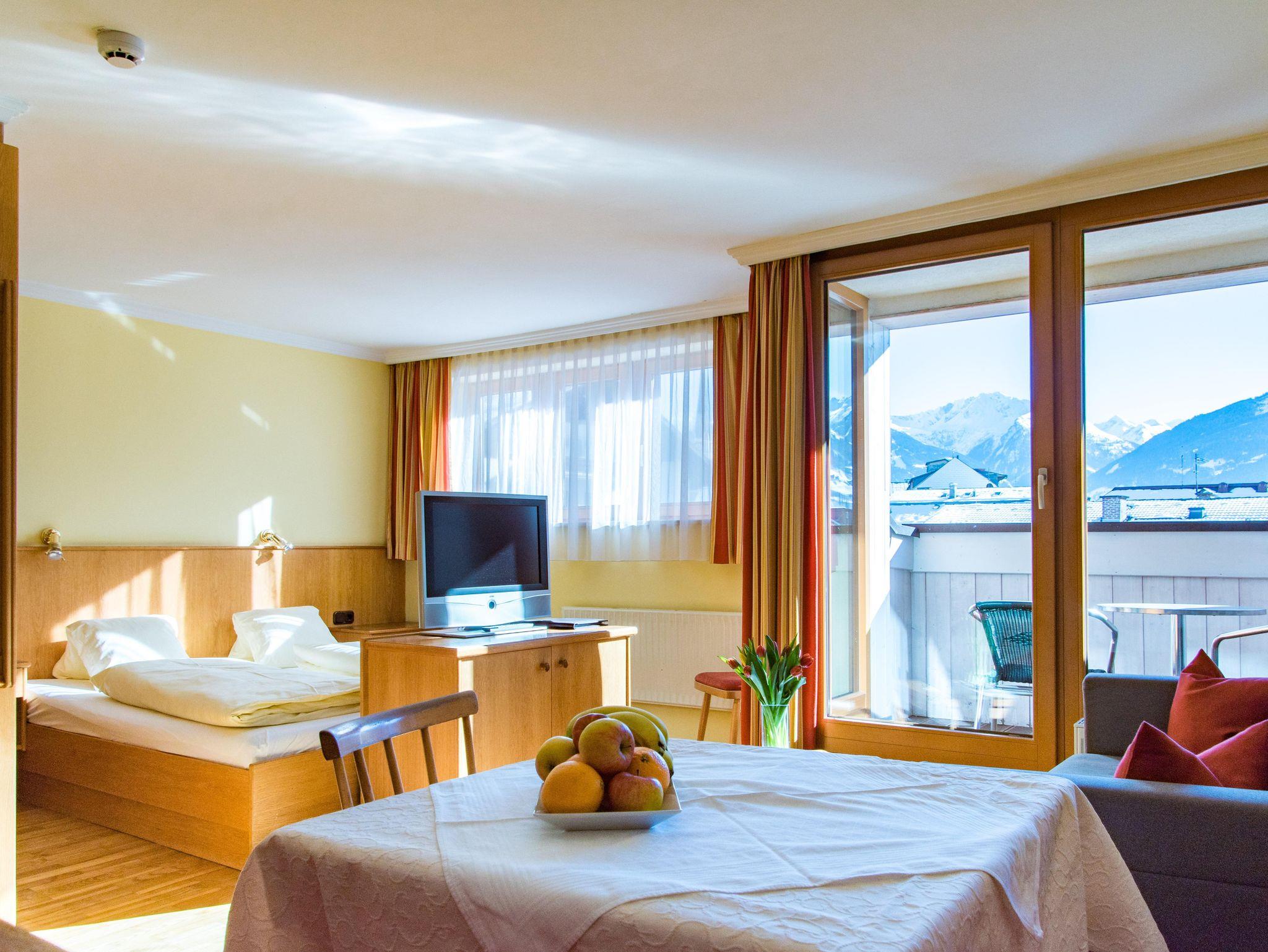 Appartement (ca. 30m²) bestehend aus einem kombinierten Wohn-Schlafraum, Couch, Essecke, Küchenzeile, Dusche/WC, Balkon zur Südseite mit herrlichem Blick auf die Bergwelt der Hohen Tauern.