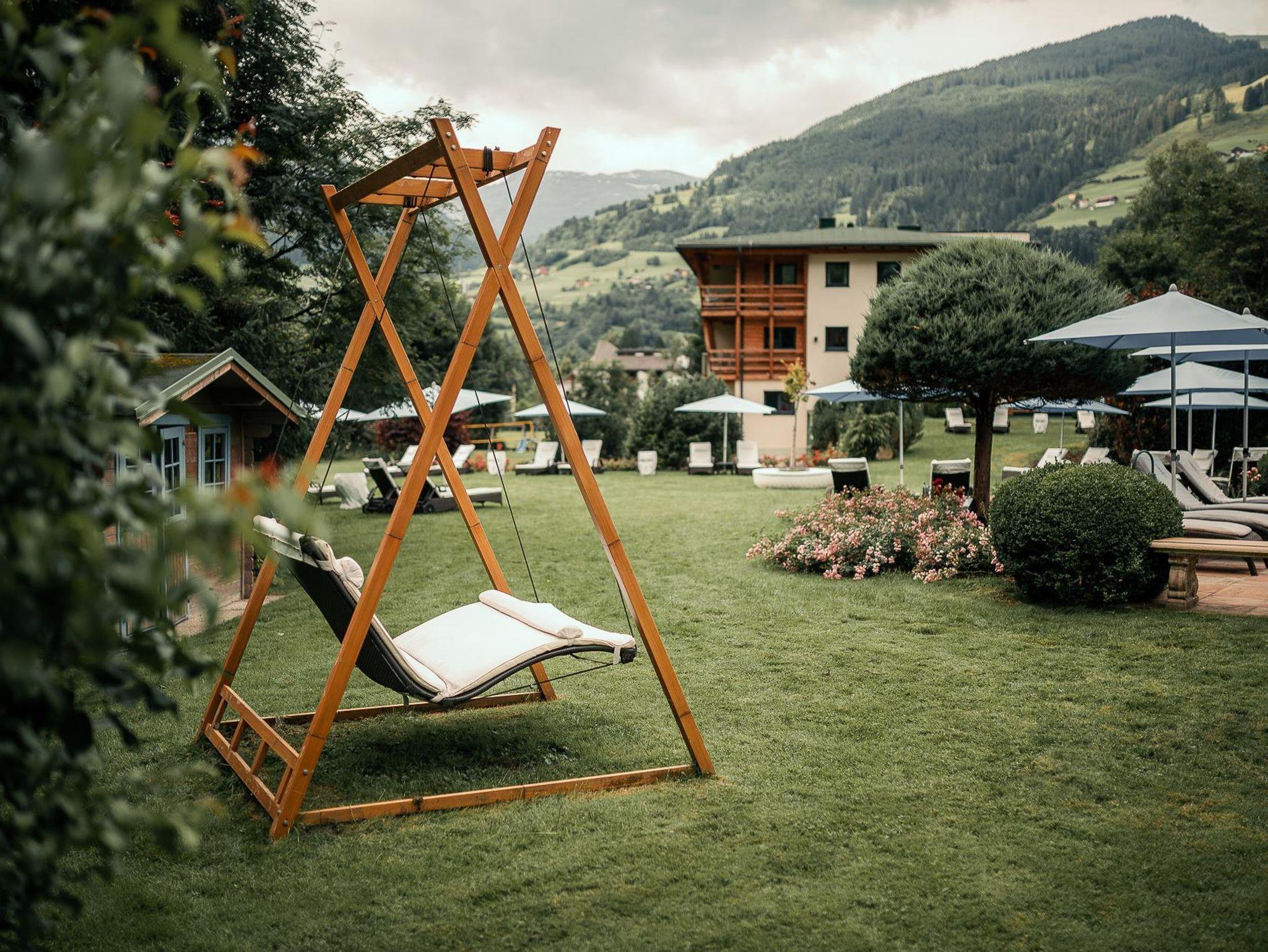 • Nord-Westbalkon mit Blick auf die Gasteiner Bergwelt oder französischer Süd-Ostbalkon mit Blick in den Garten