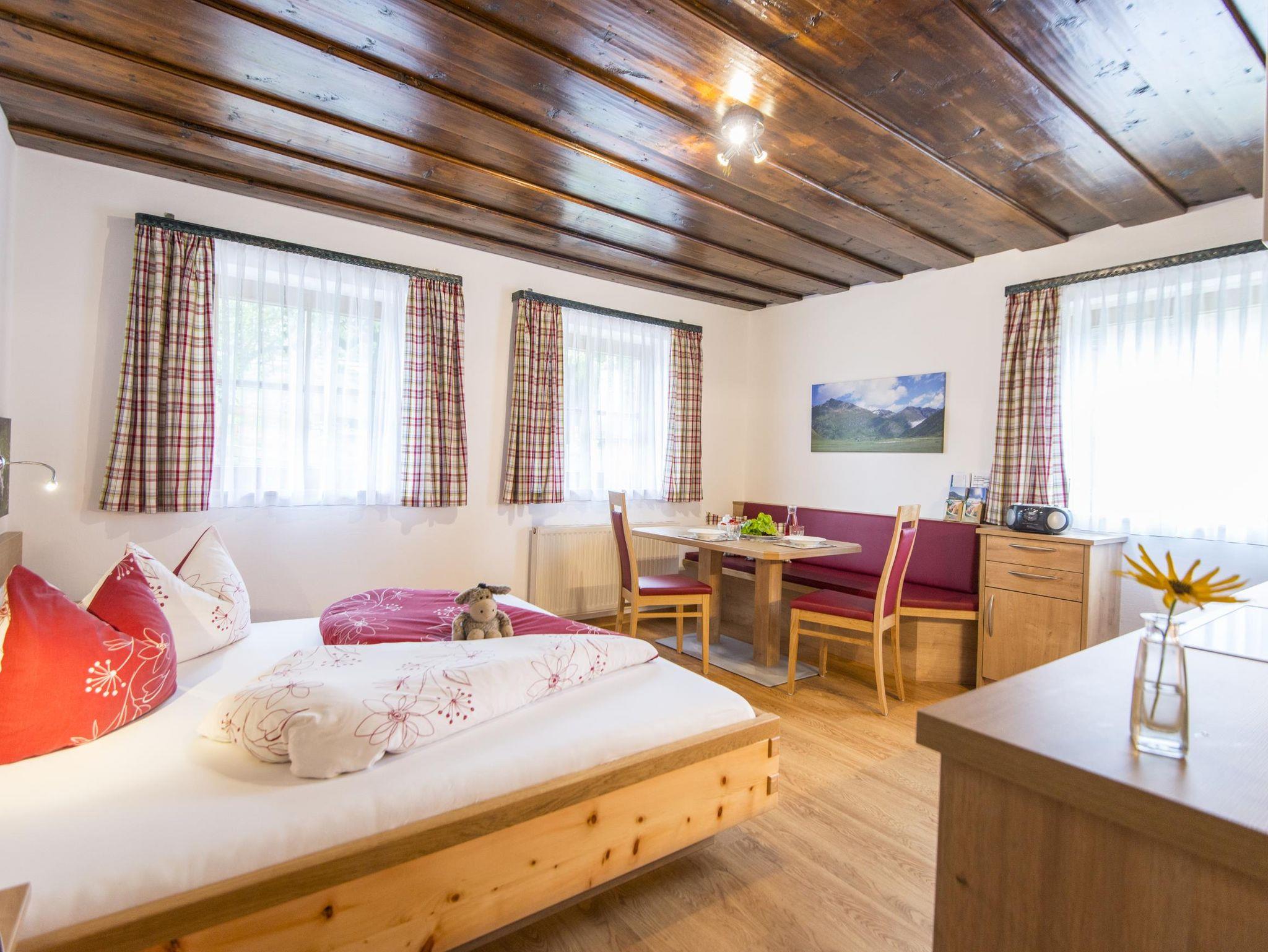 Urlaub in einer familiären Atmosphäre. Egal ob im Winterurlaub mit Kindern oder Sommerurlaub zu zweit – hier findet sich für jeden die passende Unterkunft. Die beiden großen Ferienwohnungen bestehen aus je zwei Schlafzimmern, einem Vorraum mit Garderobe, einem Badezimmer, sowie einer Wohnküche mit gemütlicher Sitzecke. In der Wohnküche finden Sie Geschirrspüler, Elektroherd mit Backofen sowie sämtliche benötigte Kochutensilien vor. Die kleinere Ferienwohnung für 2 Personen besteht aus einen Schlaf-/Wohnraum, einem Vorraum und einem Badezimmer und liegt im Erdgeschoß. Auf Anfrage stellen wir Ihnen gerne ein Frühstückskorb bereit. Dafür verwenden wir hausgemachte Produkte von unserem Bauernhof, wie Milch, Eier von unseren Hühnern, Tees aus dem Kräutergarten, selbstgemachte Marmelade sowie gesunde Säfte.