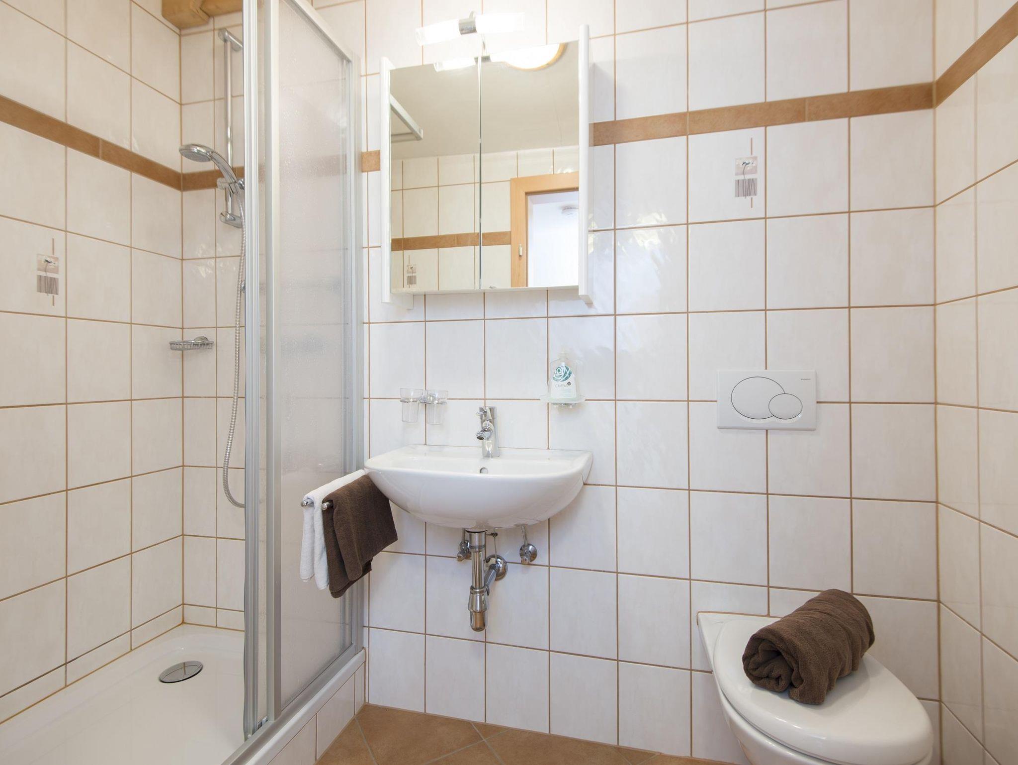 • 1 Bad mit Dusche, WC & Haarföhn