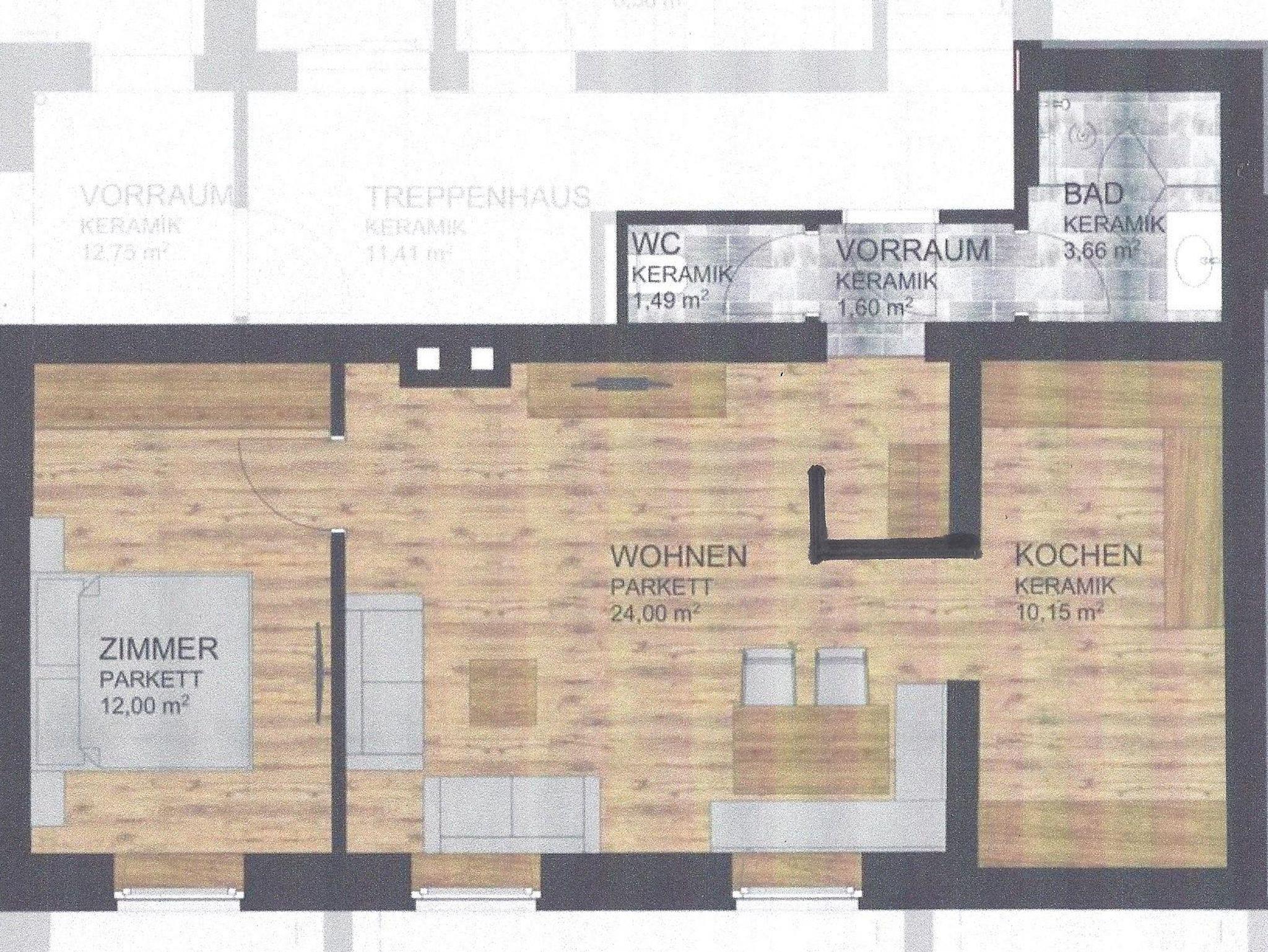 Alle Einheiten zwischen 40m²-63m² sind mit höchstem Komfort ausgestattet und bequem mit dem Lift erreichbar.