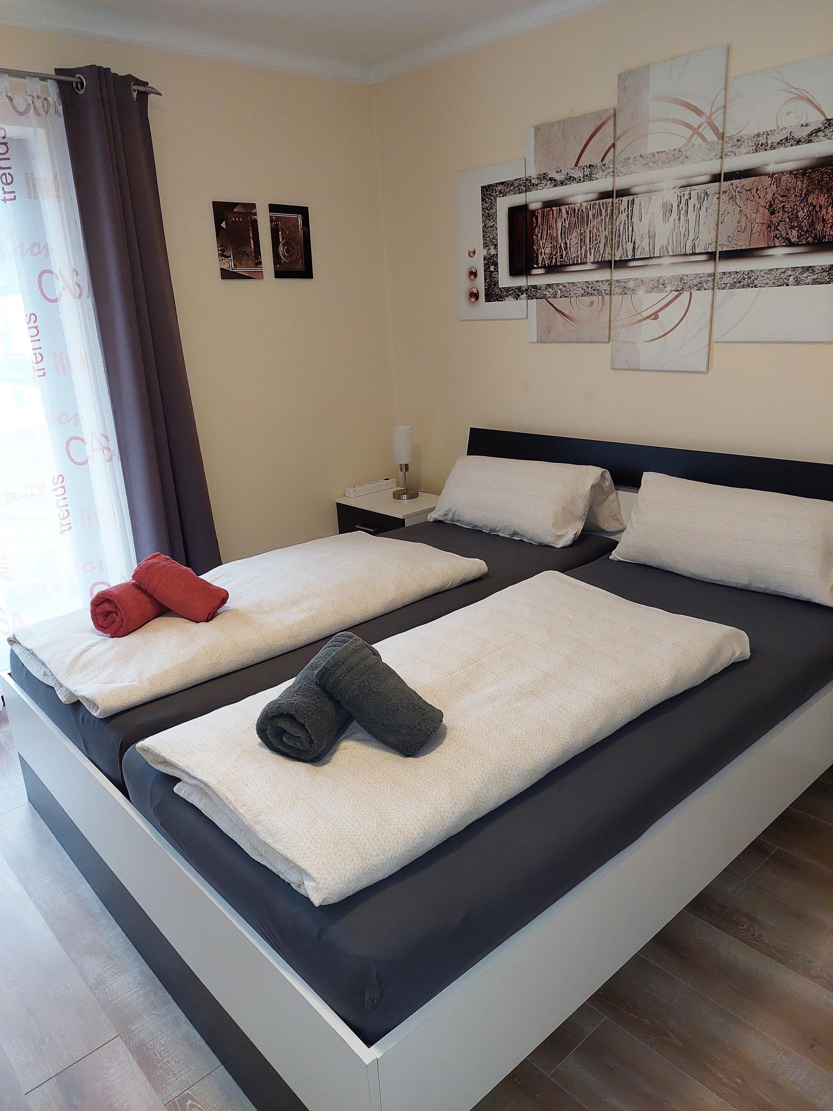 Die 2 Schlafzimmer sind mit Doppelbetten,Kleiderschrank,Herrendiener und Fernseher ausgestattet. Ein Schlafzimmer verfügt zudem über einen Schreibtisch