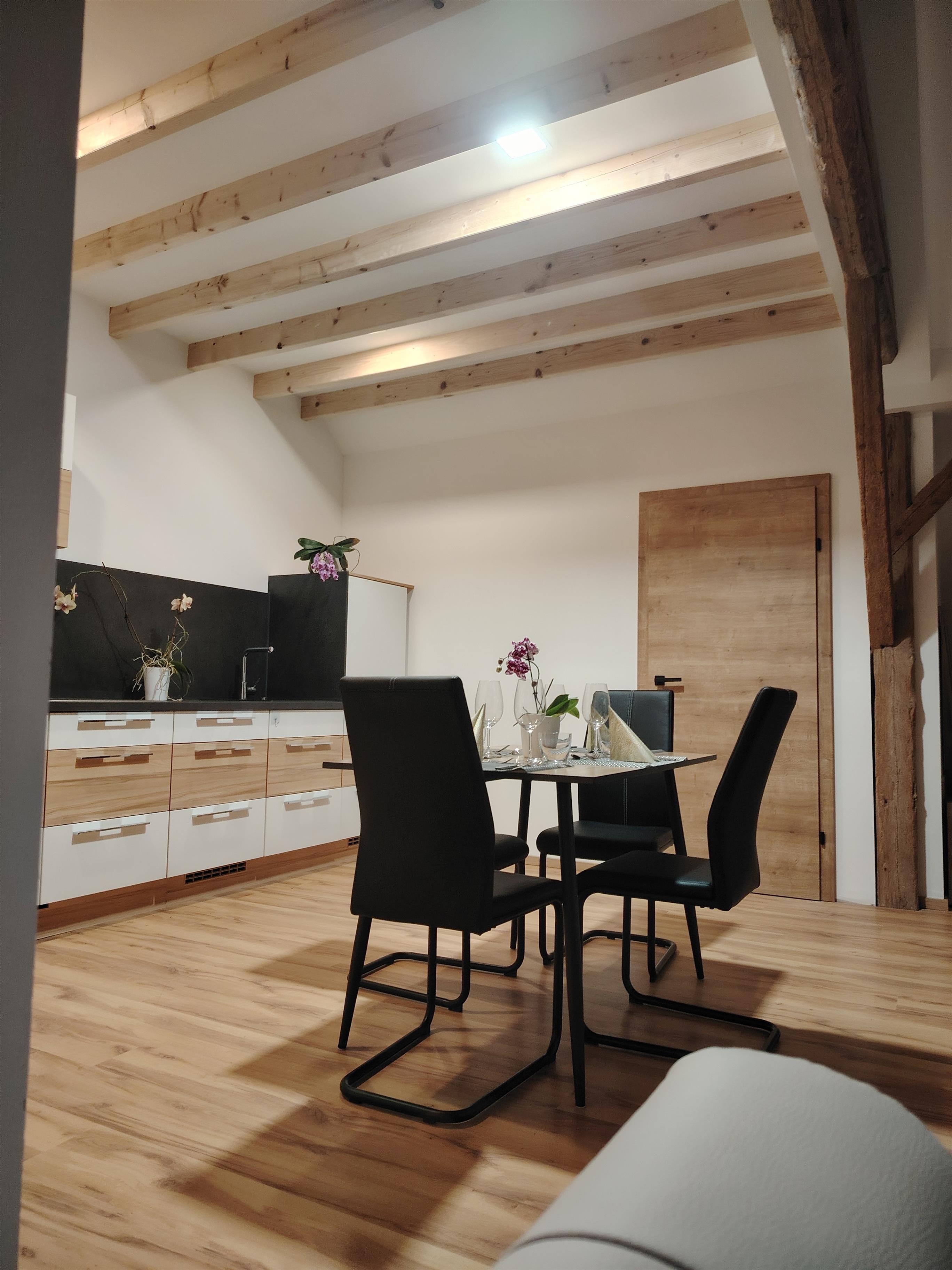 Neu renovierte Wohnung in einem alten Bauernhaus, loftartig, modern eingerichtet, mit wunderschönem Ausblick zur Berg Zimnitz und Jainzen.