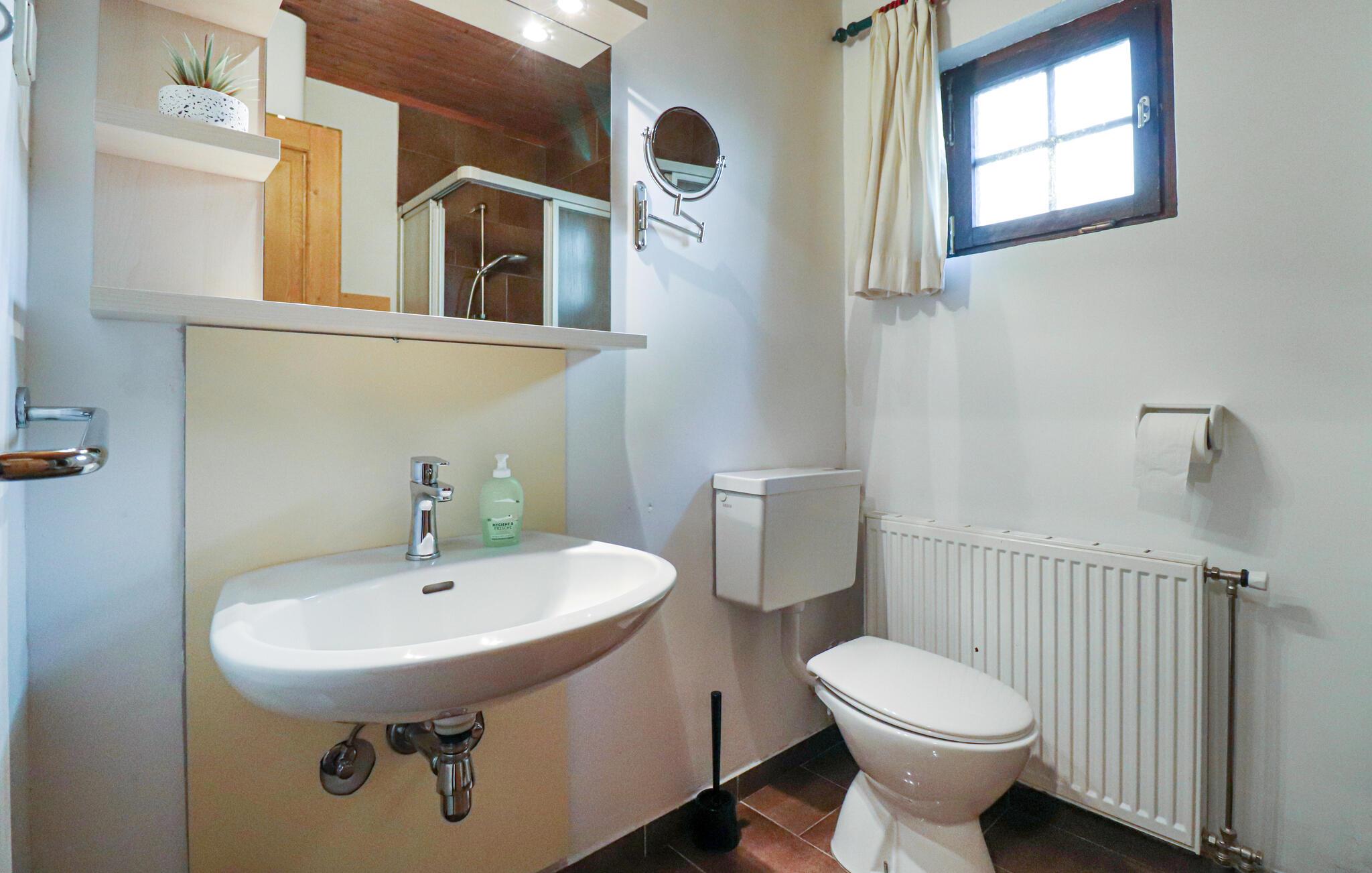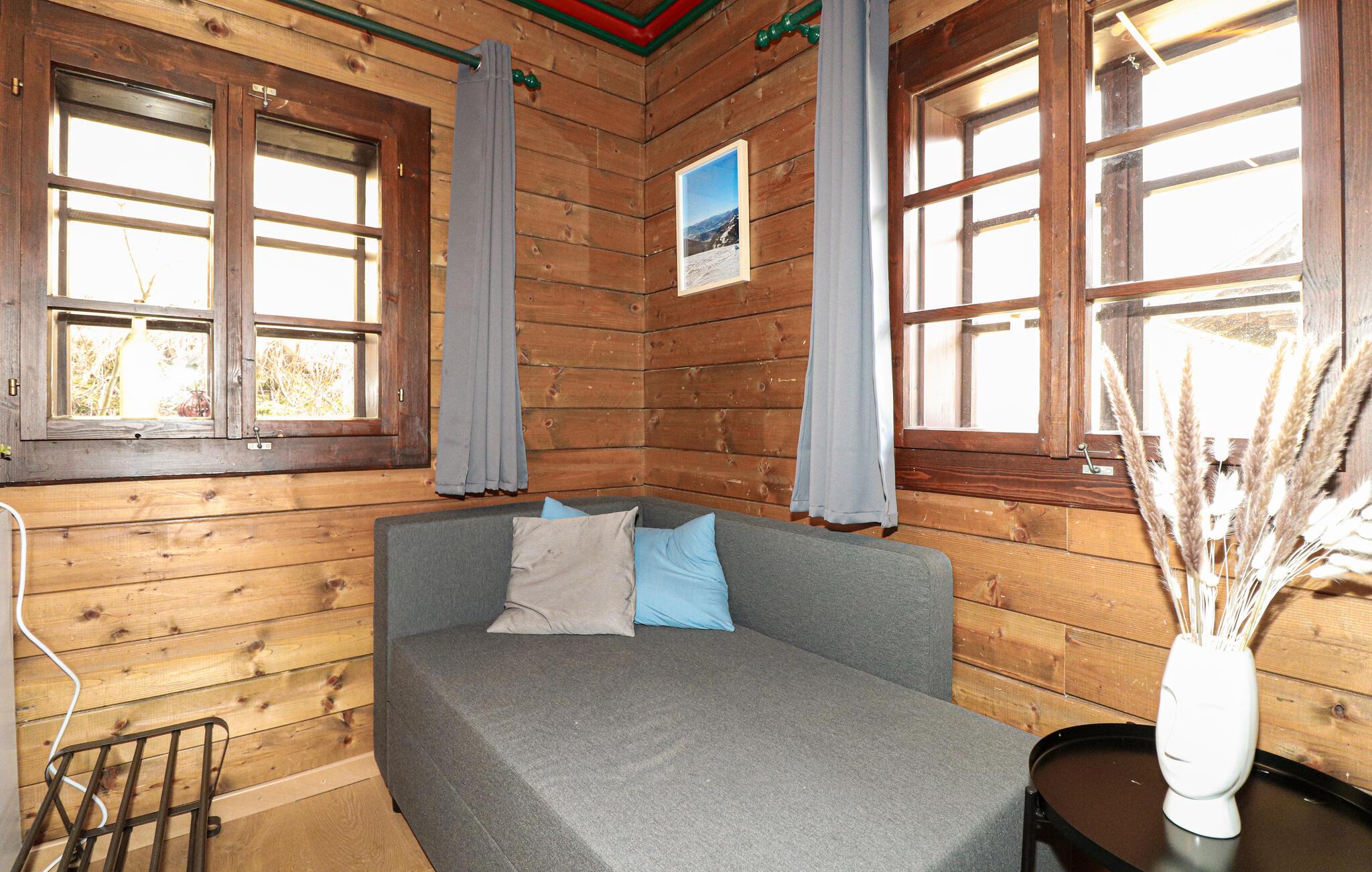 Dette charmerende feriehus tilbyder en rustik atmosfære og en skøn oase. Den rolige beliggenhed på en bjergskråning og nærheden til naturen lægger op til afslapning og ro. Tilbring stemningsfulde timer i den hyggelige opholdsstue med trævægge, traditionelle vinduer og en kærligt designet spiseplads. Glæd jer til hyggelige måltider, og lad kakkelovnen sørge for ekstra komfort. Slap af på sofaen med en god bog eller en film.