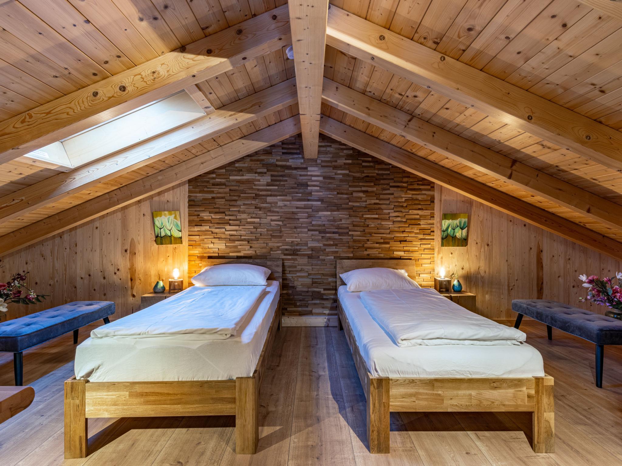 "Chalet Venus", 4-room house 90 m2. Object suitable for 6 adults. Tasteful and wooden furniture furnishings: on the lower ground floor: entrance hall. Shower/WC, double hand-basin. Underfloor heating. Upper floor: living/dining room with dining nook and satellite TV. Exit to the balcony. 2 double bedrooms. Open kitchen (oven, dishwasher, 4 ceramic glass hob hotplates, microwave, electric coffee machine, Capsules for coffee machine (Nespresso) extra) with dining table. Sep. WC. Top floor: 1 room with sloping ceilings with rooflight with 2 beds. Large balcony, large terrace. Terrace furniture, balcony furniture. Beautiful view of the mountains and the countryside. Facilities: washing machine. Internet (WiFi, free). Parking (roofed, 2 cars) at the house. Please note: non-smoking house. Maximum 2 pets/ dogs allowed. Smoke alarm, fire extinguisher.