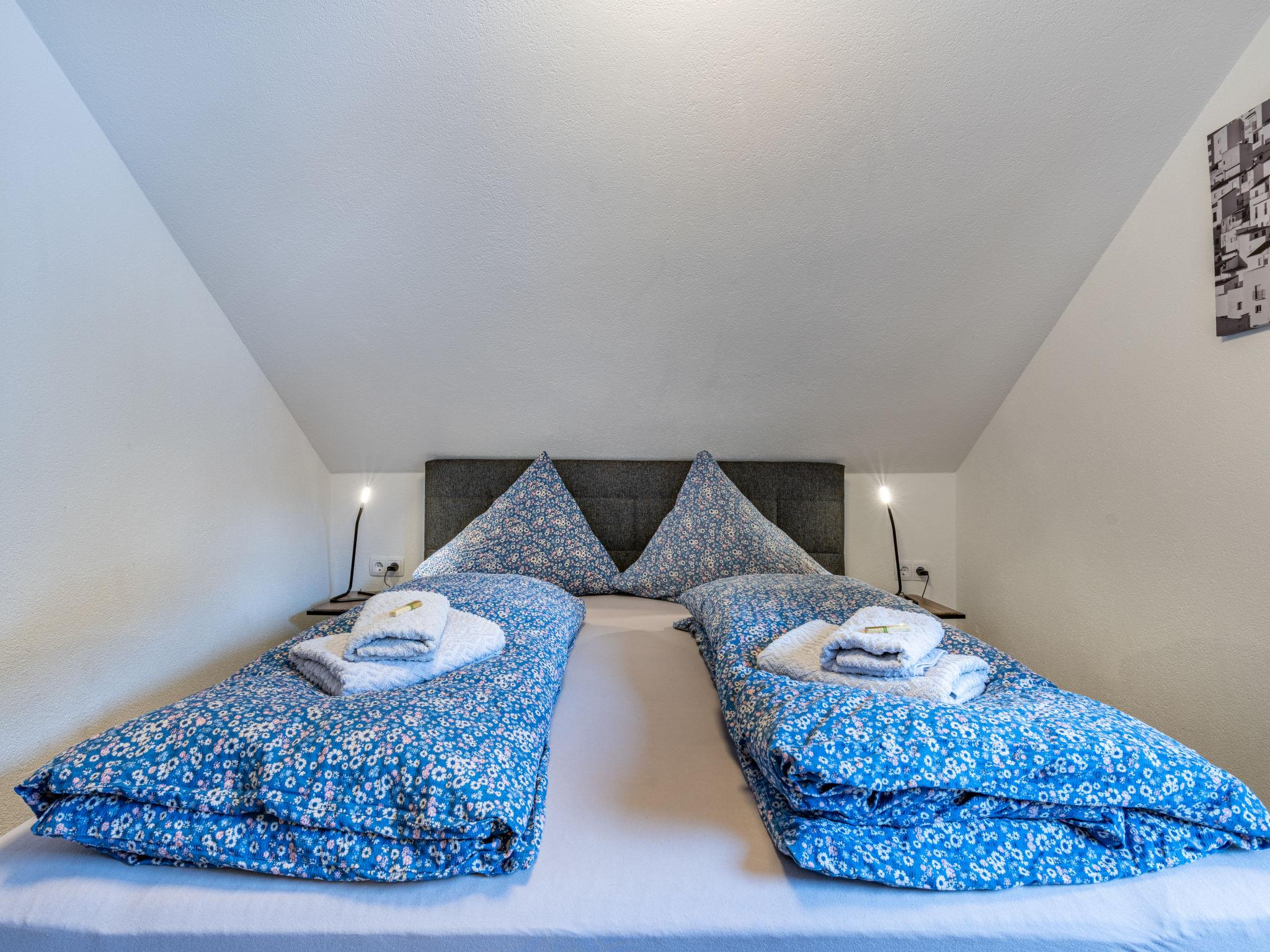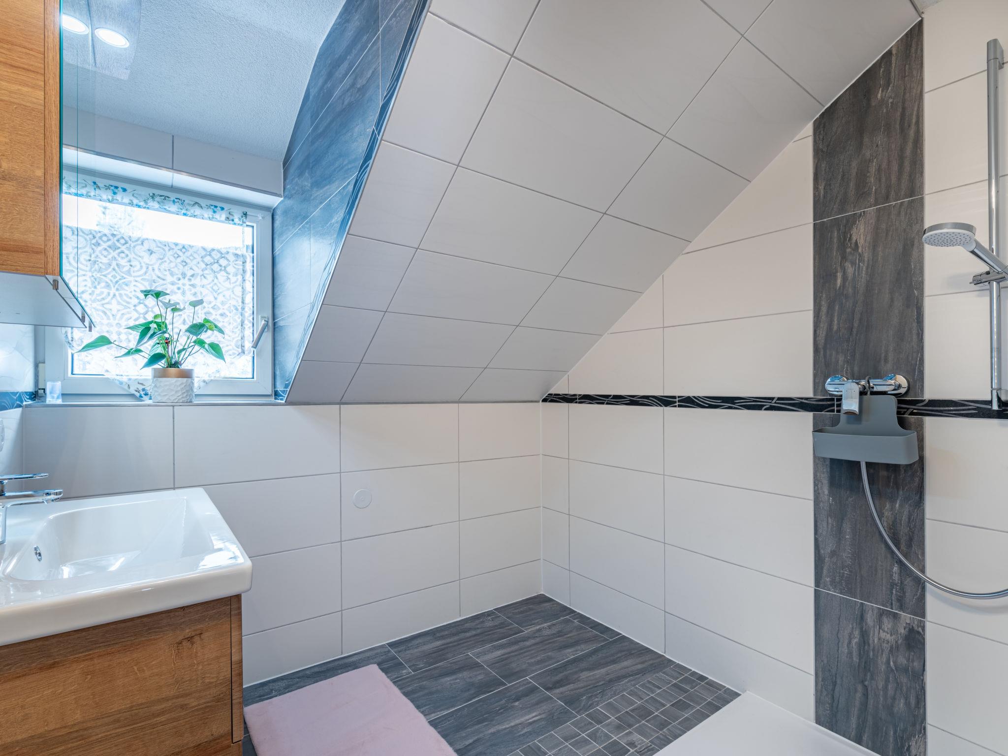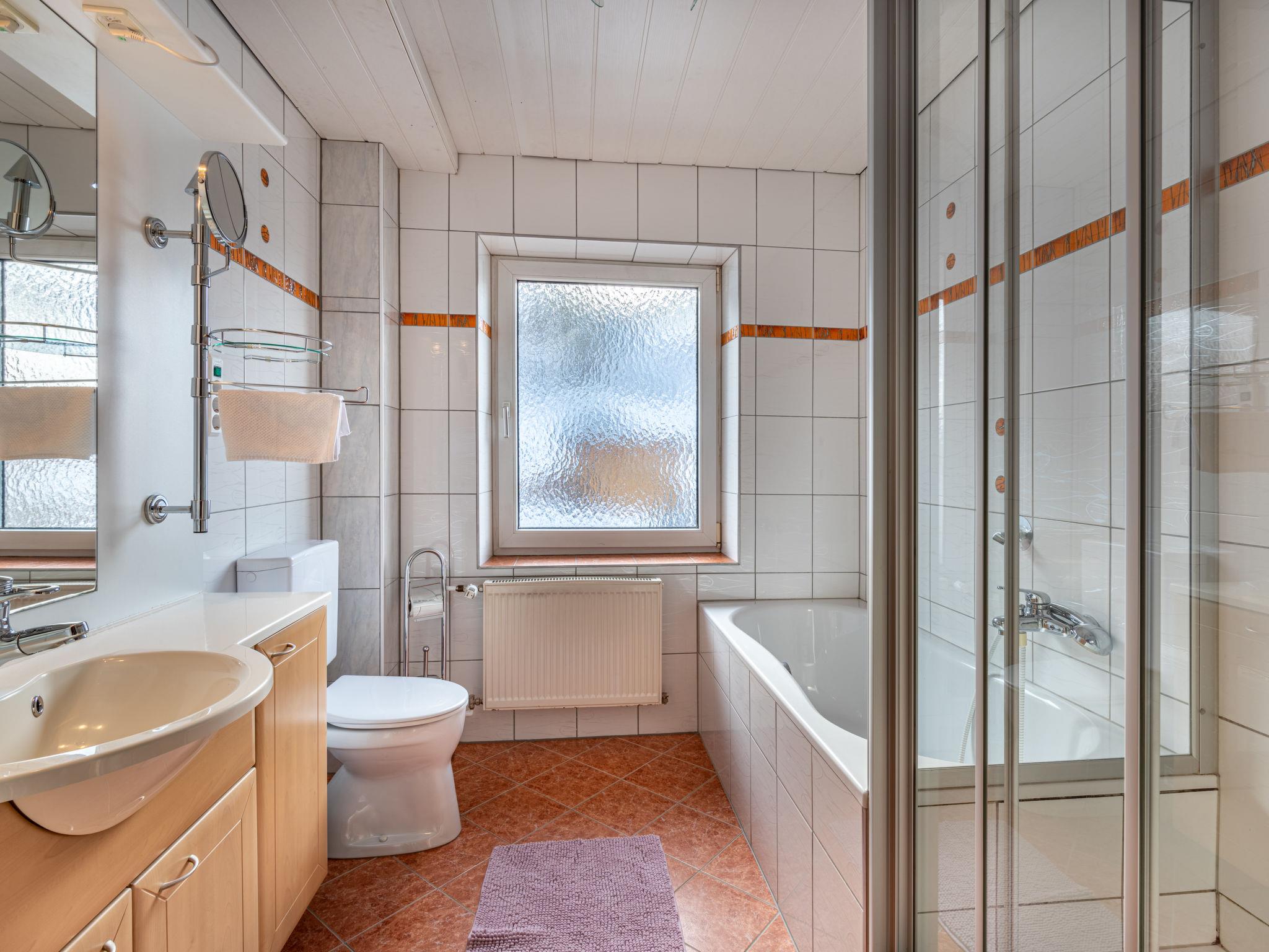 "Haus Hilda", 9-room house 250 m2 on 3 levels. Practical furnishings: entrance hall. Kitchen-/living room (oven, dishwasher, 4 ceramic glass hob hotplates, toaster, kettle, microwave, electric coffee machine) with dining nook. Sep. WC. Heating. Upper floor: 2 rooms, each room with 1 bed. 1 double bedroom. Living room with satellite TV (flat screen). Bath/shower/WC. 2nd upper floor: 2 double bedrooms. Exit to the balcony. 2 double bedrooms, each room with satellite TV (flat screen). Shower, sep. WC. Parquet floors. Balcony. Balcony furniture. Facilities: Internet (WiFi, free). Please note: non-smokers only. Maximum 1 pet/ dog allowed. When there are less than the maximum number of guests staying at the property, not all of the housing units will be available for use.