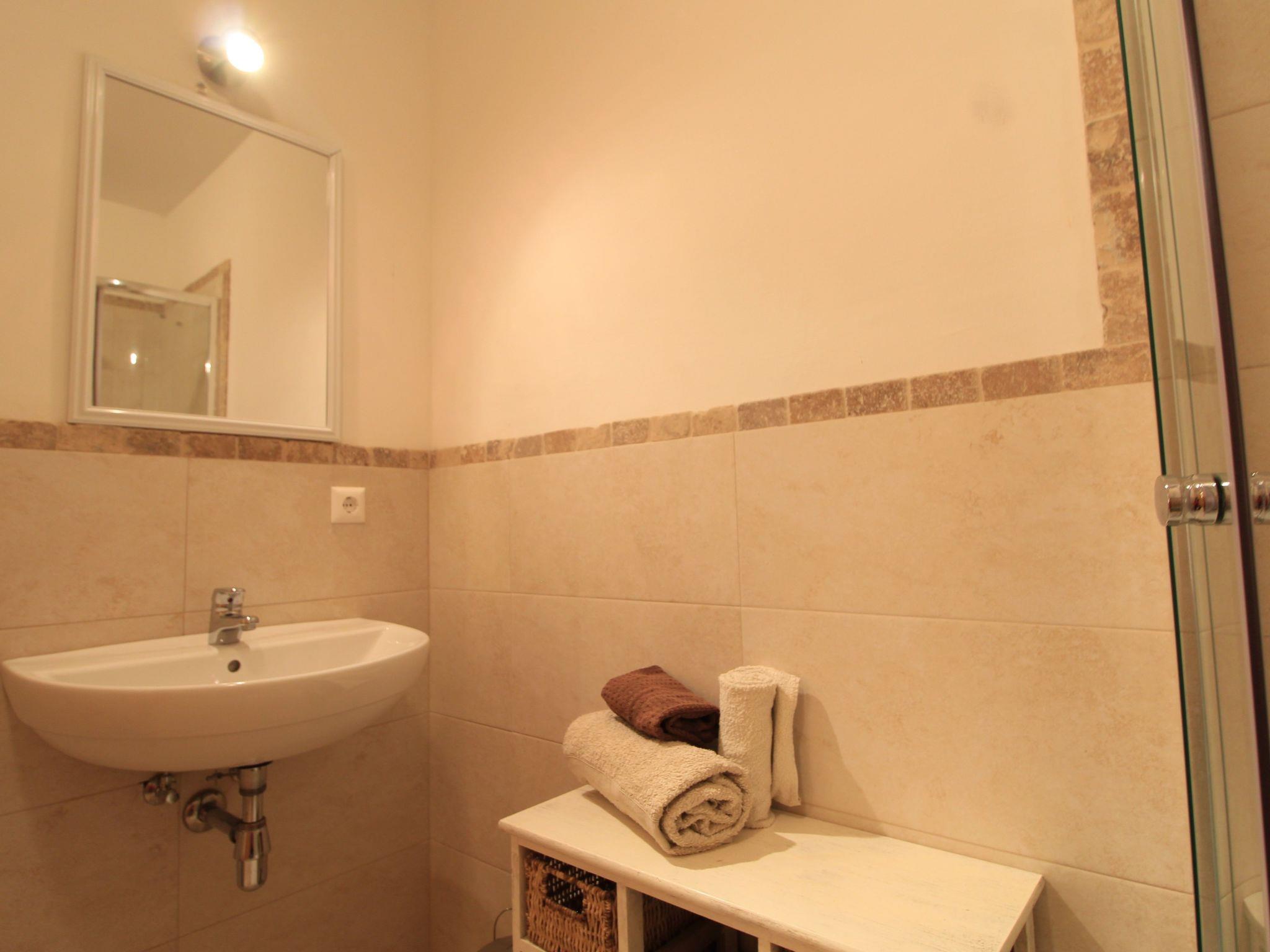 The interior of our flat leaves nothing to be desired. A cosy living room with kitchenette, equipped with oven and dishwasher, provides the perfect setting for shared meals and relaxed evenings. The sofa bed and another sofa in front of a large window invite you to linger with a view of the garden. Two spacious bedrooms, connected by a sliding door, offer space for up to six people with two double beds and a bunk bed. Two bathrooms, one of which has a washing machine and is equipped with a washbasin, bidet, shower and WC, also ensure your comfort.