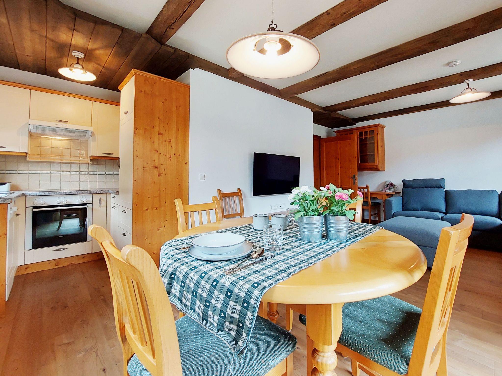 The location of this holiday flat couldn't be better for winter sports enthusiasts: a ski slope, a mountain/cable car and a ski school are just a few minutes' walk away. A cross-country ski trail is just 1 km away and a ski bus, which stops 200 m from the flat, provides easy transport to more distant ski areas. The proximity to the edge of the forest invites you to rest and relax, while hiking trails start right outside the front door. The nearest village centre is just 300 m away and offers local amenities; a grocery store for daily needs is also within easy walking distance.