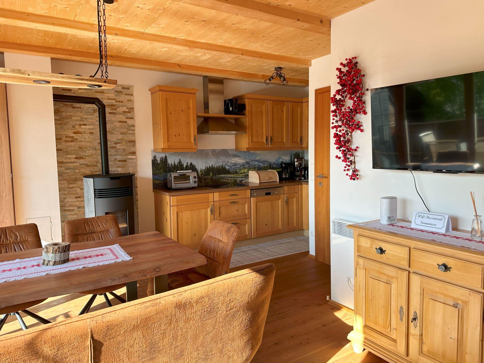Outside, the large terrace invites you to linger. Not forgetting the private garage, which makes your stay in our holiday flat even more comfortable. From this quiet retreat, you have an unobstructed view of the picturesque surroundings, which will delight you at any time of year.