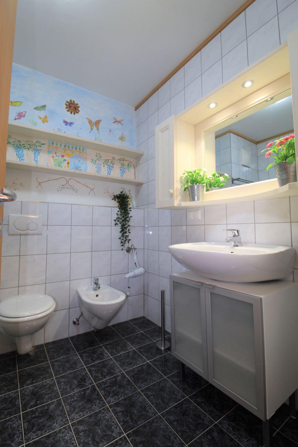 Inside, in addition to the inviting living room, you will find a bedroom with a comfortable double bed and another room with two single beds, ideal for children or friends. The large bathroom has a bathtub, separate shower and WC for maximum comfort. There is also an additional separate bathroom so that morning routines can run smoothly. The kitchen is equipped with modern amenities such as a dishwasher and oven, so that nothing stands in the way of culinary experiences.
