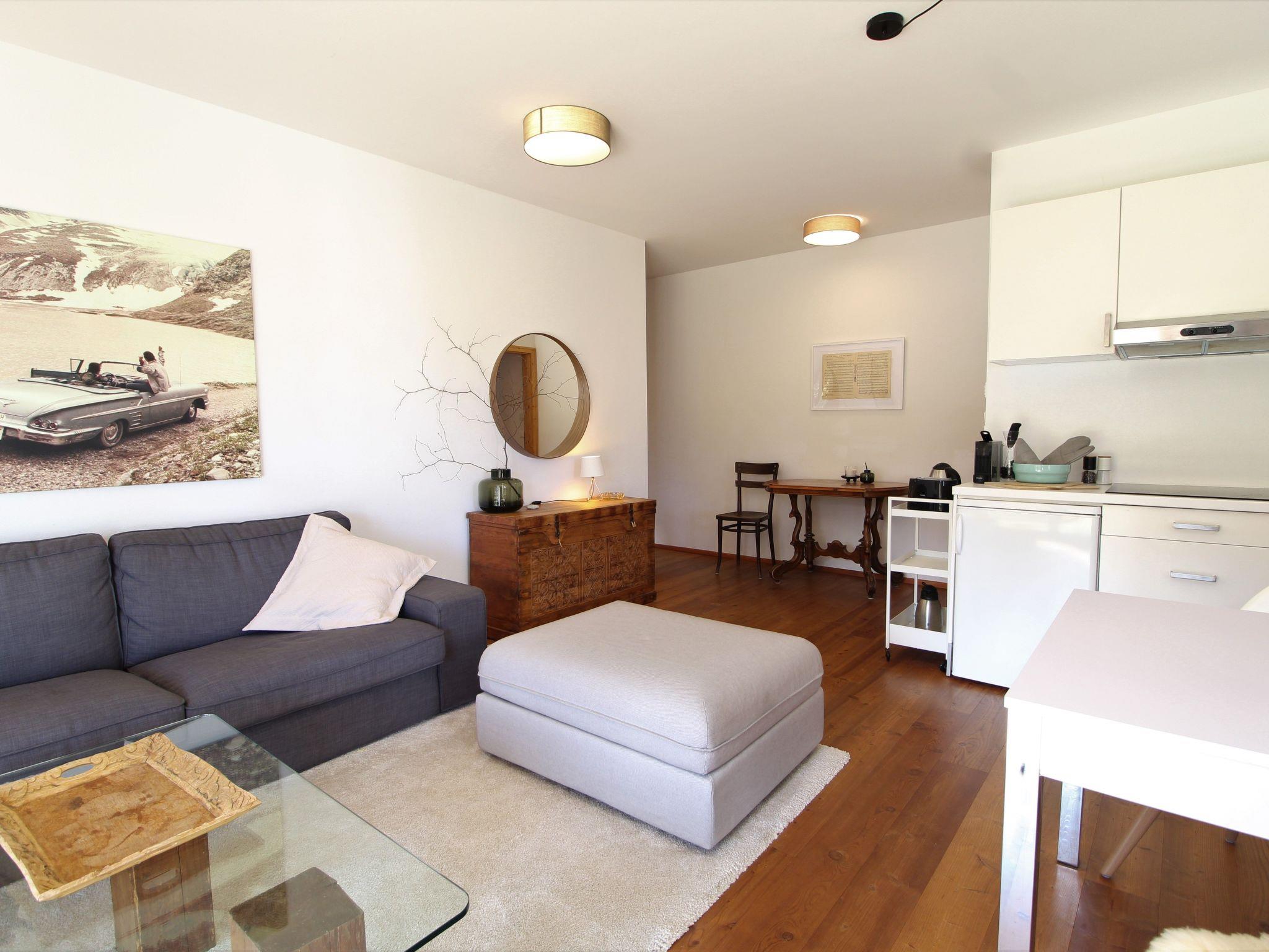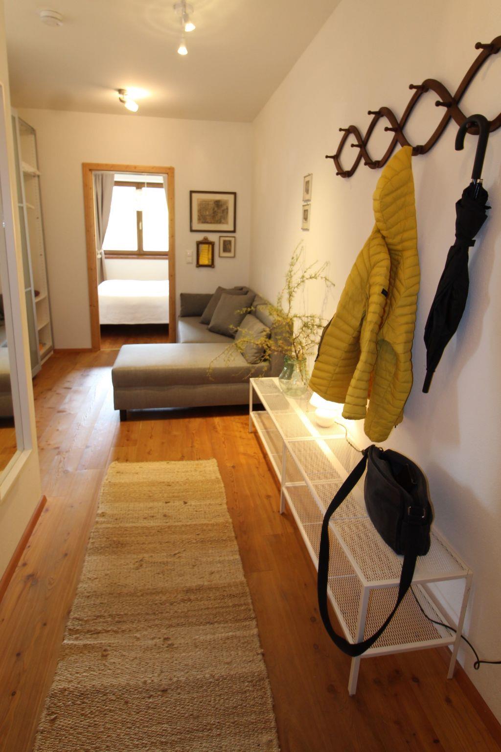 Inside you will find a living room with kitchenette, equipped with everything you need for a carefree stay, including a dishwasher. A cosy sofa and a large window offer you an uninterrupted view of your private garden. The flat also has a bedroom with a double bed and en-suite bathroom and a second bedroom, also with a double bed. A practical sofa bed offers space for a fifth guest. A second bathroom with washing machine, a ski and bicycle storage room and an outdoor car park round off the facilities.