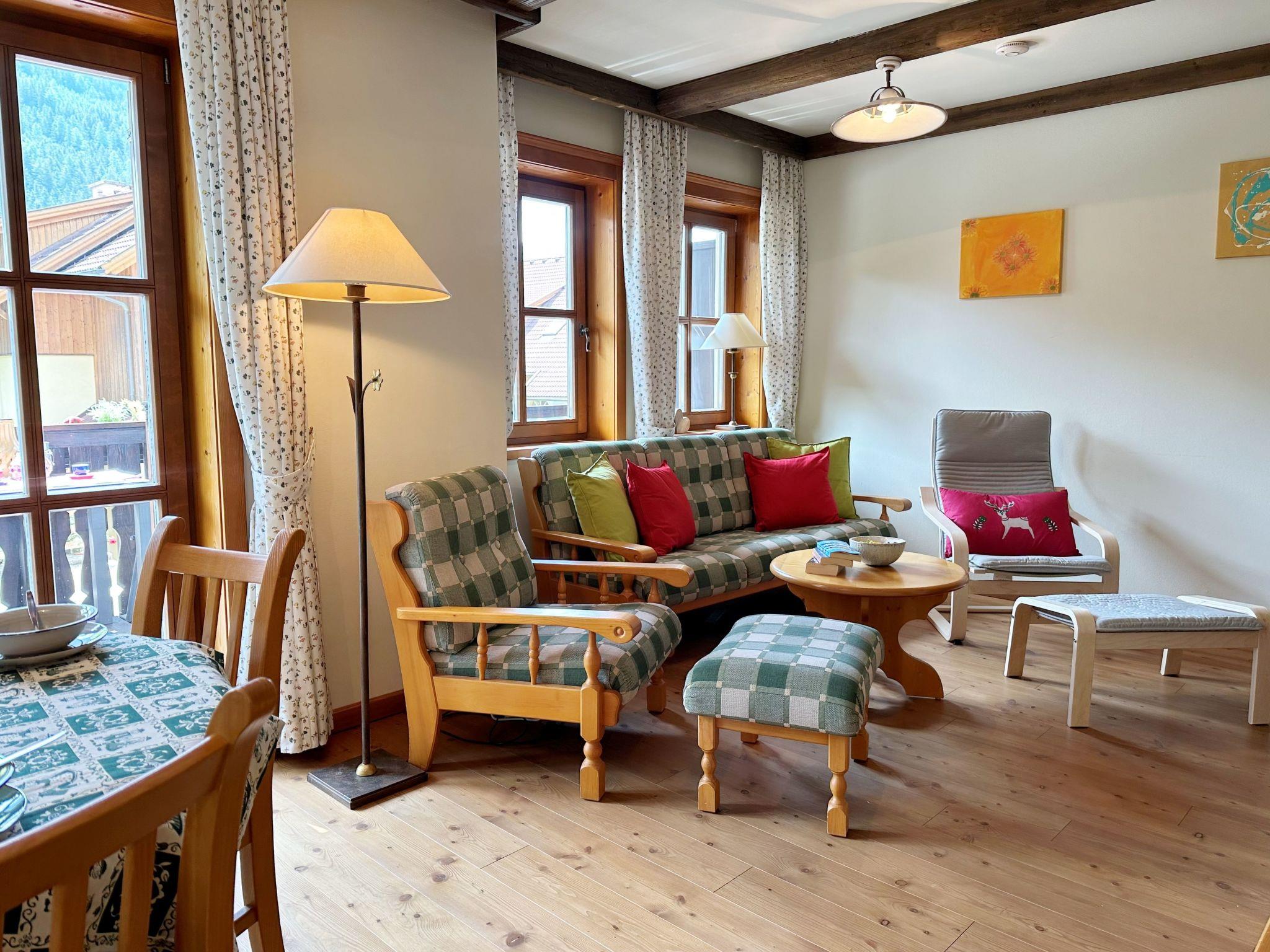 The location of the holiday flat is ideal for winter sports enthusiasts: a ski slope, mountain railway and cable car are just 100 metres away. The ski bus can be reached in 200 metres and a ski school in 300 metres, while cross-country skiing enthusiasts will find trails 700 metres away. The proximity to the centre (300m) and the grocery store (500m) also provides additional convenience during your stay.