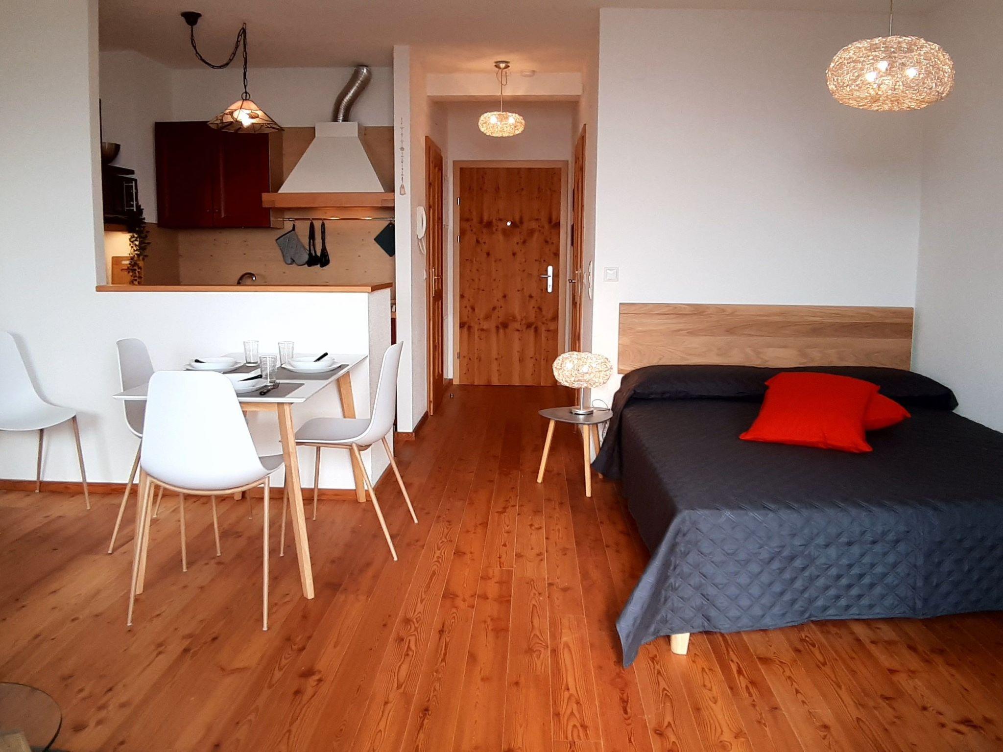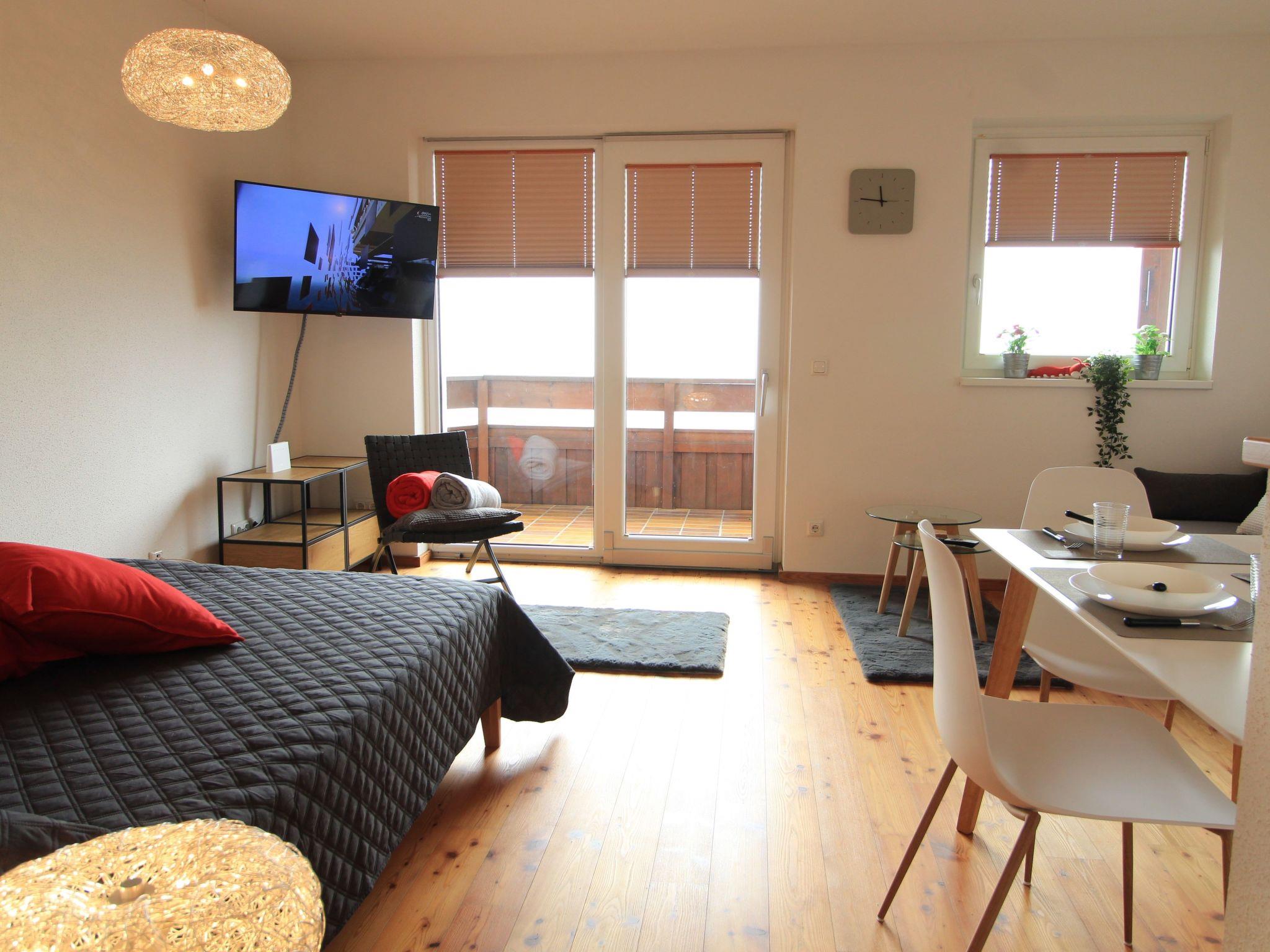 Inside, you will find tasteful furnishings that leave nothing to be desired. A cosy double bed and a practical double sofa bed offer plenty of space for you to relax. The modern kitchen is fully equipped with an oven and microwave and invites you to cook and socialise together. For your comfort, the studio is also equipped with an elegant bathroom with shower and a washing machine, just in case.