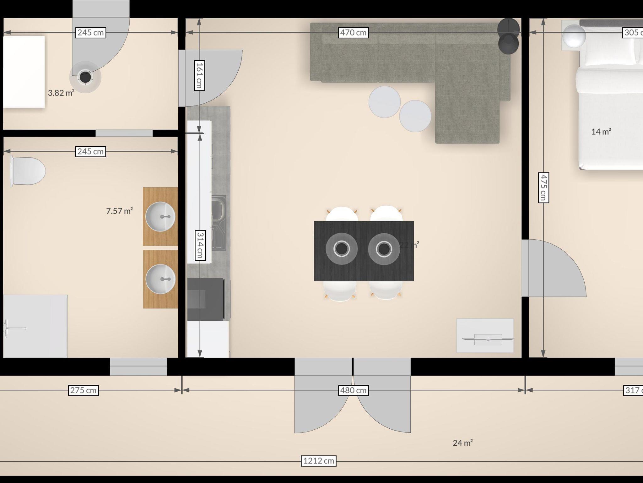 Attraktives Apartment für 4 Personen mit separatem Schlafzimmer, offener Küche und Schlafsofa für 2 Personen.