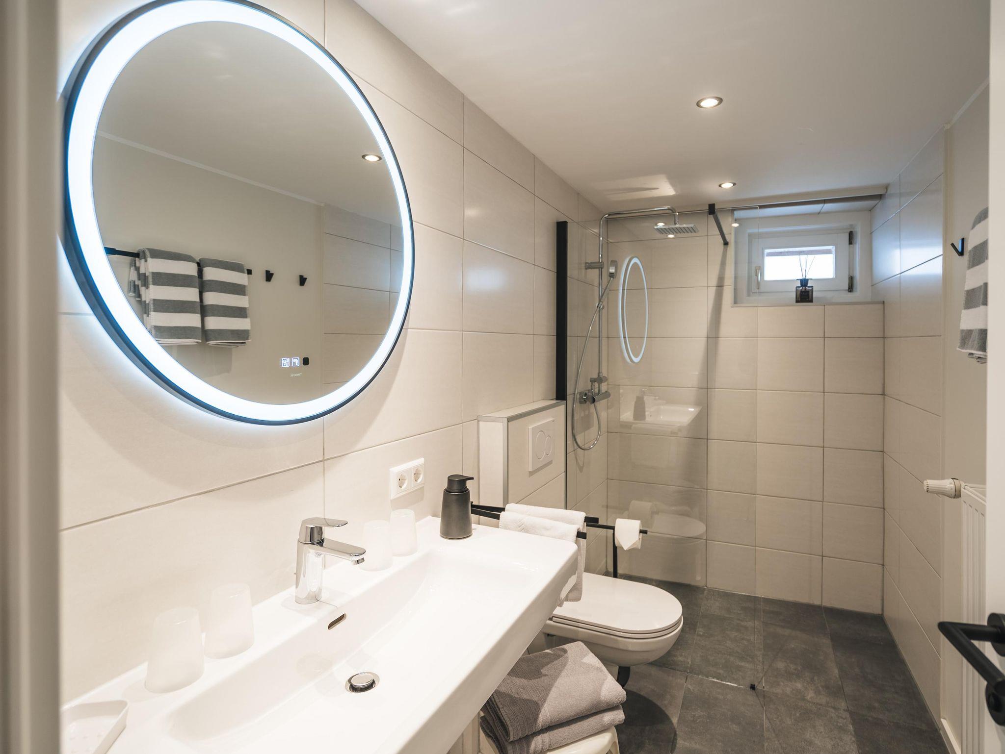 • Badezimmer mit Dusche, separates WC
