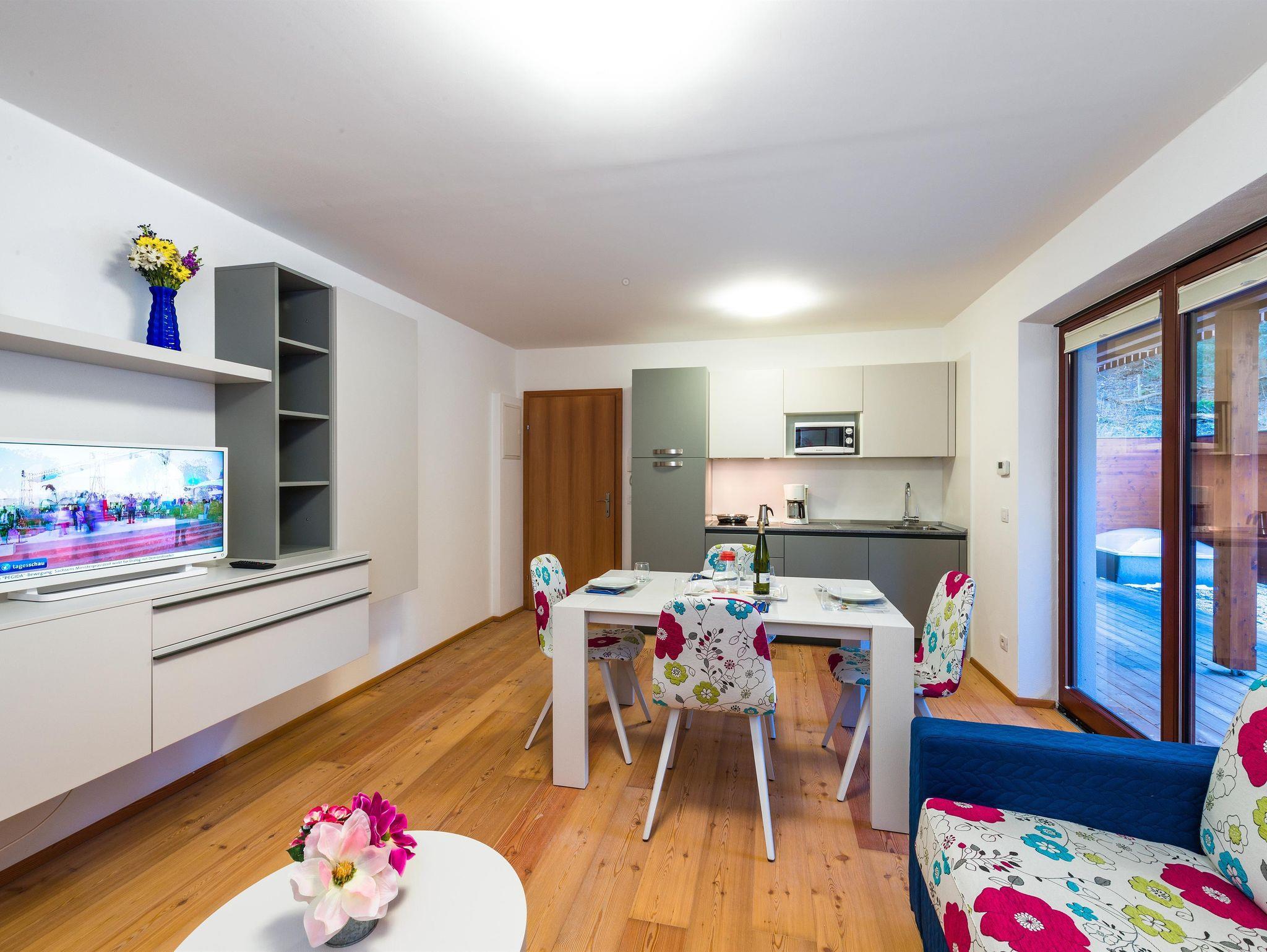 Nach einem aktiven Tag in der Natur können Sie auf Ihrem Balkon oder der Terrasse entspannen und den Abend in gemütlicher Atmosphäre bei einem atemberaubenden Blick auf die Berge ausklingen lassen.
