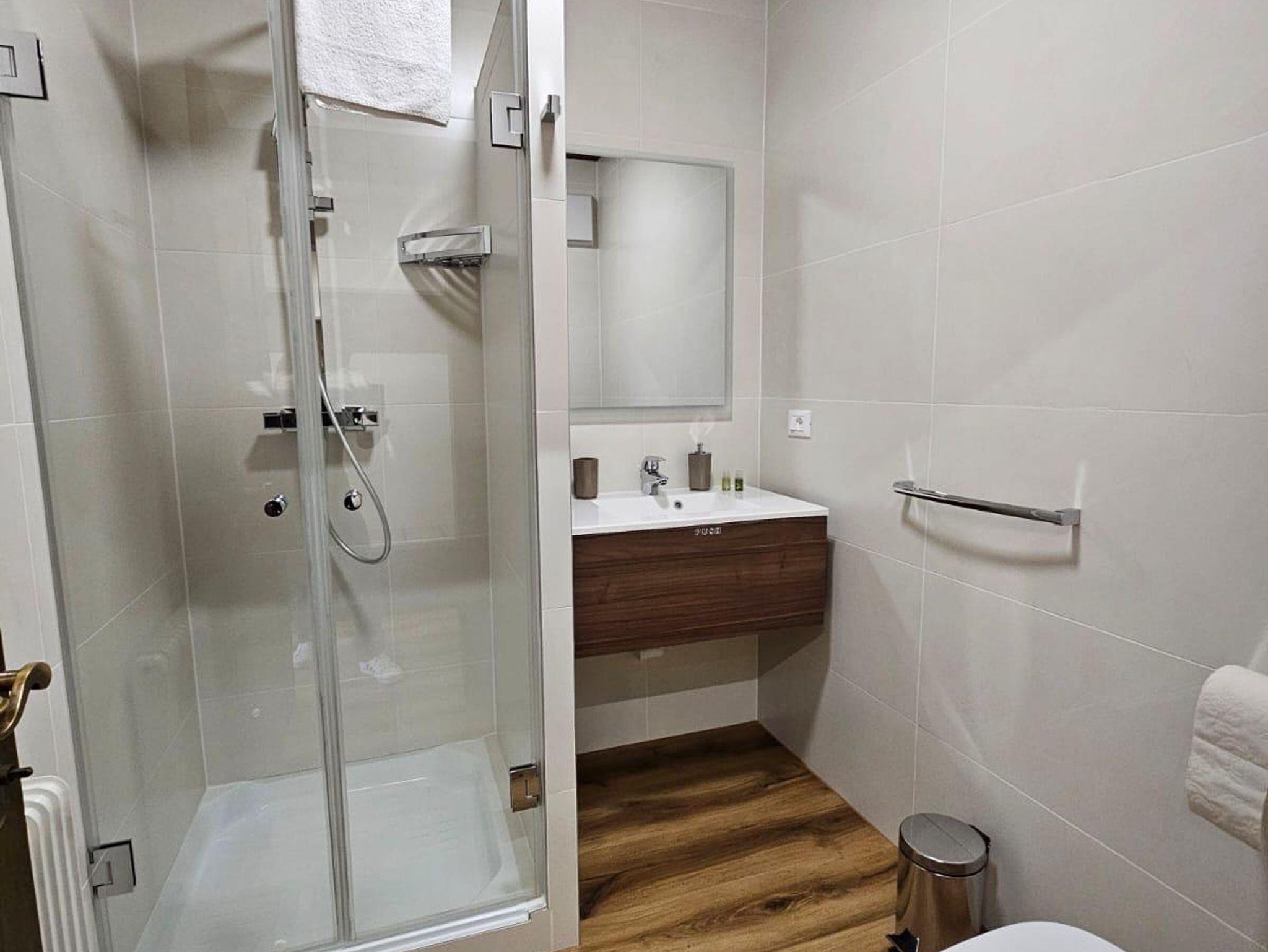Schlafzimmer (zwei getrennte Betten), Wohn- Schlafraum (ausziehbare Doppelcouch), Kochnische mit Eßecke, Vorraum, Dusche/WC, Balkon.