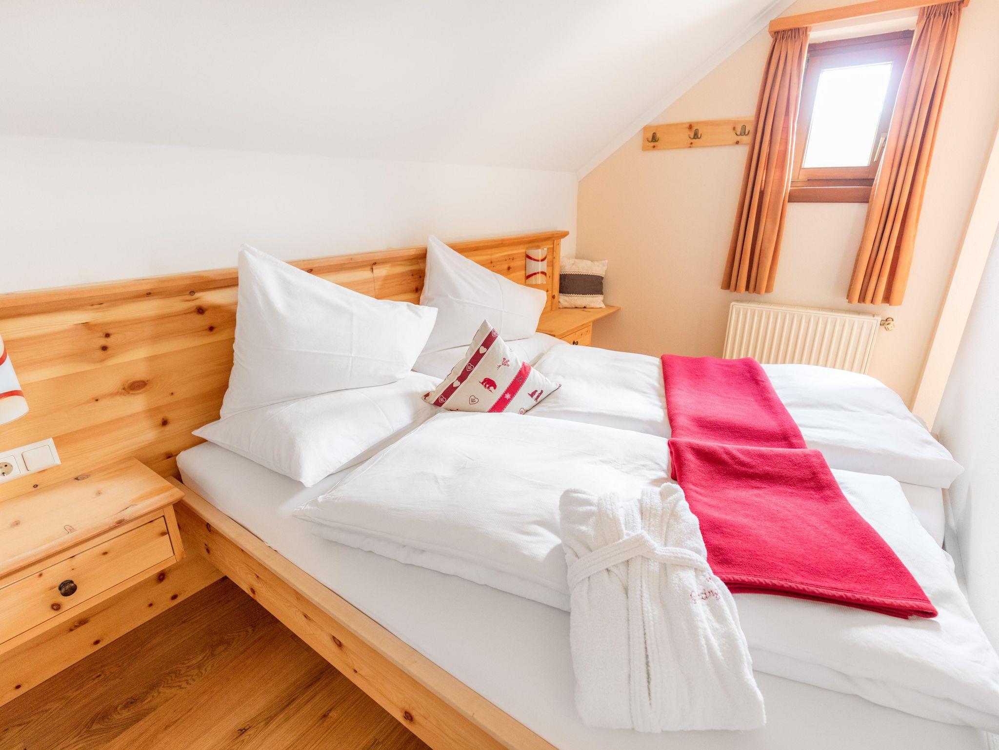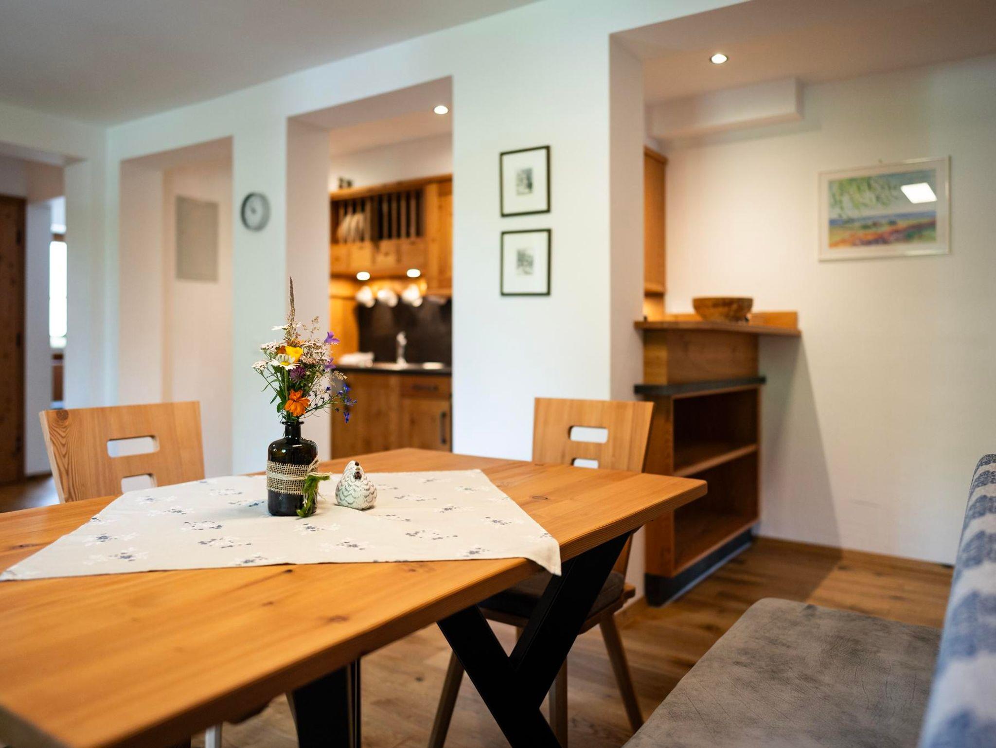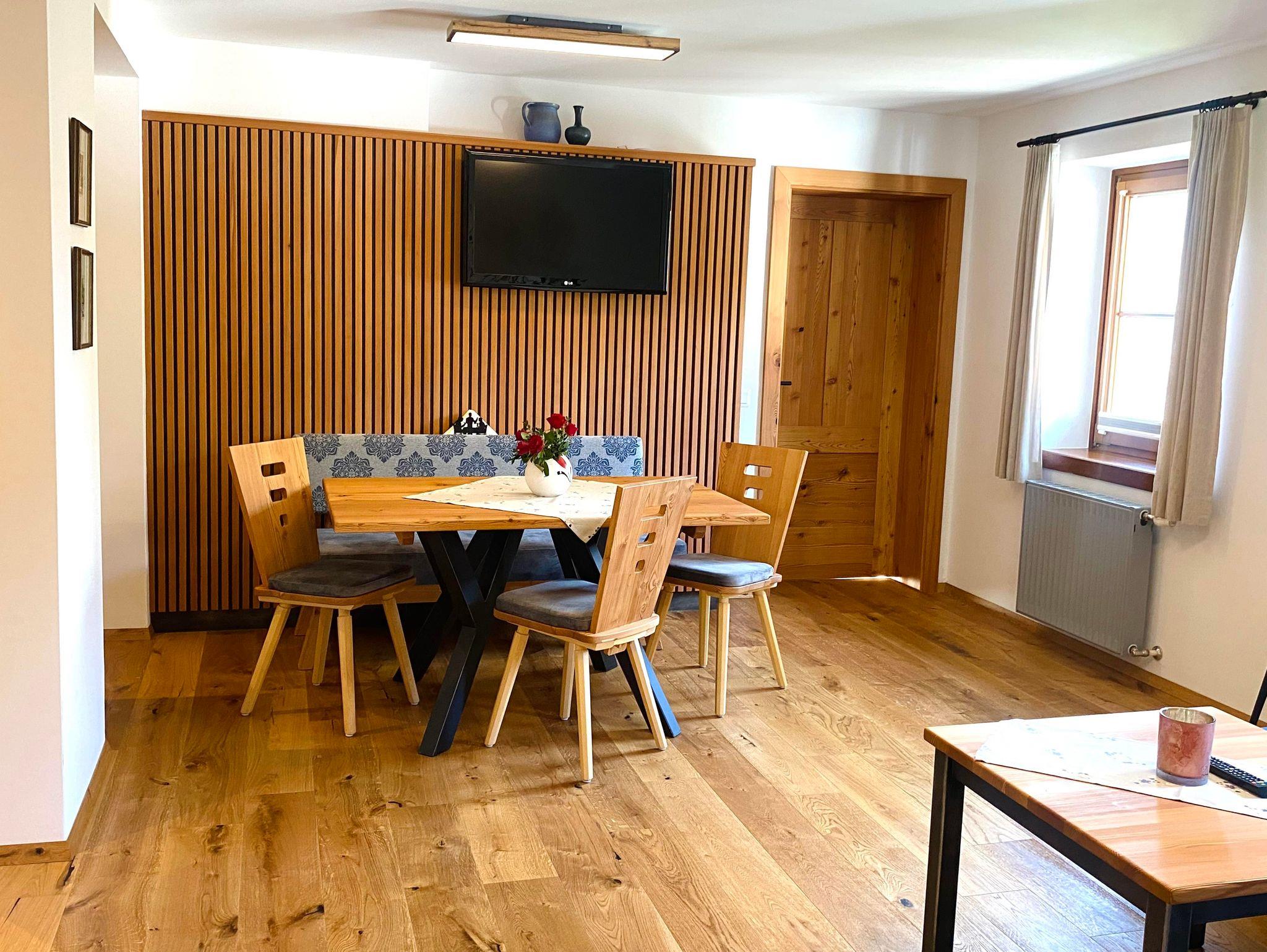 Unser neu gestaltetes Appartment aus heimischen Lärchenholz verfügt über eine voll eingerichteten Küche , zwei Schlafzimmer , Wohnraum, Bad, WC, Radio , Sat-TV , WLAN und eine Balkon mit Blick auf die Berglandschaft.