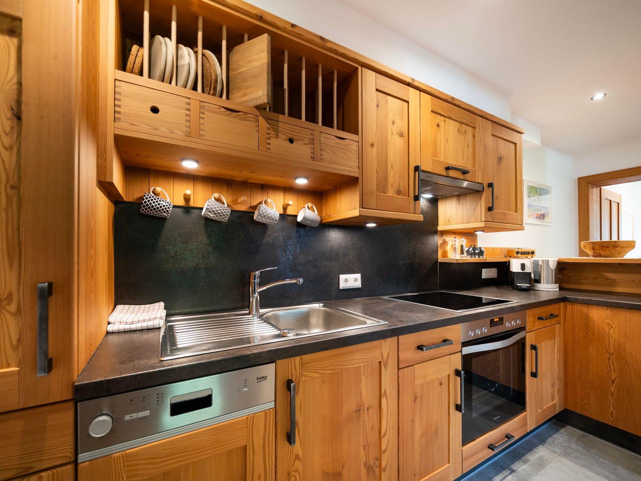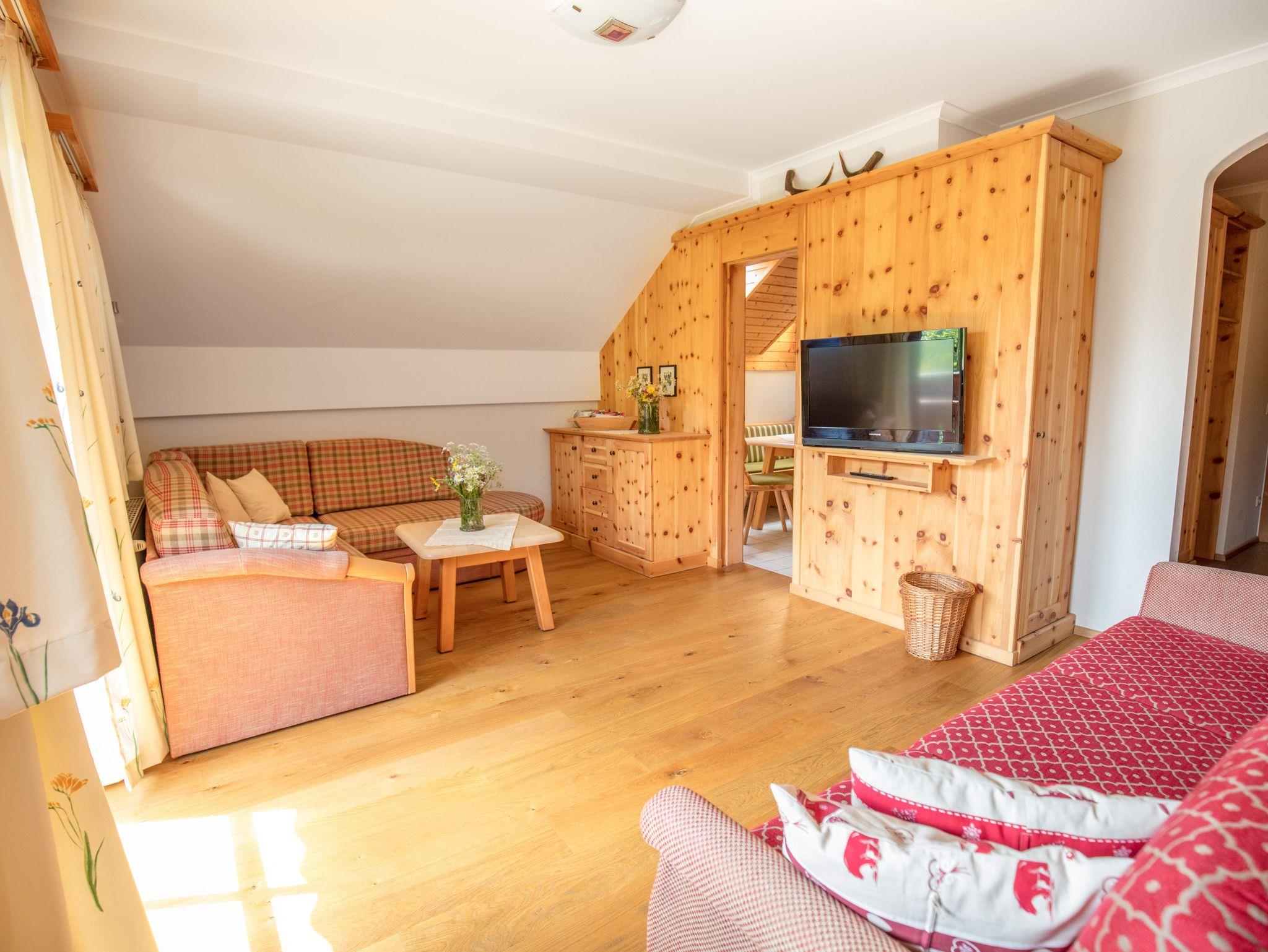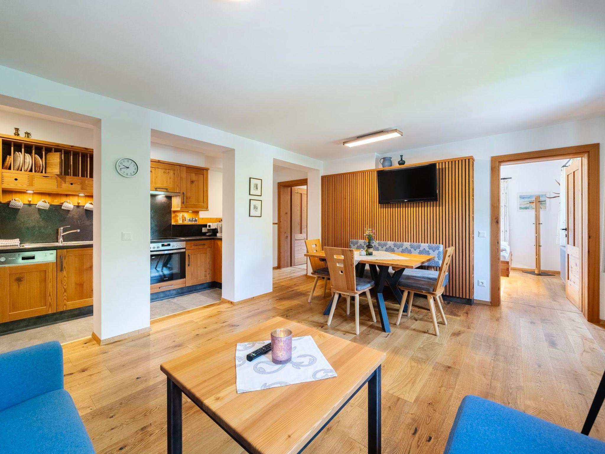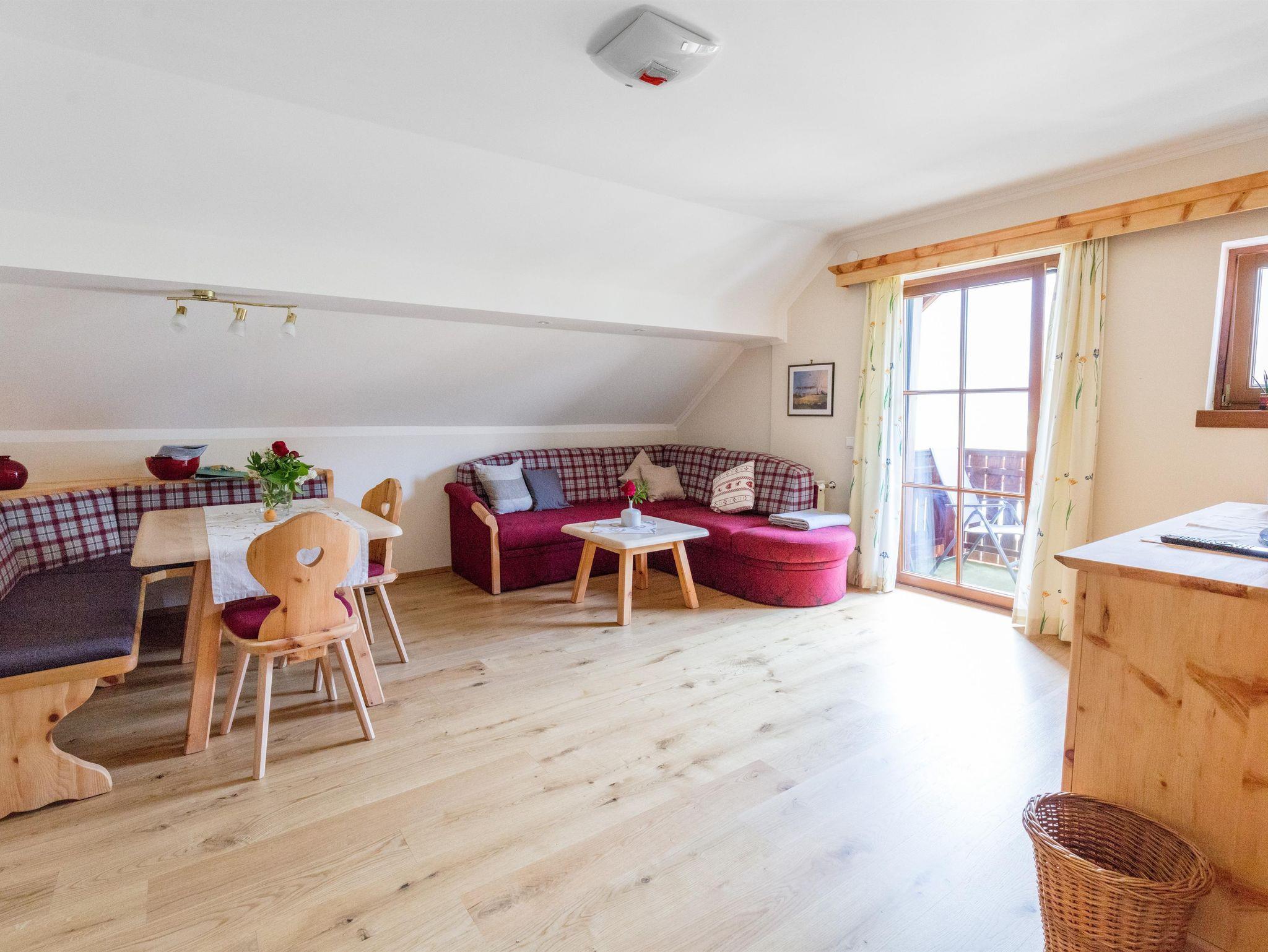 Unser neu gestaltetes Appartment aus heimischen Lärchenholz verfügt über eine voll eingerichteten Küche , zwei Schlafzimmer , Wohnraum, Bad, WC, Radio , Sat-TV , WLAN und eine Balkon mit Blick auf die Berglandschaft.