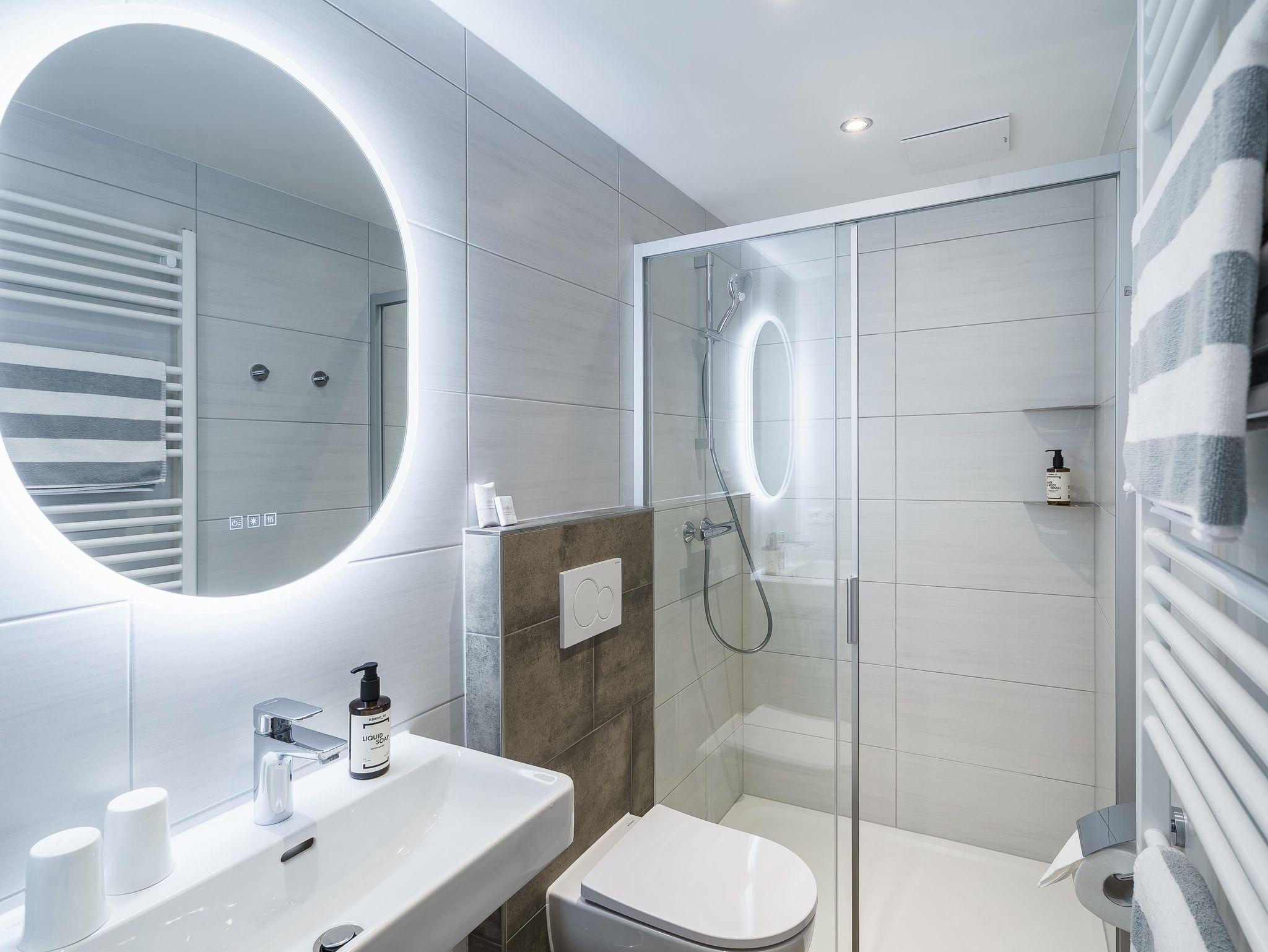 • Badezimmer mit Dusche, separates WC