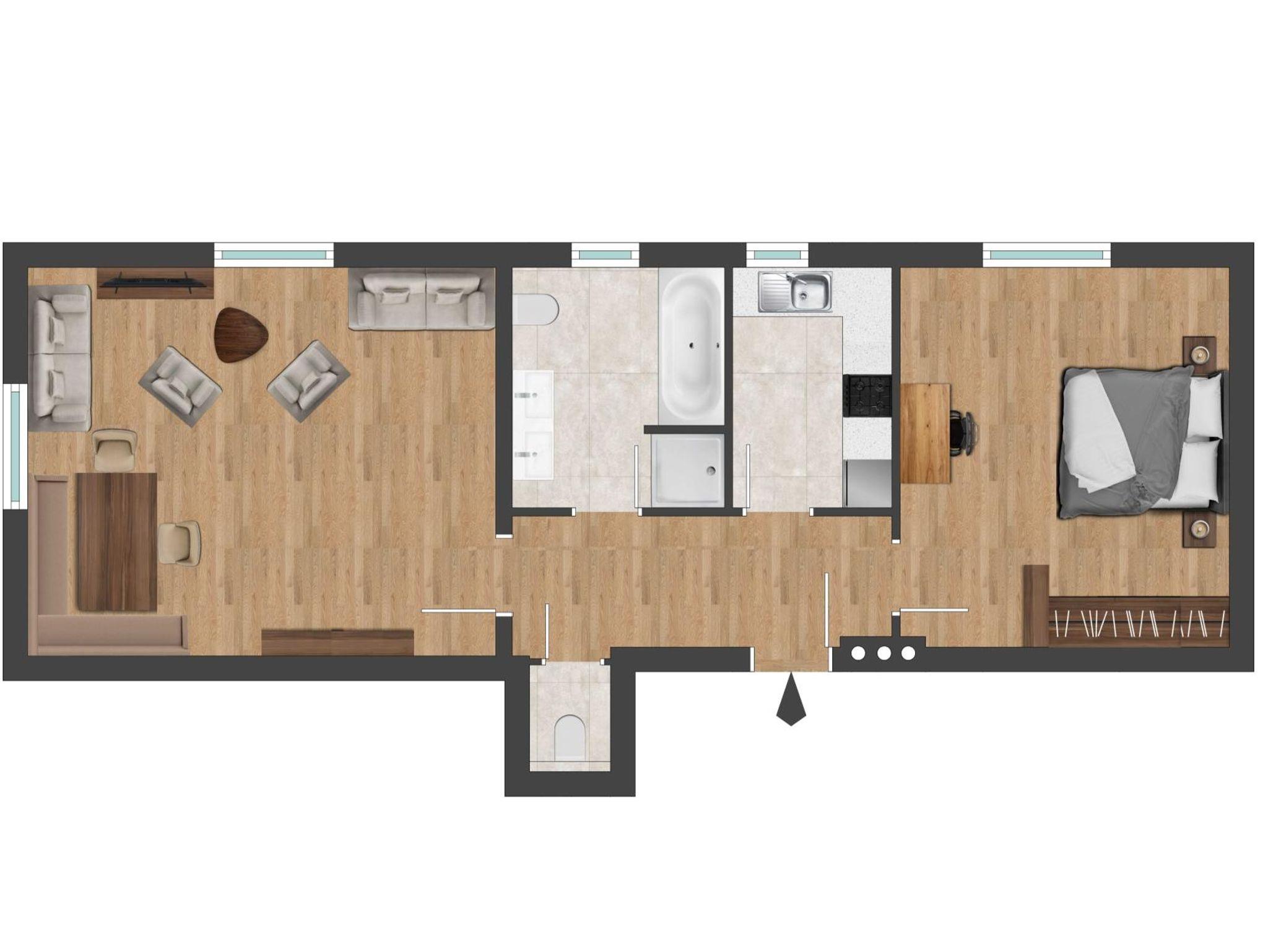 Appartement mit 80 m², 1 Doppel- und 3 Extrabetten, separates Schlafzimmer, im Erdgeschoss