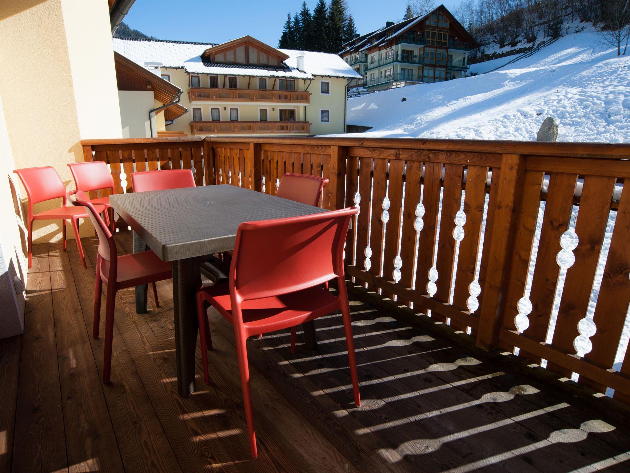 Nach einem aktiven Tag in der Natur können Sie auf Ihrem Balkon oder der Terrasse entspannen und den Abend in gemütlicher Atmosphäre bei einem atemberaubenden Blick auf die Berge ausklingen lassen.