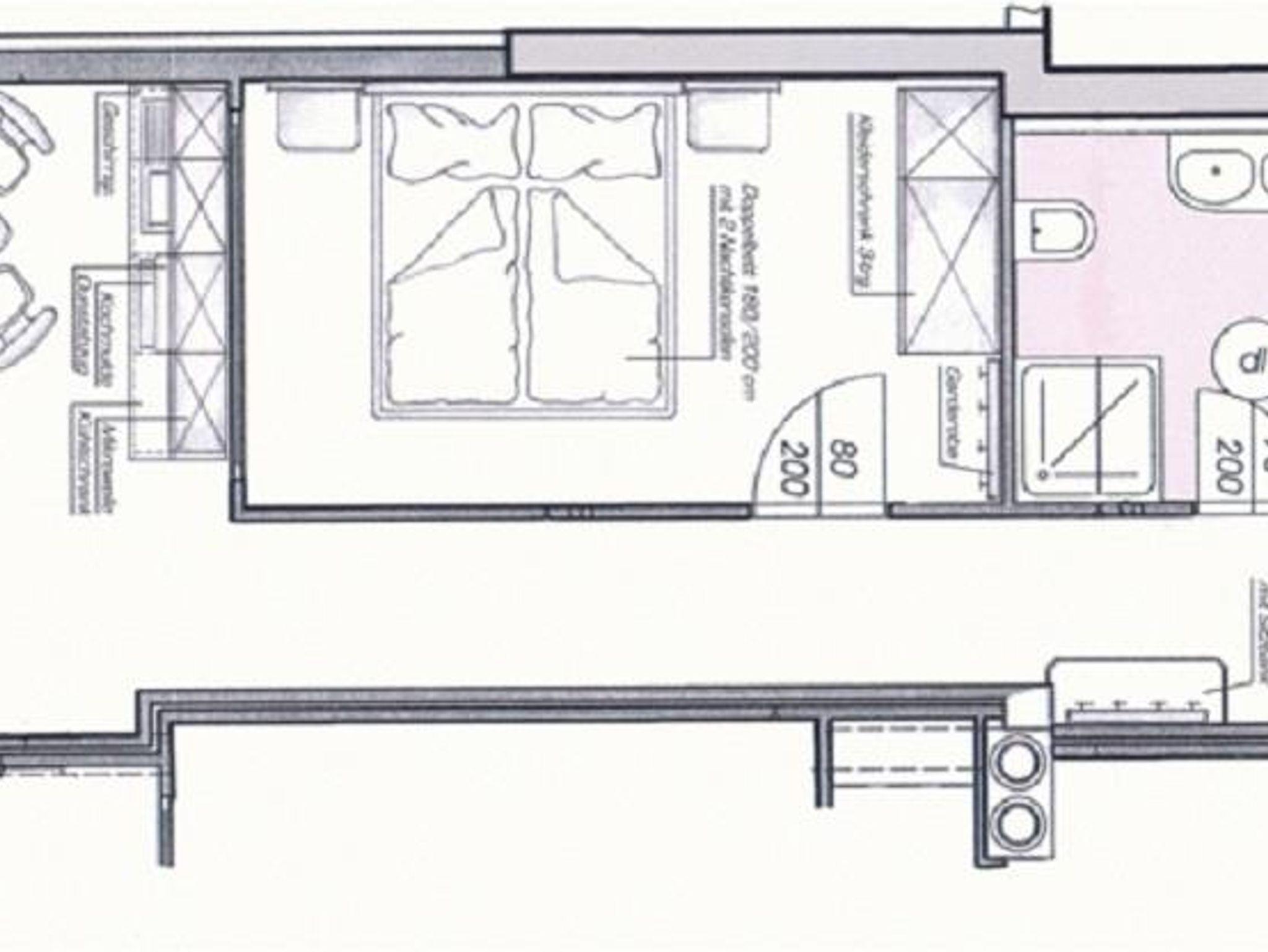 bestehend aus einem Schlafraum, einem Wohnraum mit Ausziehcouch, Kochnische mit Geschirrspüler, Espresso Kaffemaschine und Mikrowelle, Bad mit Badewanne und Dusche, extra WC, LCD-TV mit Radio, Südterrasse - Nichtraucherappartement