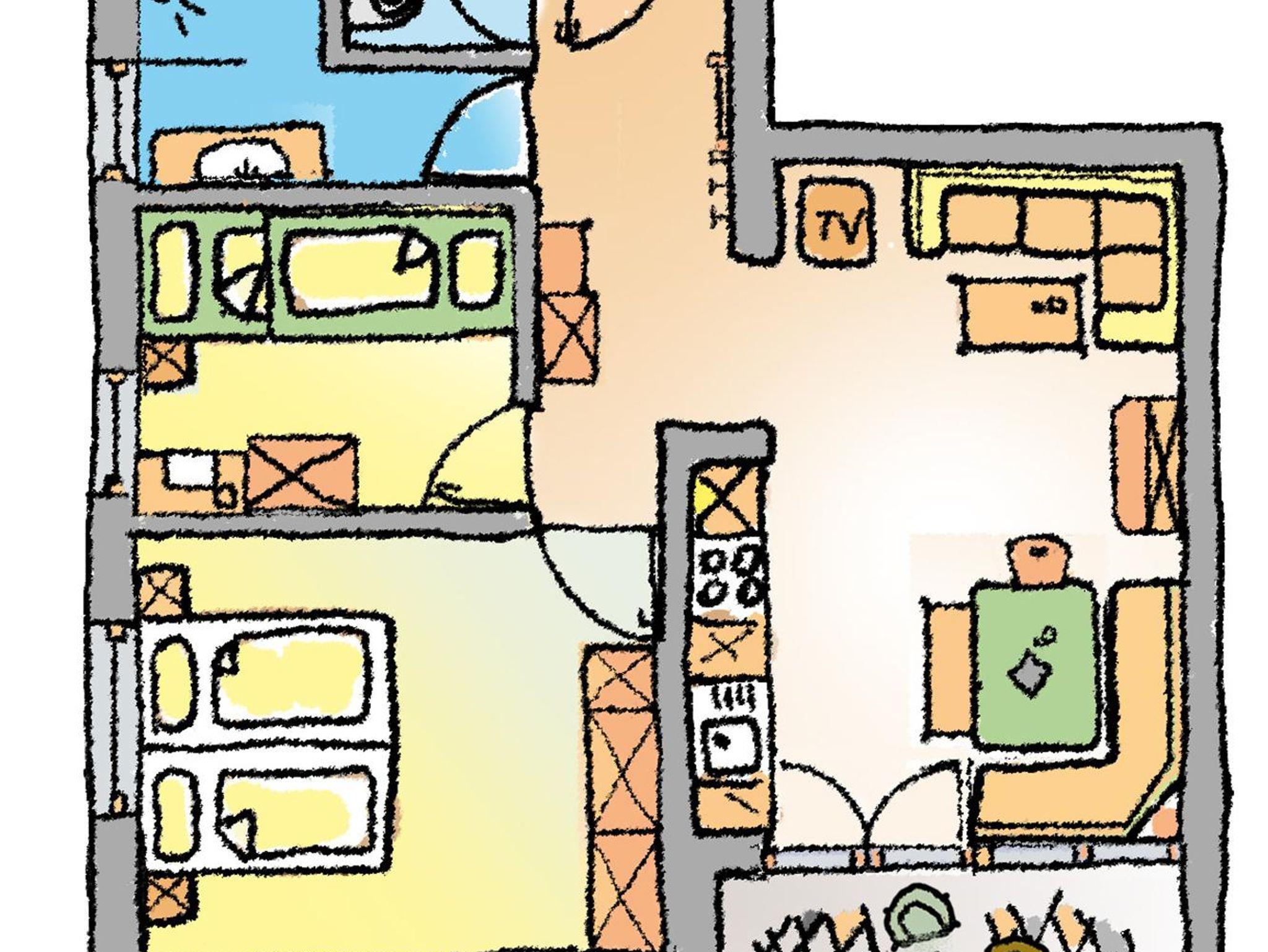 Vitalität, Ausgeglichenheit und Lebensfreude. Das was ein schöner Sonnentag ausmacht gibt es auch in unserer Zirbenwohnung. Die Wohnung bietet ein Elternschlafzimmer mit 2 Betten und ein Kinderschlafzimmer mit 2 Betten. Auch hier sind Bad und Küche dabei.