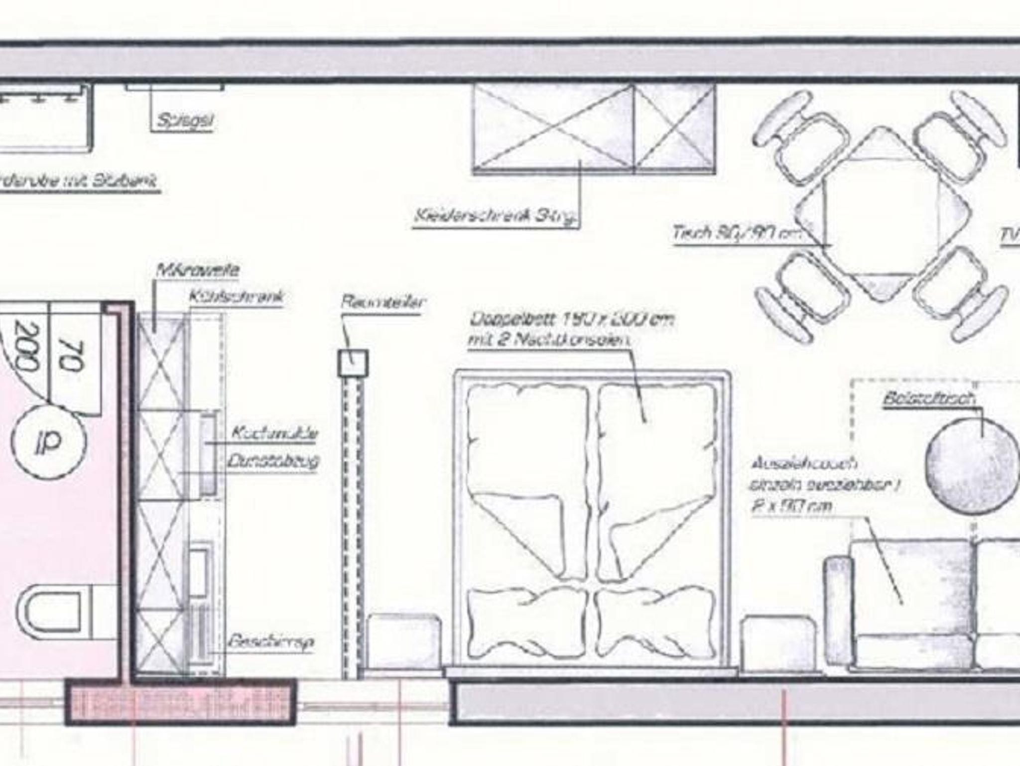 bestehend aus einem Wohn-Schlafraum mit Ausziehcouch, Kochnische mit Geschirrspüler, Espresso Kaffeemaschine und Mikrowelle, Dusche und WC, LCD-TV mit Radio, Westterrasse, Nichtraucher-Appartement