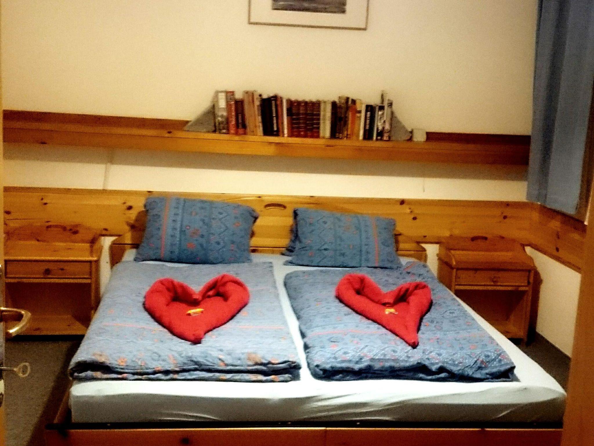 Appartement Typ A/60 m² (4 Personen): Schlafzimmer (2 Betten), Wohn-Schlafraum mit 2 getrennten Betten, Eßecke, Küchenzeile mit Backofen, Bad, WC, Vorraum, Kühlschrank, Kaffeemaschine, Sat-TV, Radio.